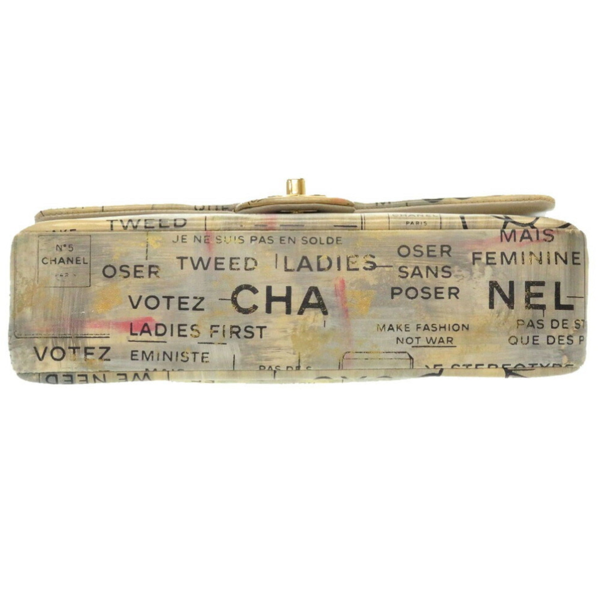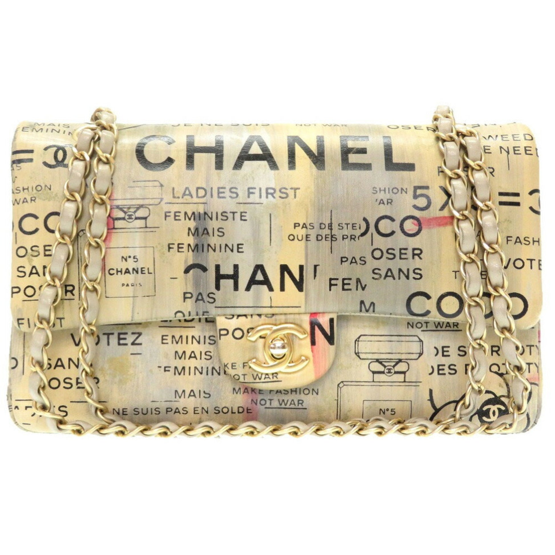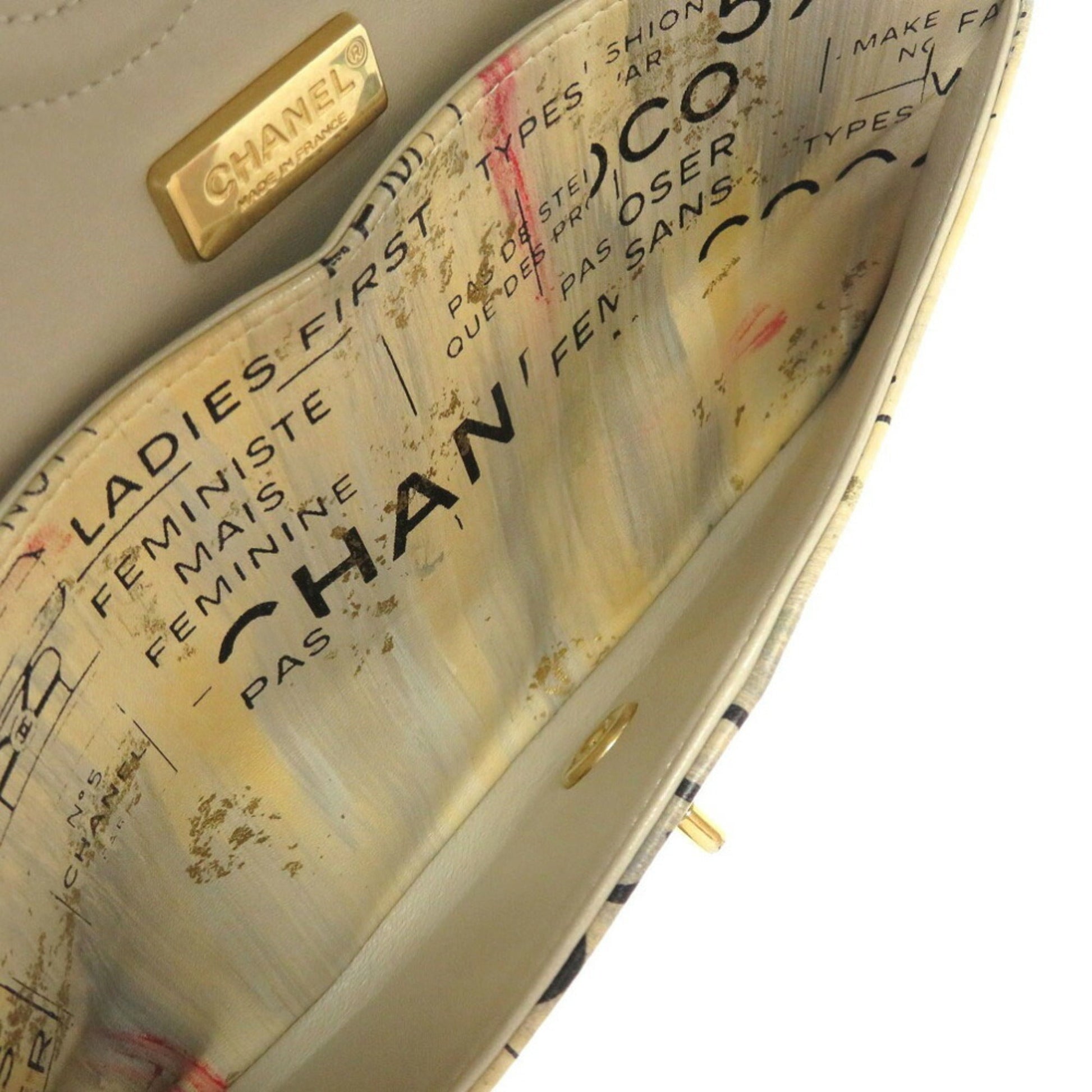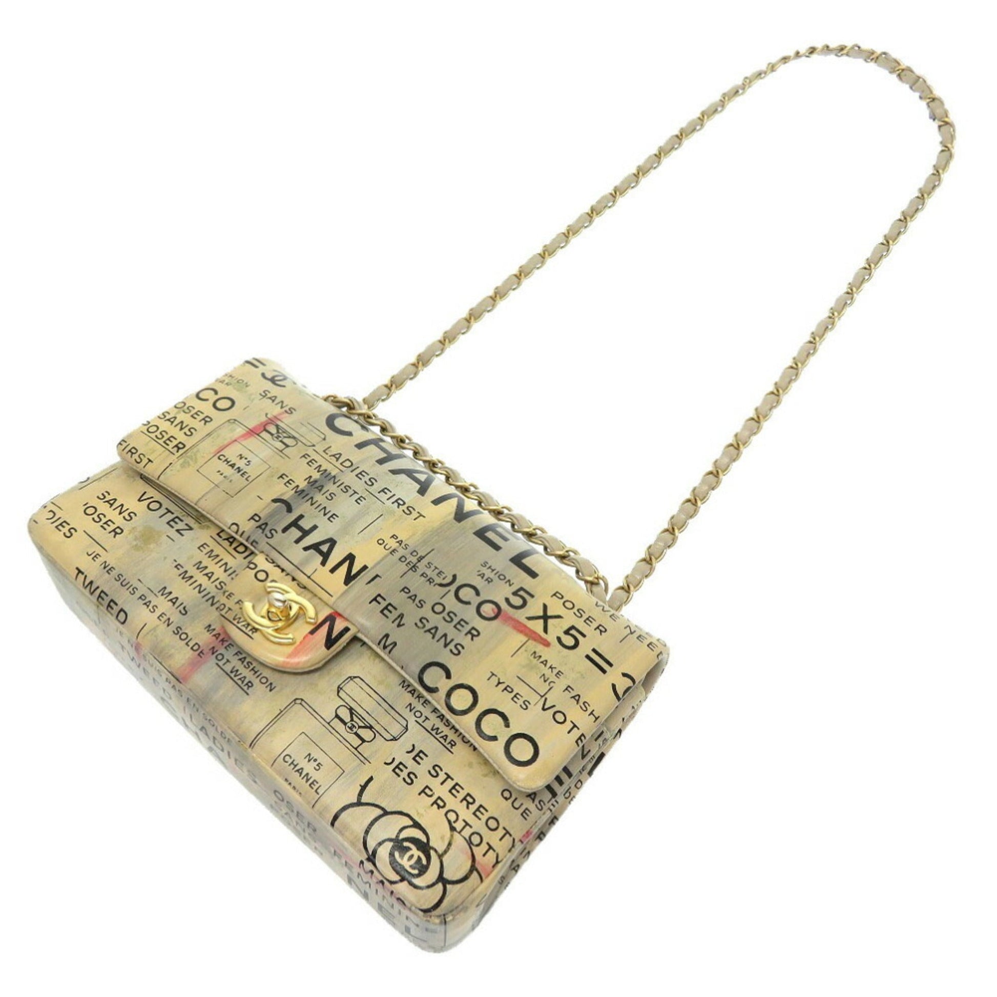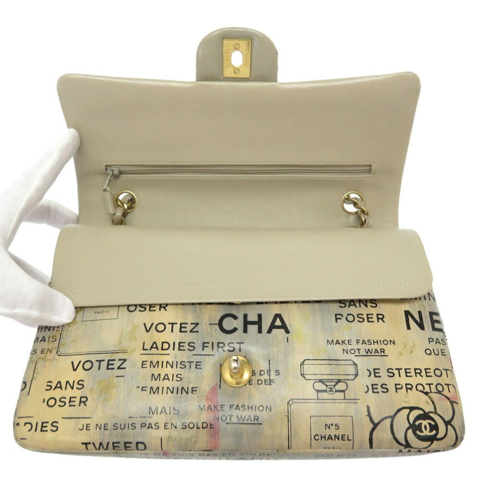 Chanel Double Flap 2 Leather Beige Gold Chain Shoulder Bag Coco Mark CC Lid