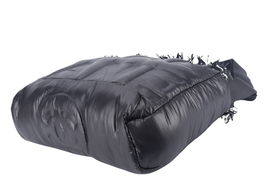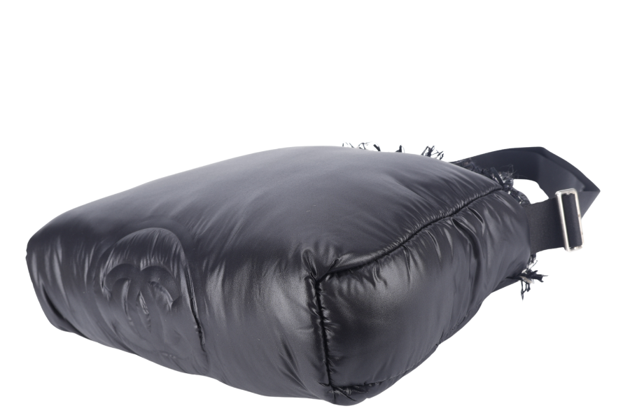CHANEL DOUDOUNE CROSSBODY (2654xxxx) BLACK NYLON SILVER HARDWARE WITH AND DUST COVER
