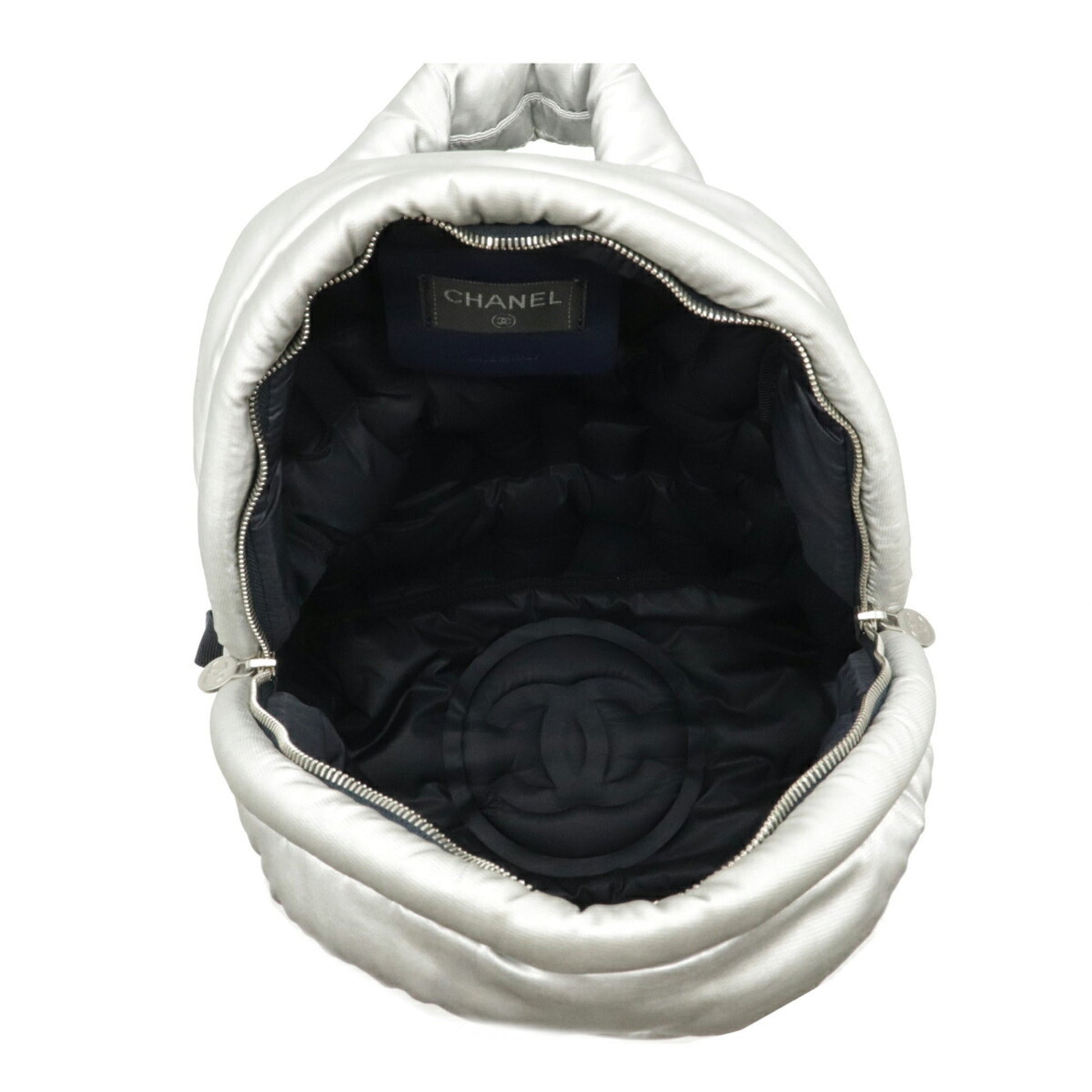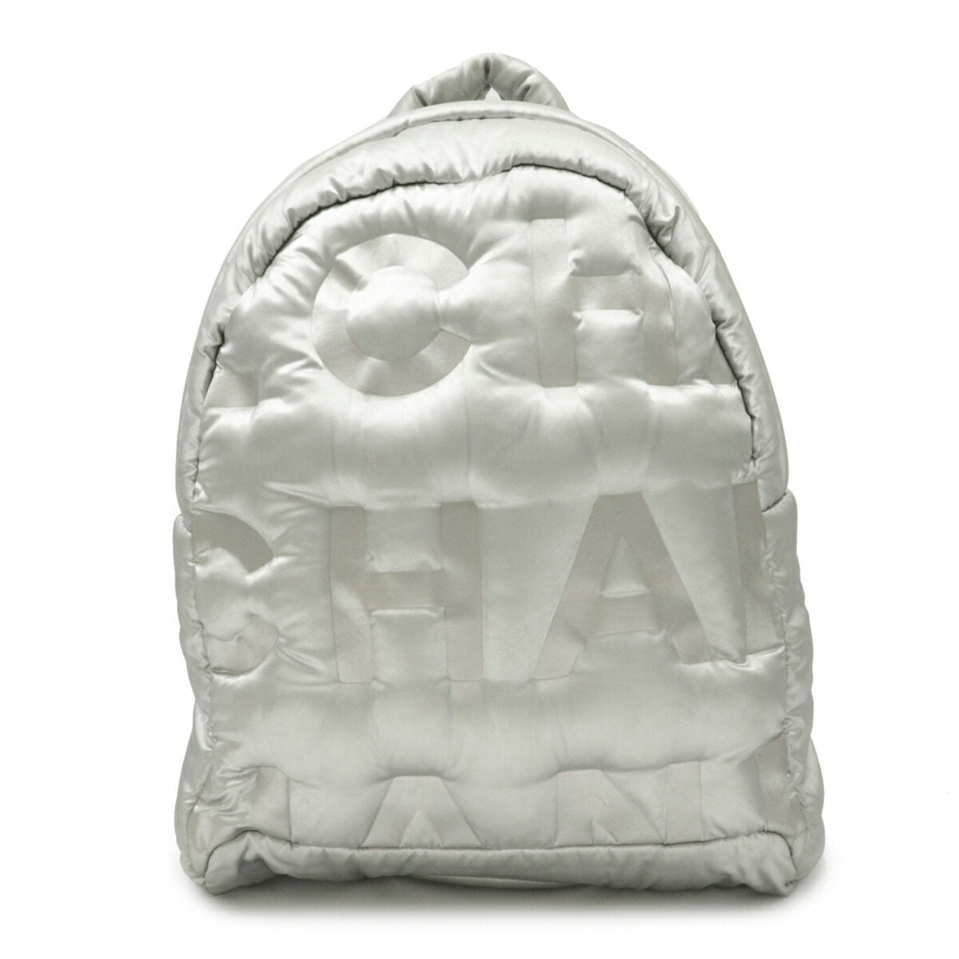 Chanel Dudone Backpack Rucksack Daypack Embossed Nylon Silver Black A91933