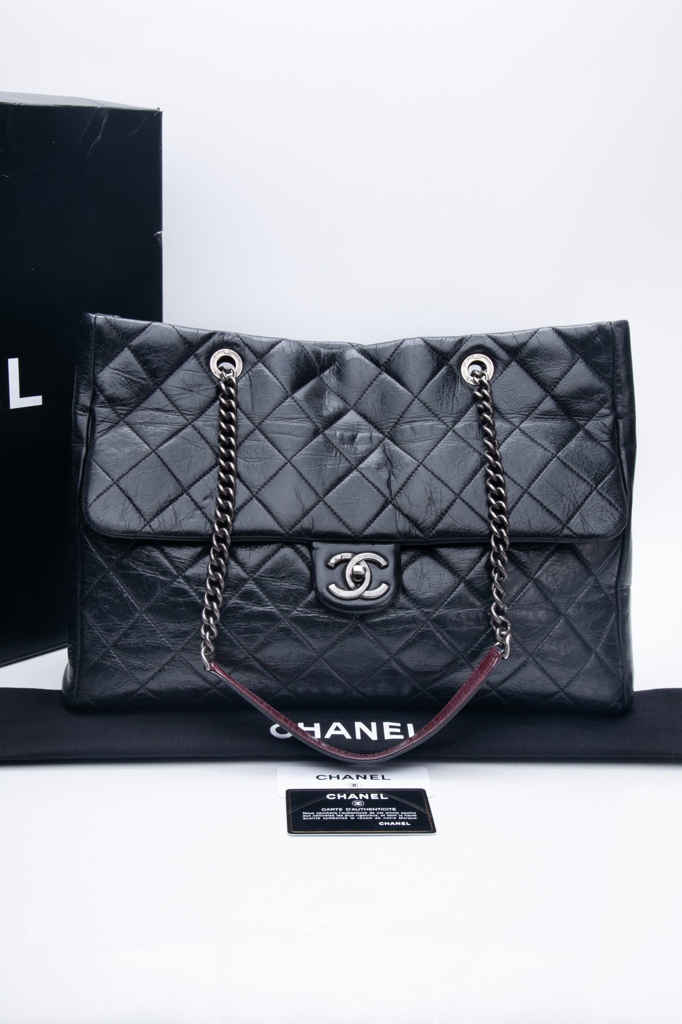 Chanel Duo Color front Flap Quilted Shopping Tote Bag