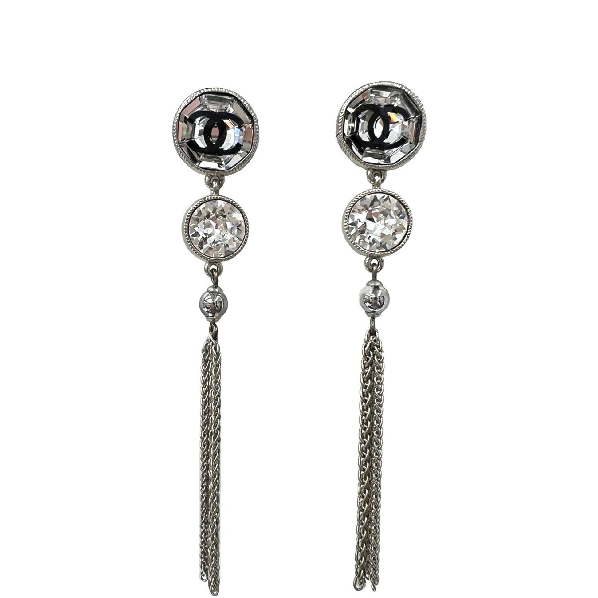 Chanel earrings A18B here mark CC rhinestone crystal silver ladies