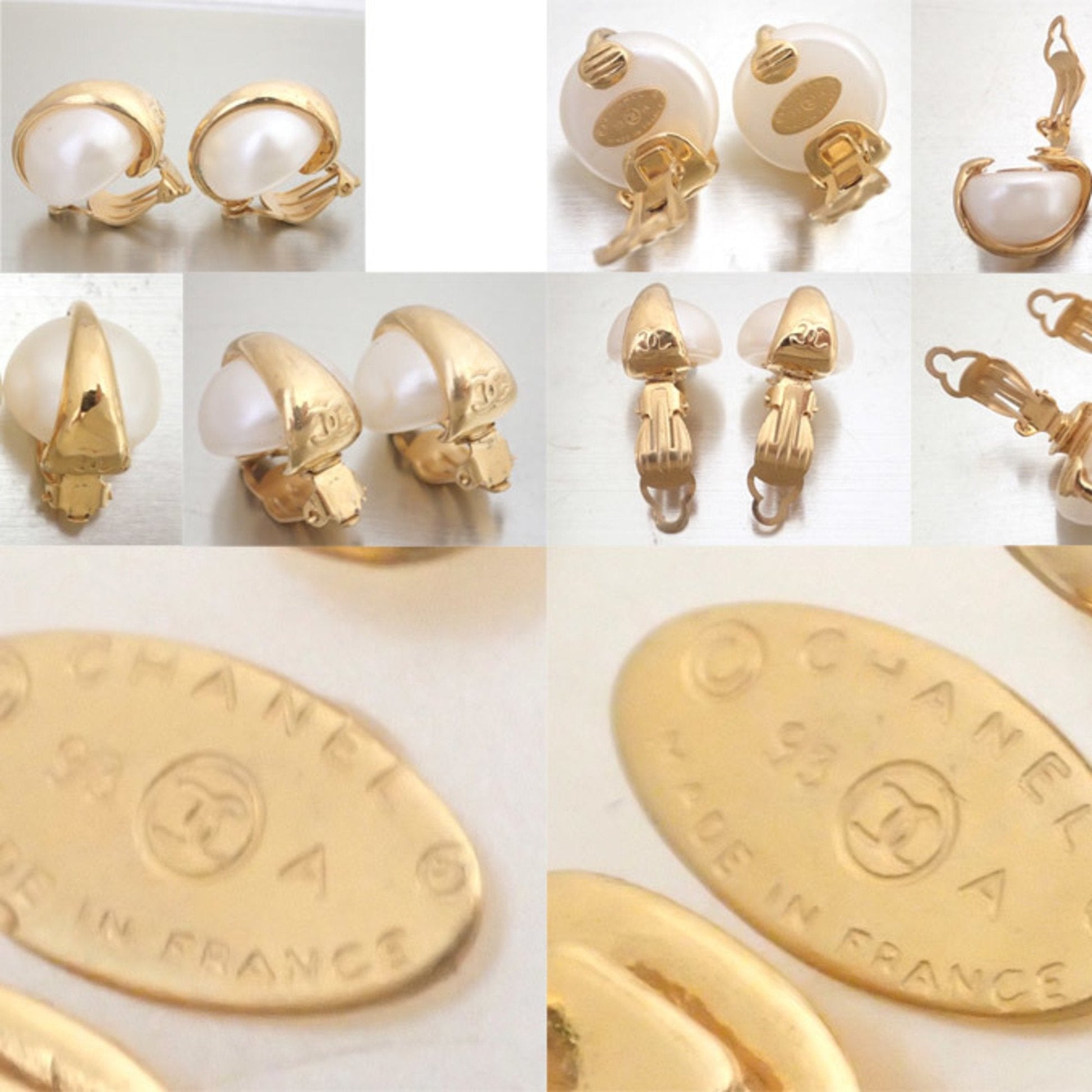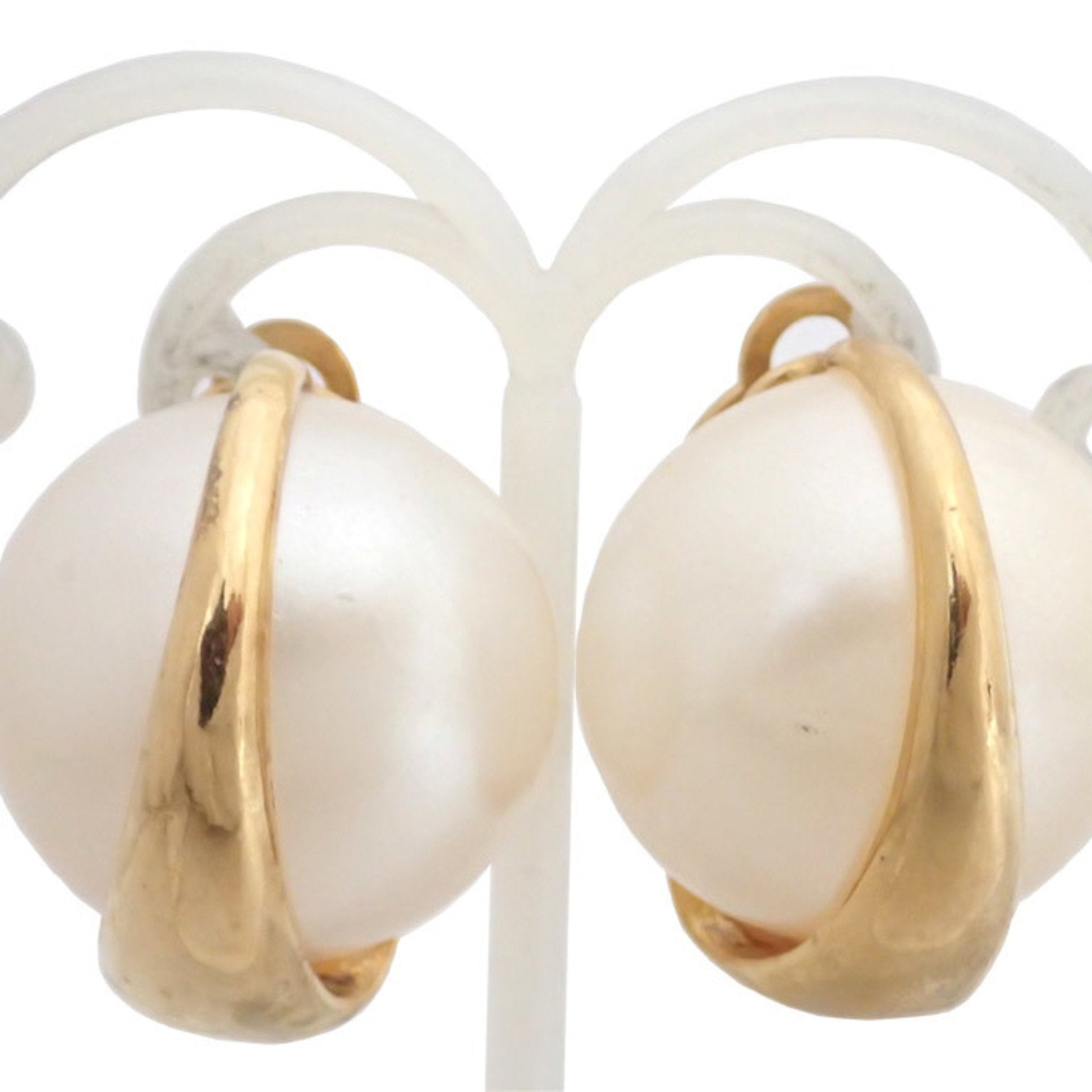 Chanel Earrings Coco Mark Metal/Fake Pearl Gold x White Women's