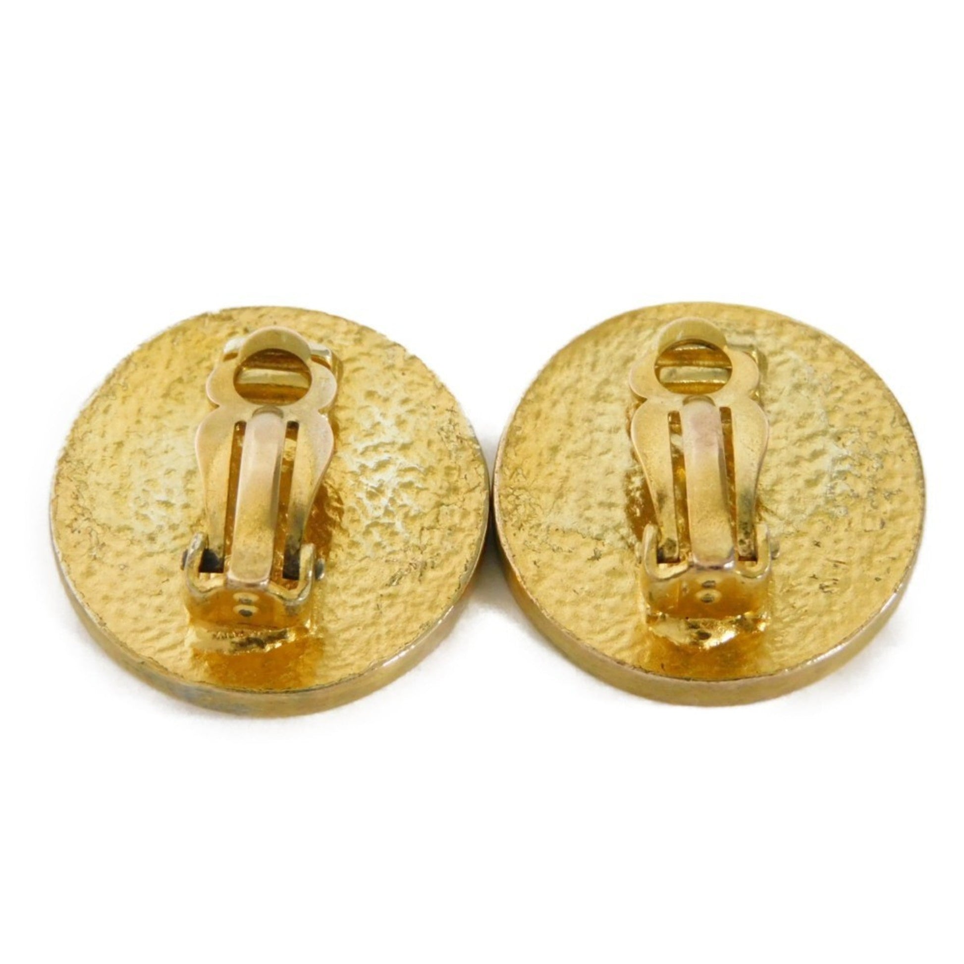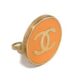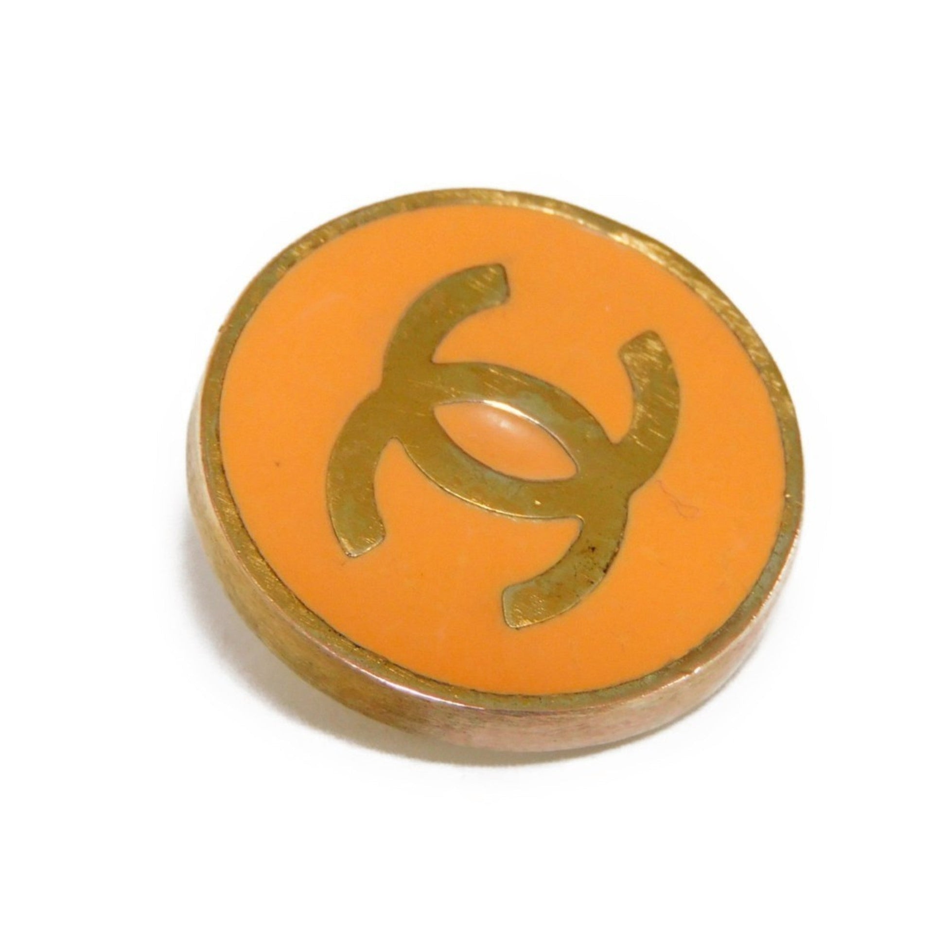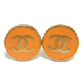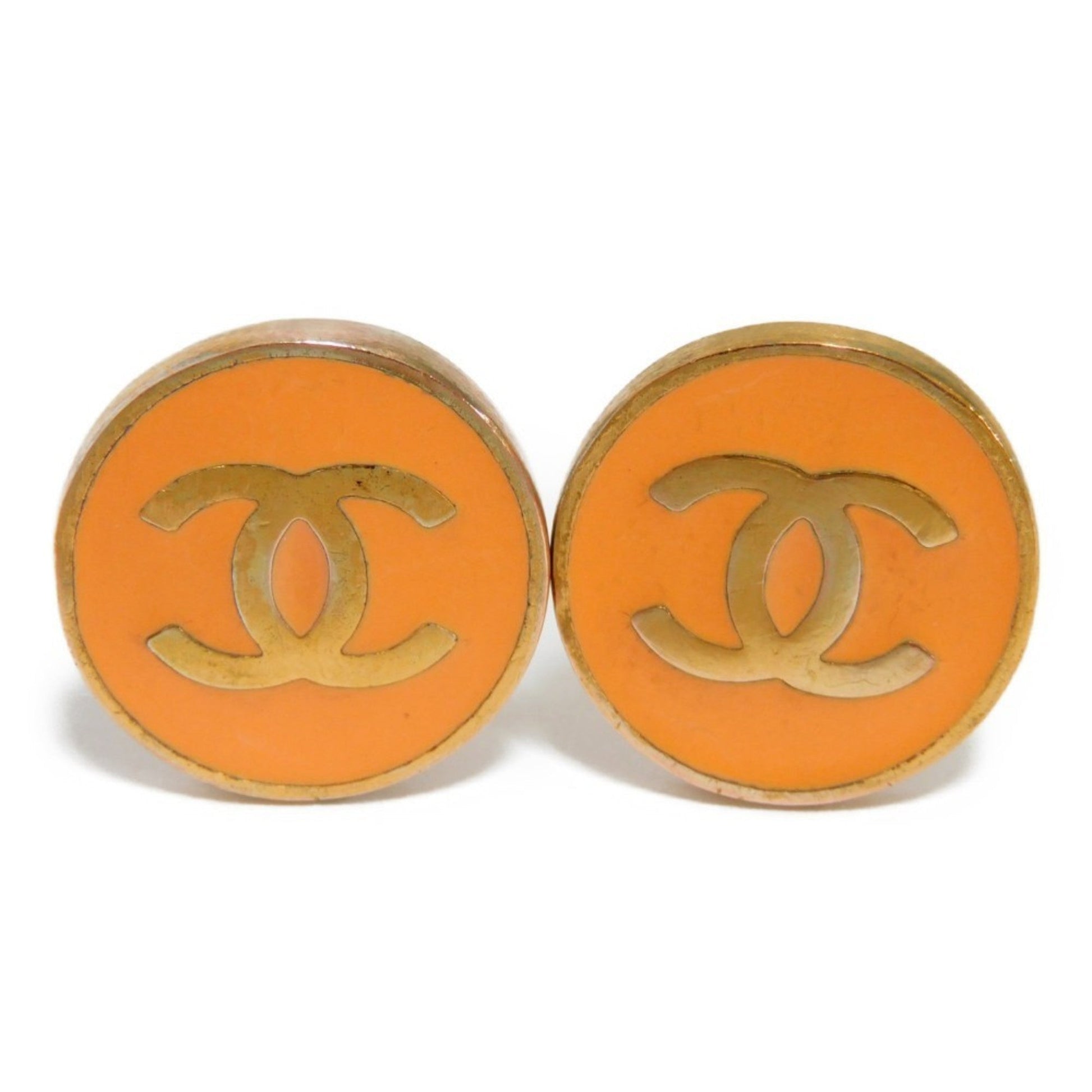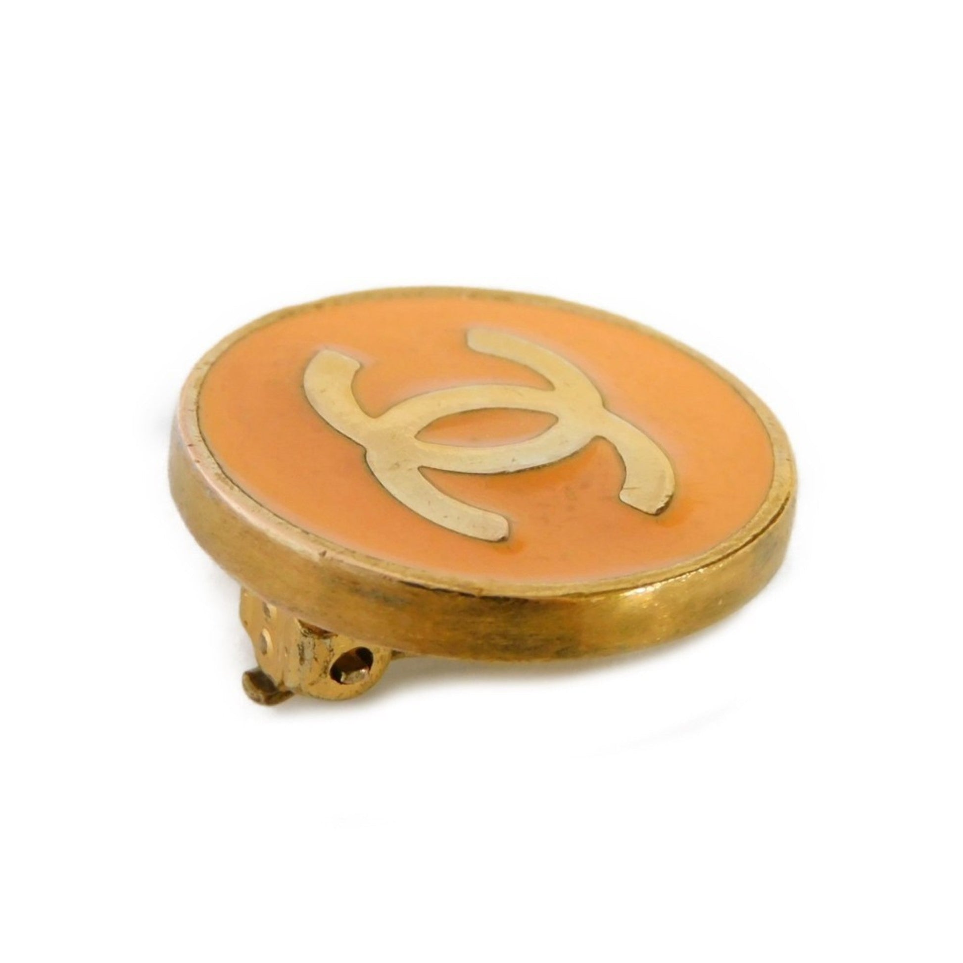Chanel Earrings Round Coco Mark Button Enamel Pastel GP Gold 01P Vintage CC Orange Ladies Accessories Jewelry