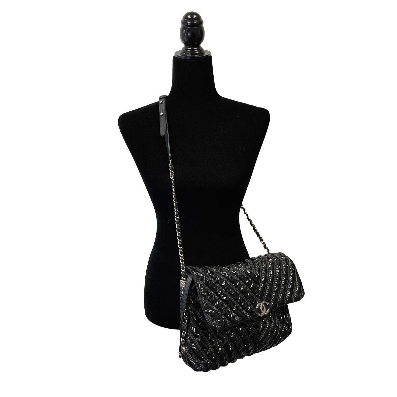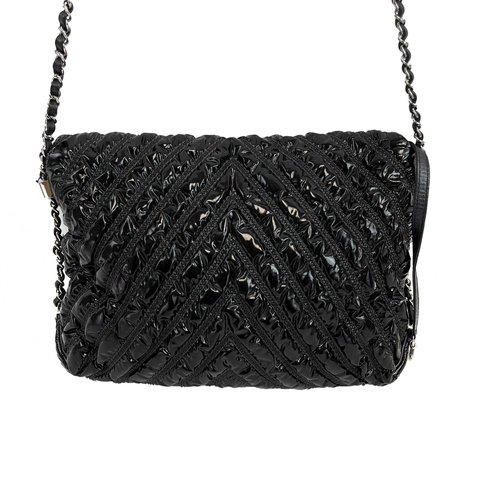 Chanel - Excellent - Chevron Space Suit Flap Bag - Black - Handbag