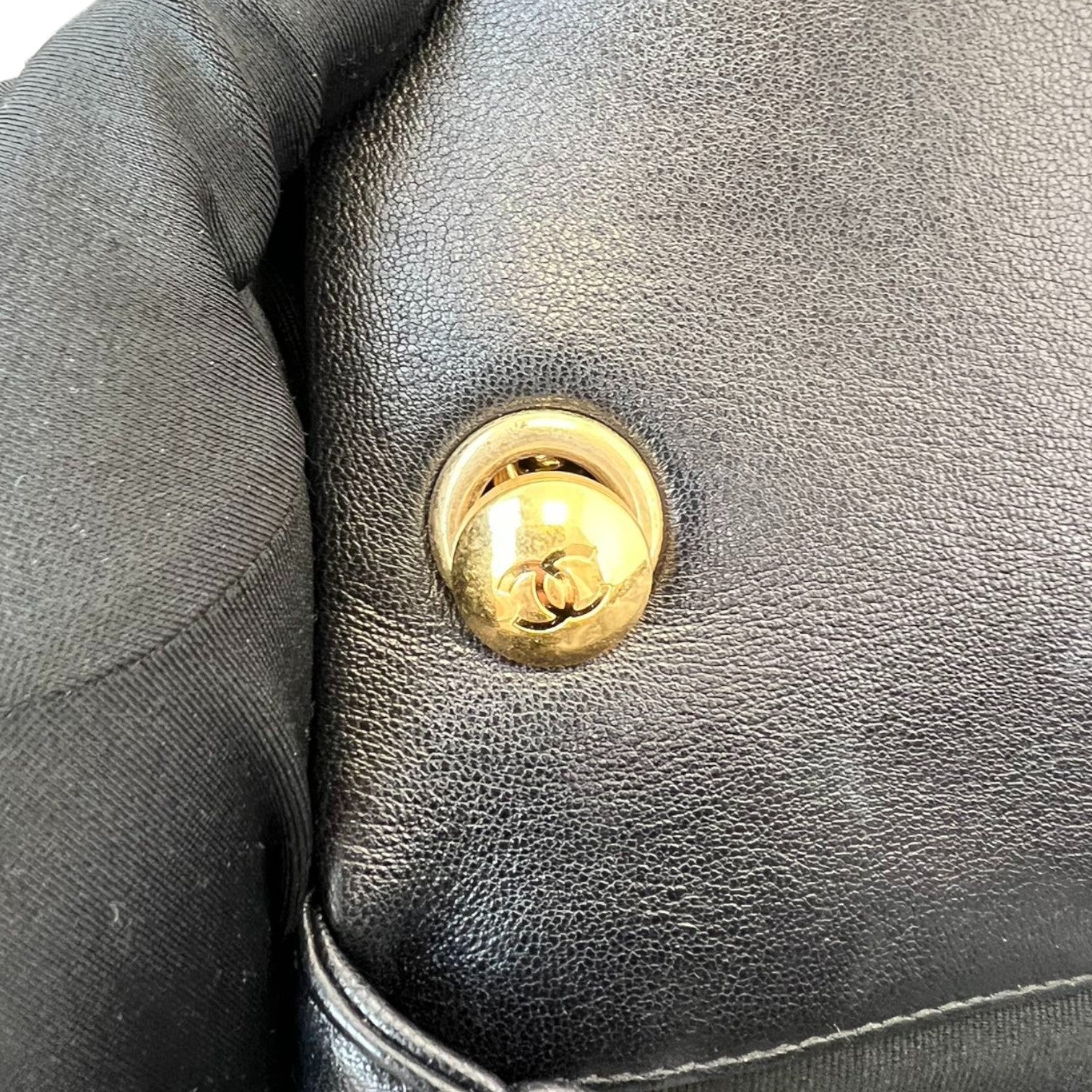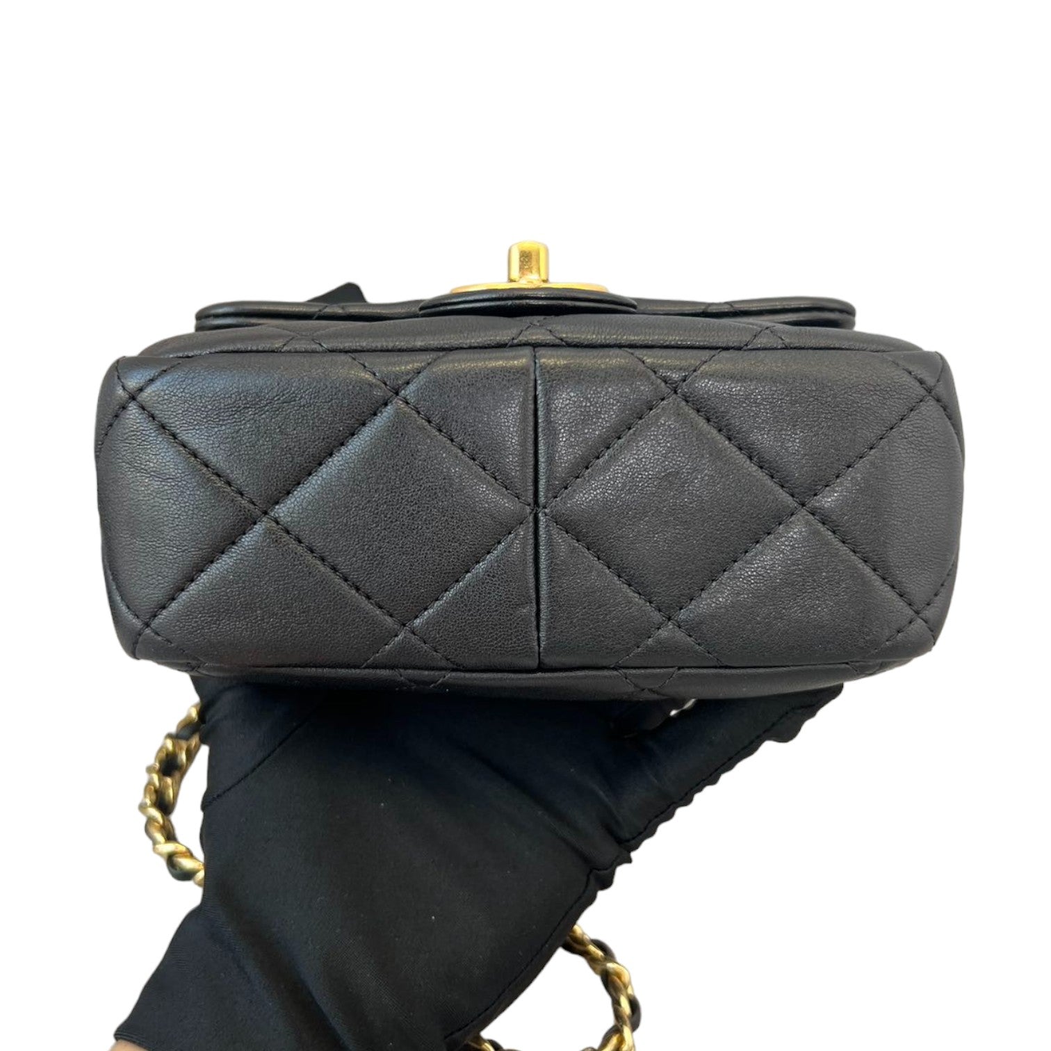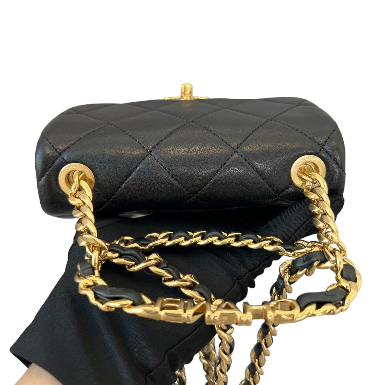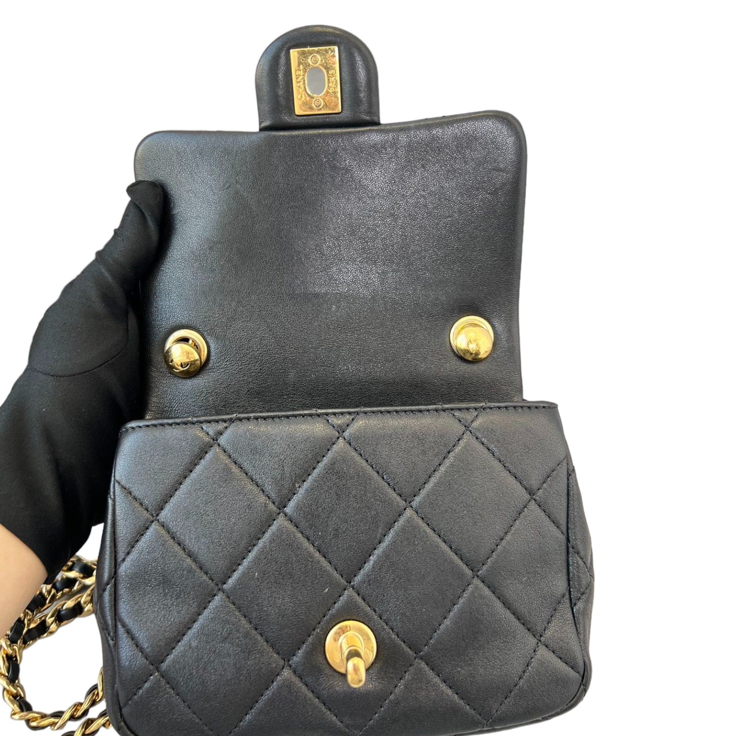 Flap with Chanel Logo Top Handle Mini Lambskin Black GHW