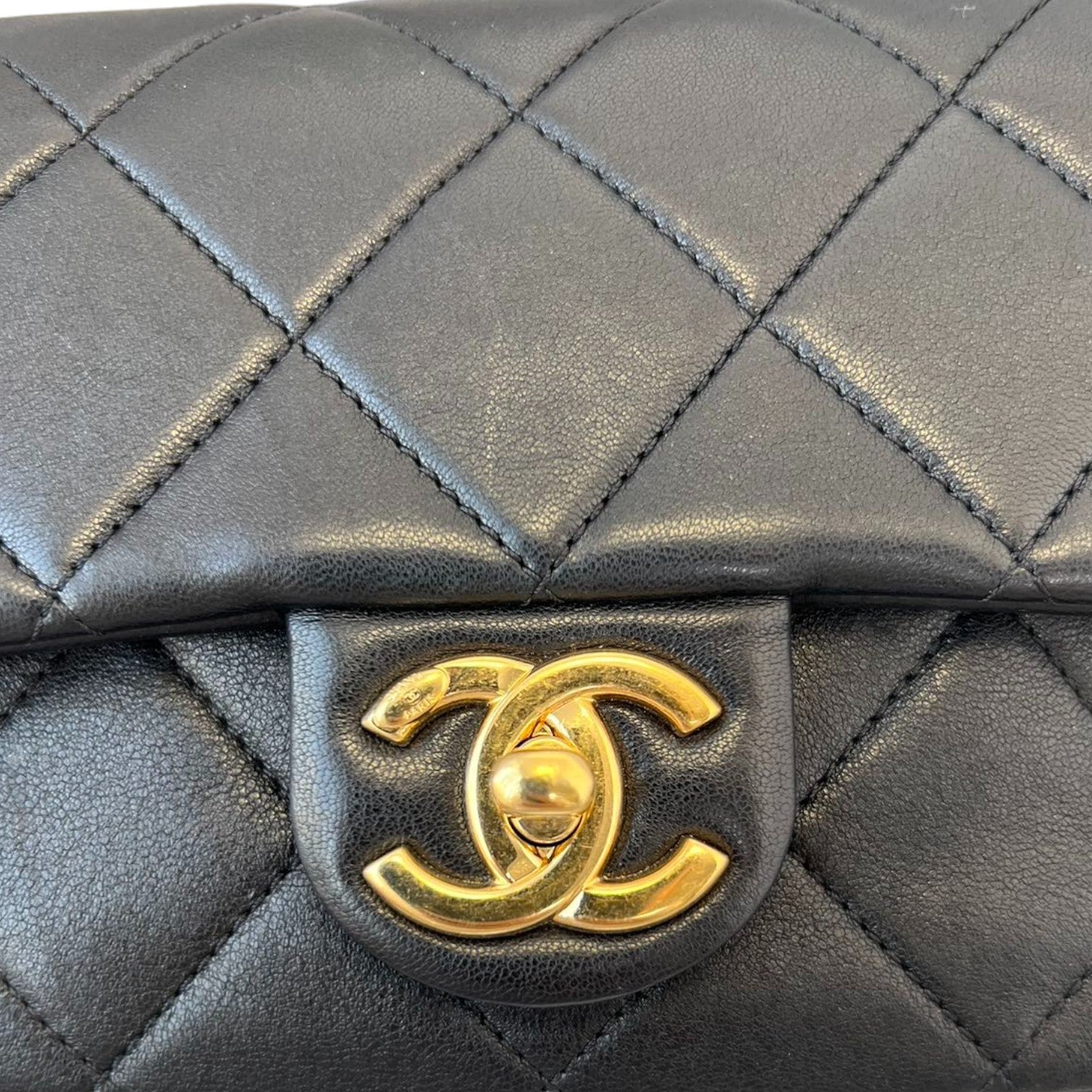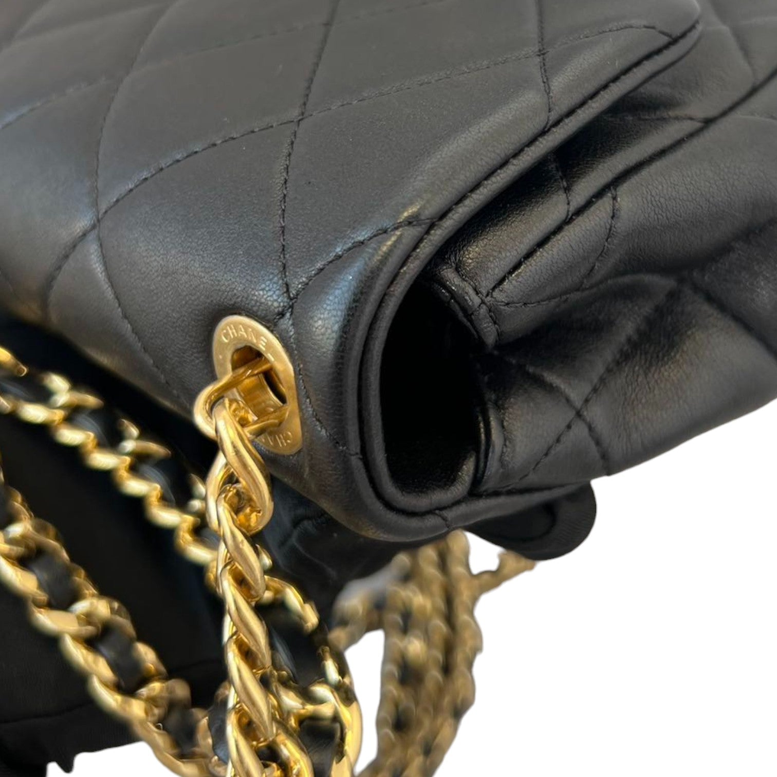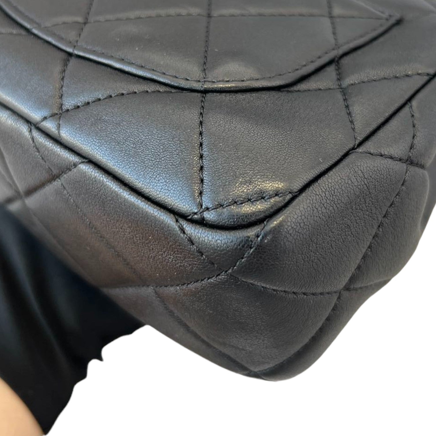 Flap with Chanel Logo Top Handle Mini Lambskin Black GHW