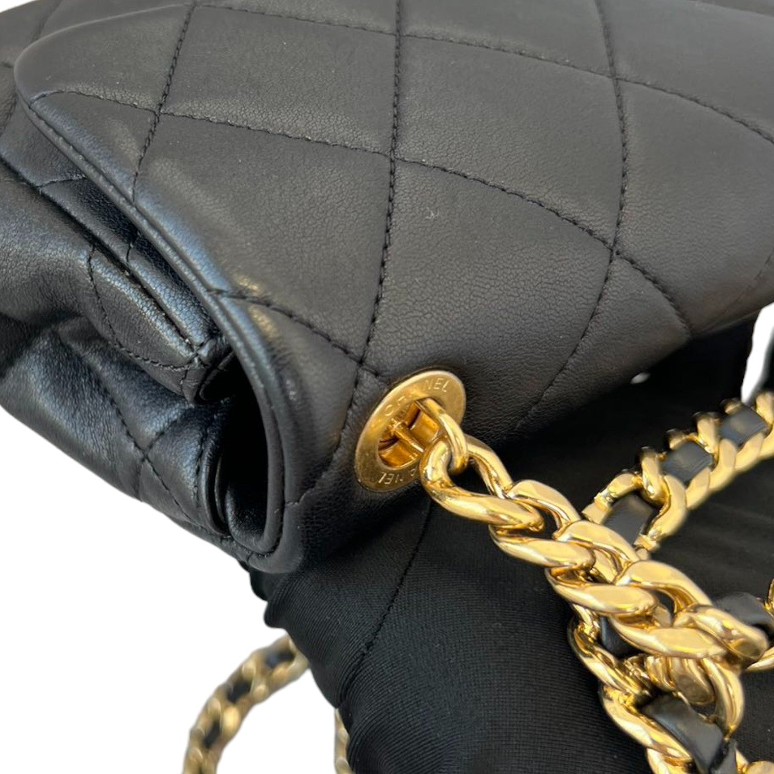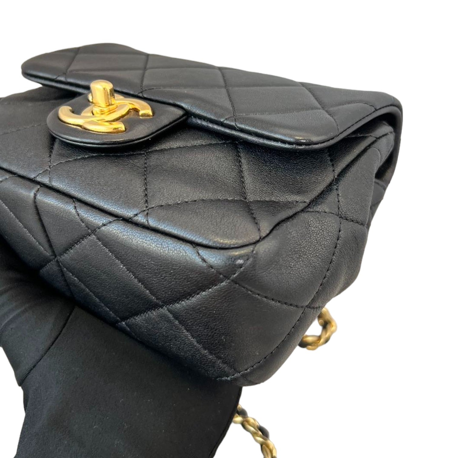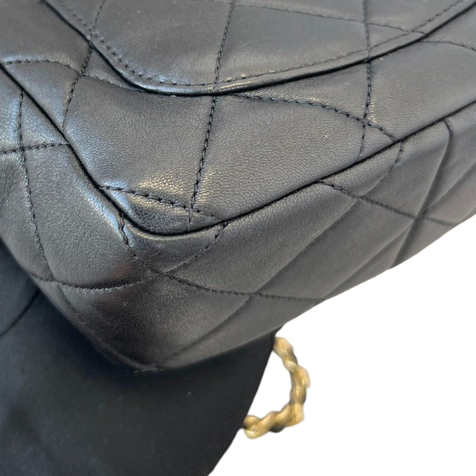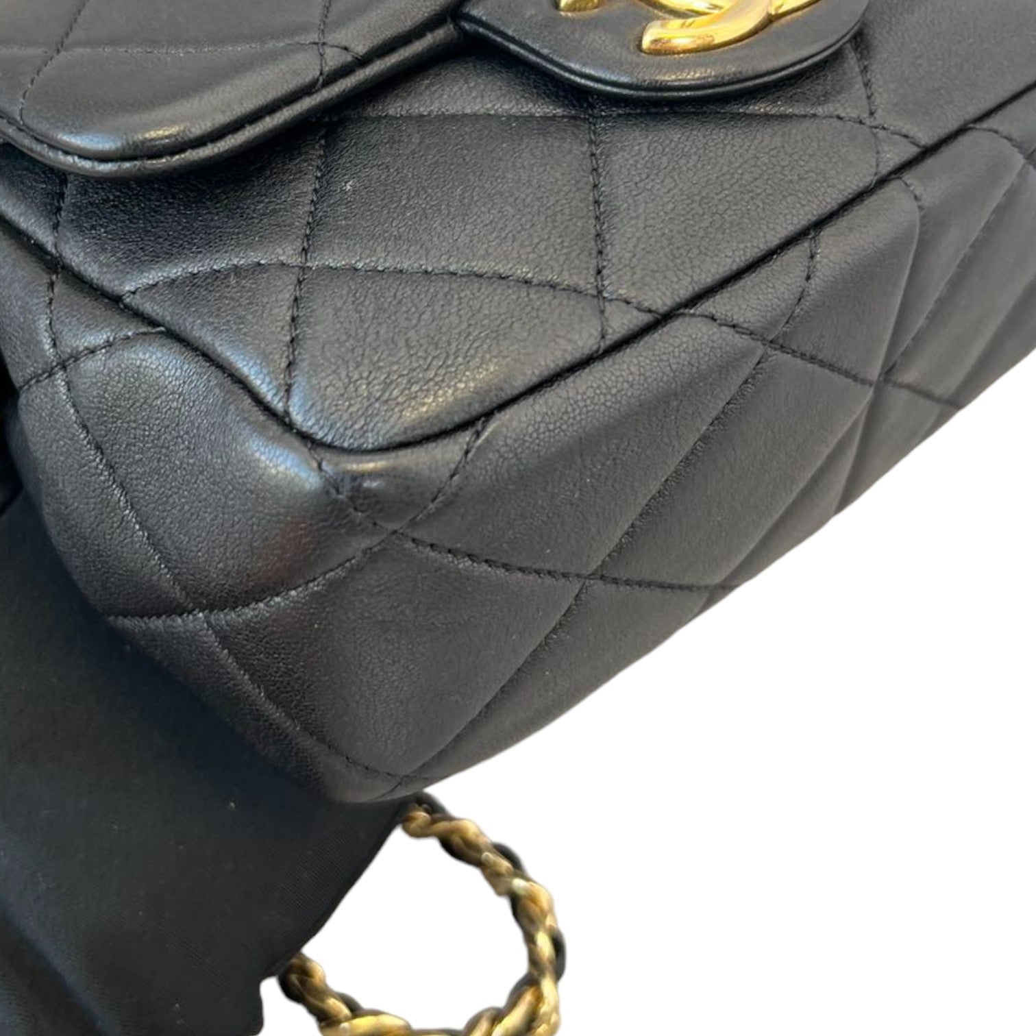 Flap with Chanel Logo Top Handle Mini Lambskin Black GHW