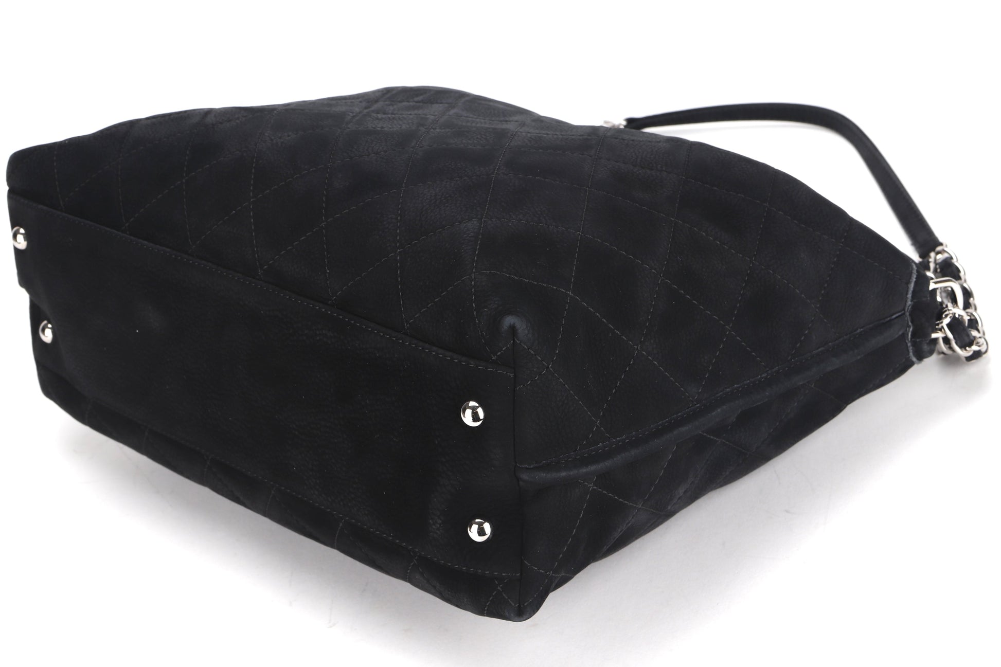 CHANEL FRENCH RIVIERA BAG (1598xxxx) BLACK QUILTED SUEDE SILVER HARDWARE, WITH & DUST COVER