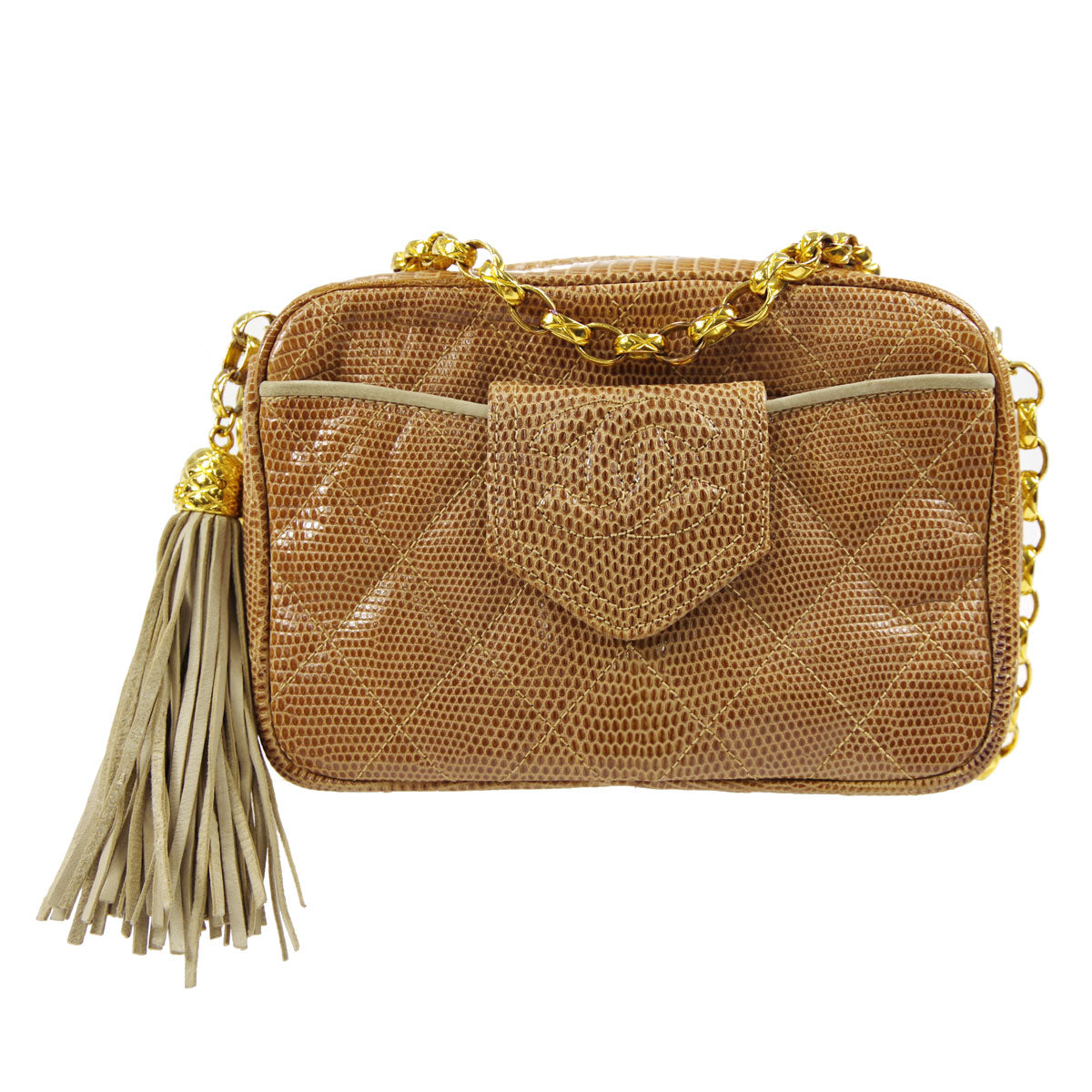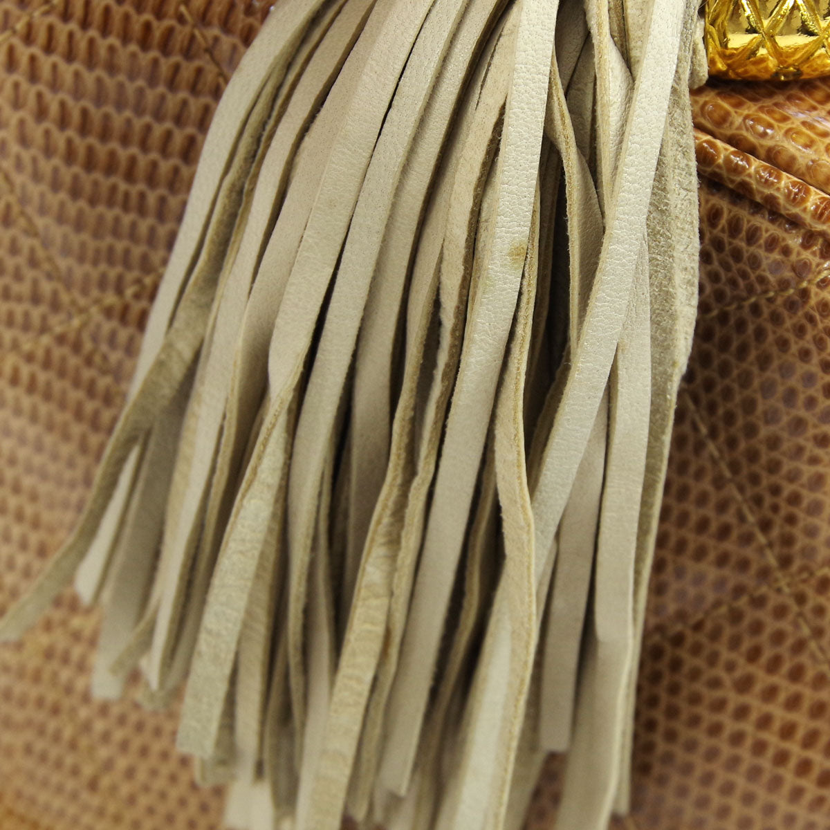 CHANEL * Fringe Bijou Chain Shoulder Bag Beige Lizard 87943