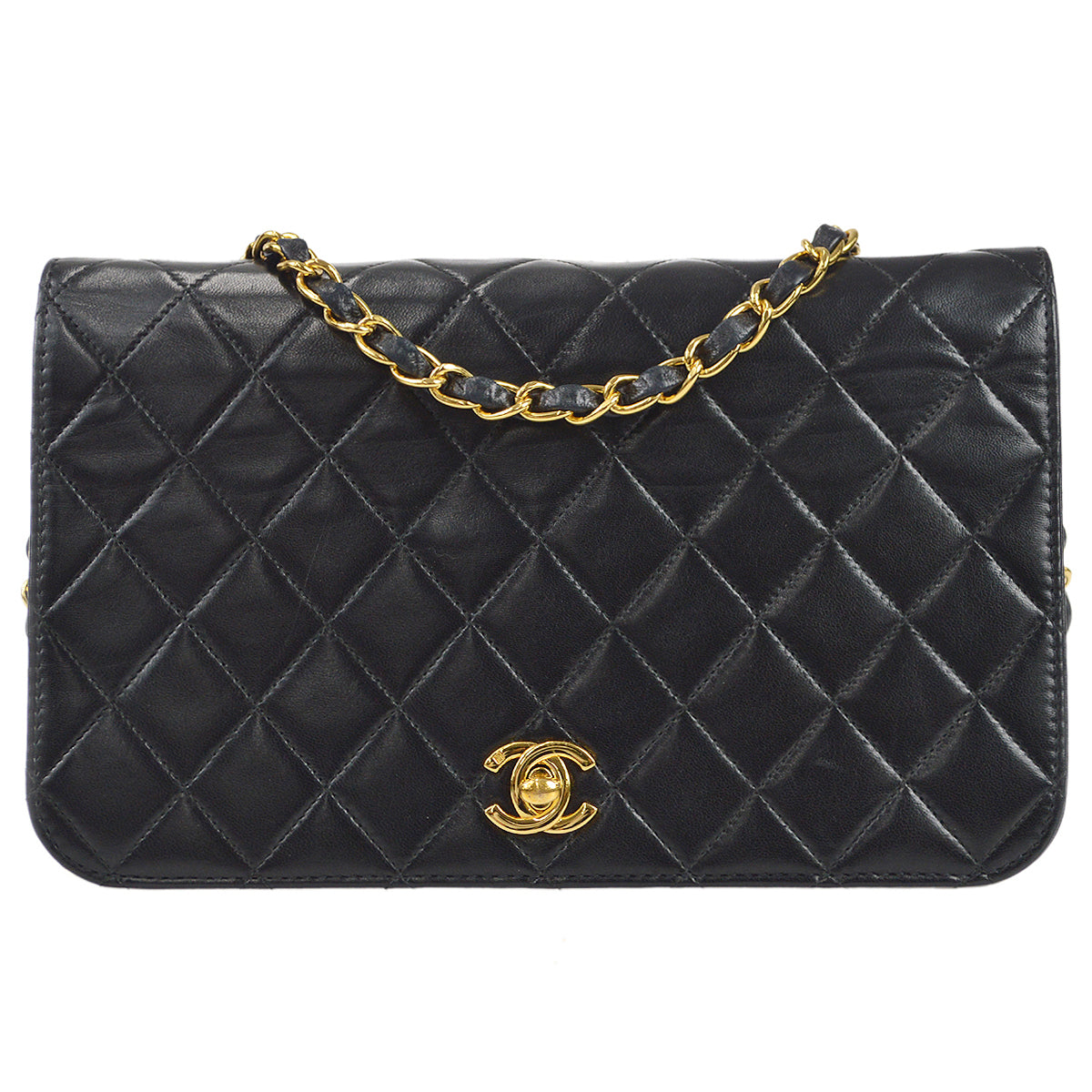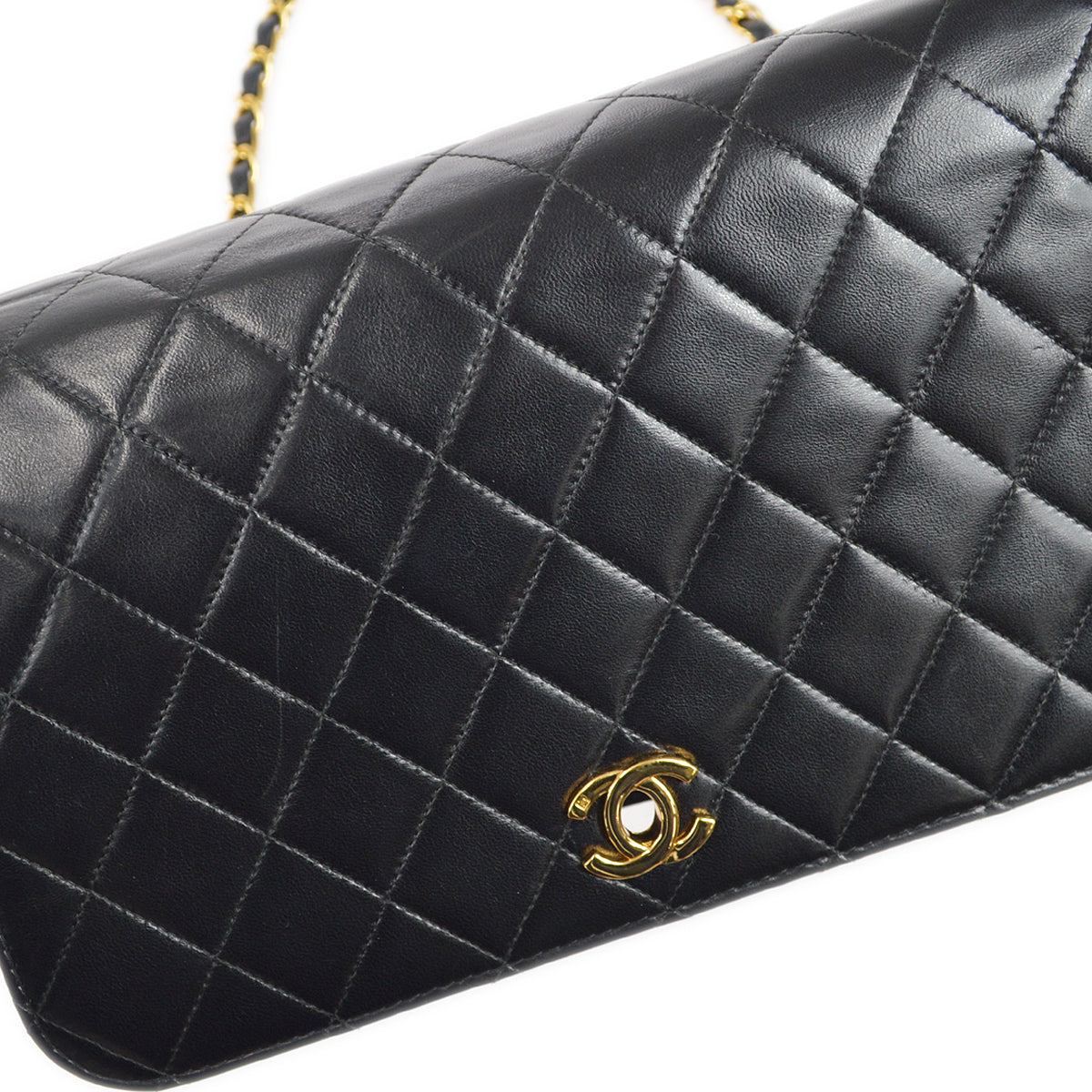 Chanel Full Flap Chain Shoulder Bag Black Lambskin