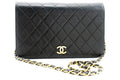 An CHANEL Full Flap Chain Shoulder Bag Clutch Black Quilted made of black Lambskin.