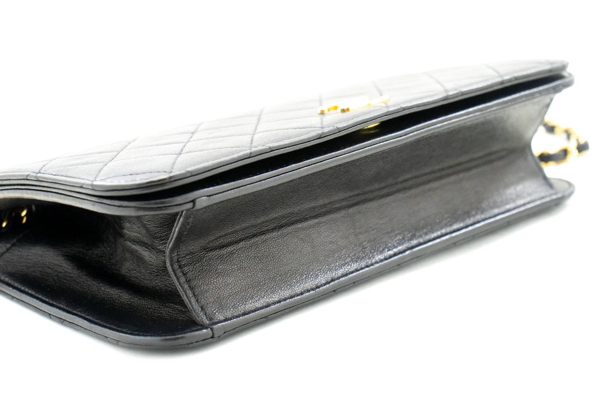 CHANEL Full Flap Chain Shoulder Bag Clutch Black Quilted Lambskin
