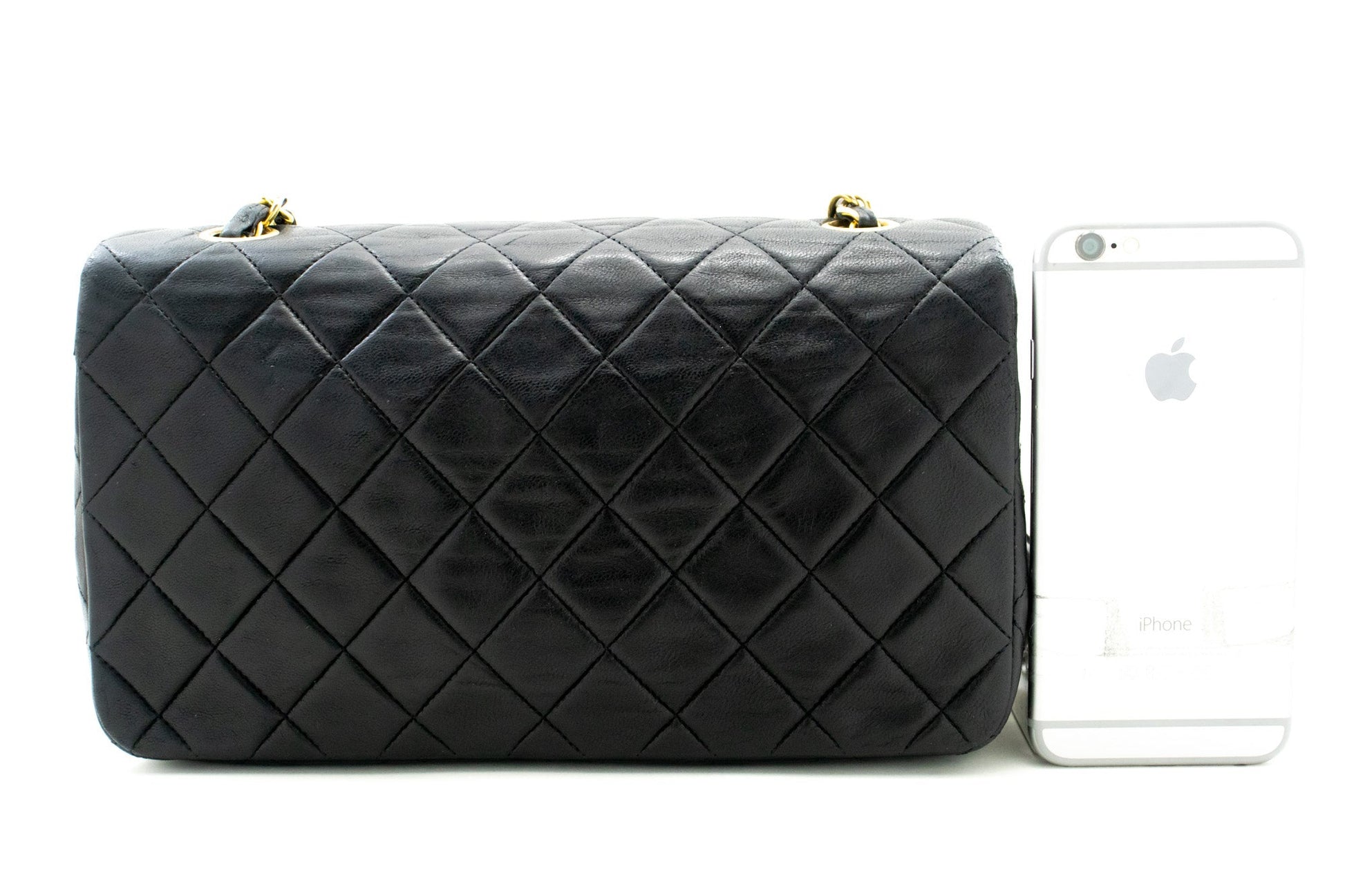 CHANEL Full Flap Chain Shoulder Bag Clutch Black Quilted Lambskin