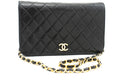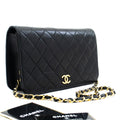 CHANEL Full Flap Chain Shoulder Bag Clutch Black Quilted Lambskin