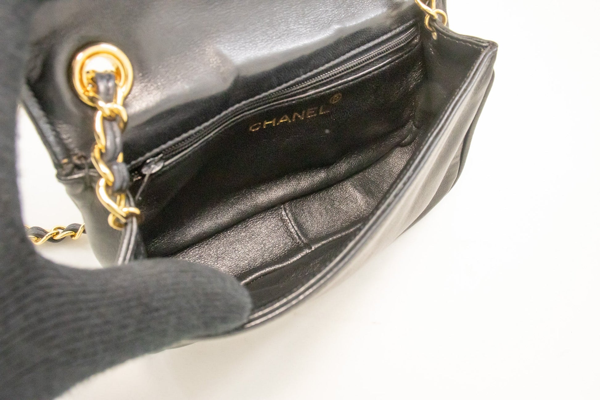 An CHANEL Full Flap Mini Small Chain Shoulder Bag Black Coco Quilted.