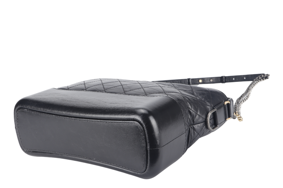 CHANEL GABRIELLE MEDIUM BLACK LAMBSKIN LEATHER GOLD HARDWARE (2480xxxx) WITH DUST COVER AND BOX