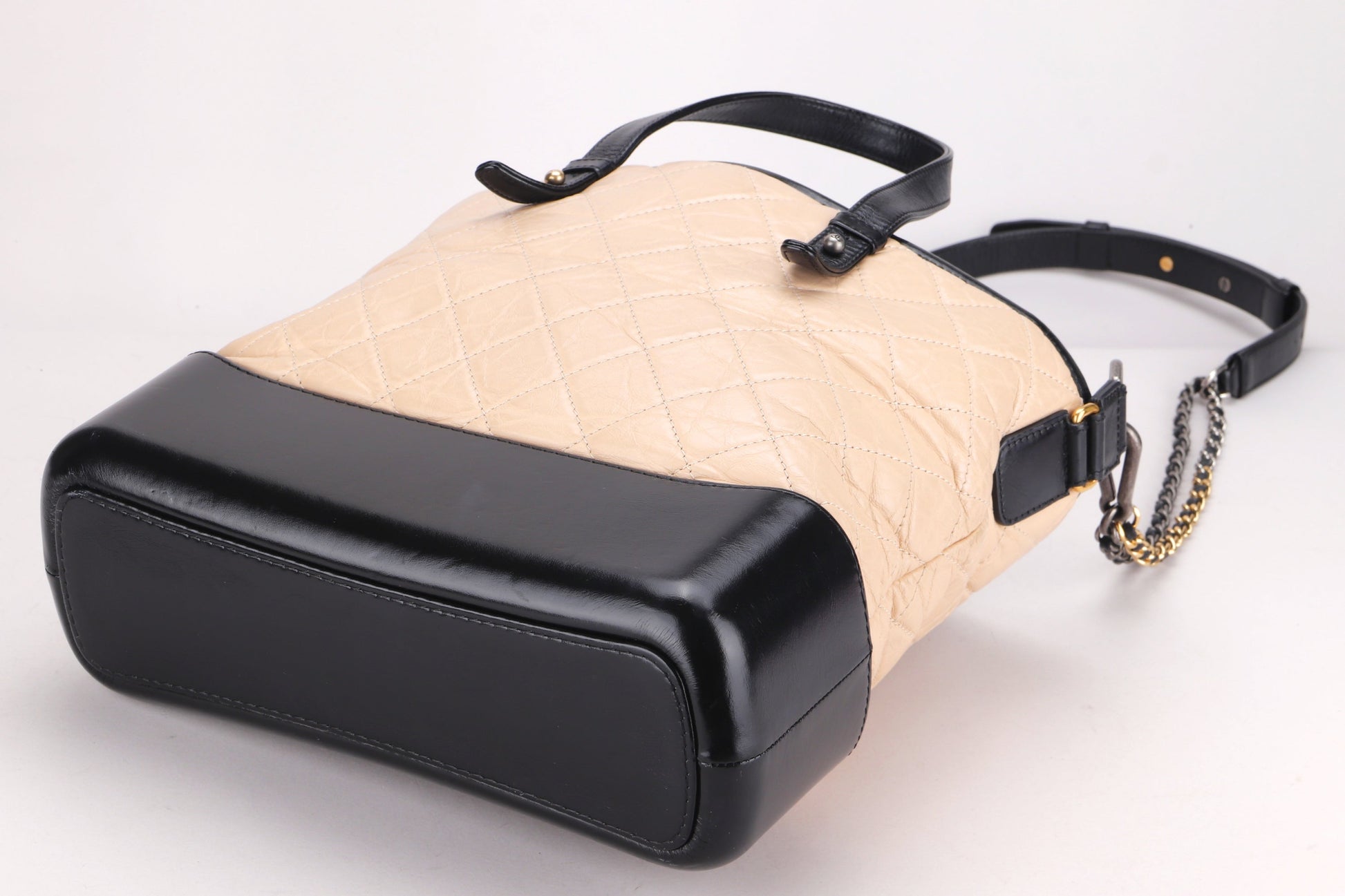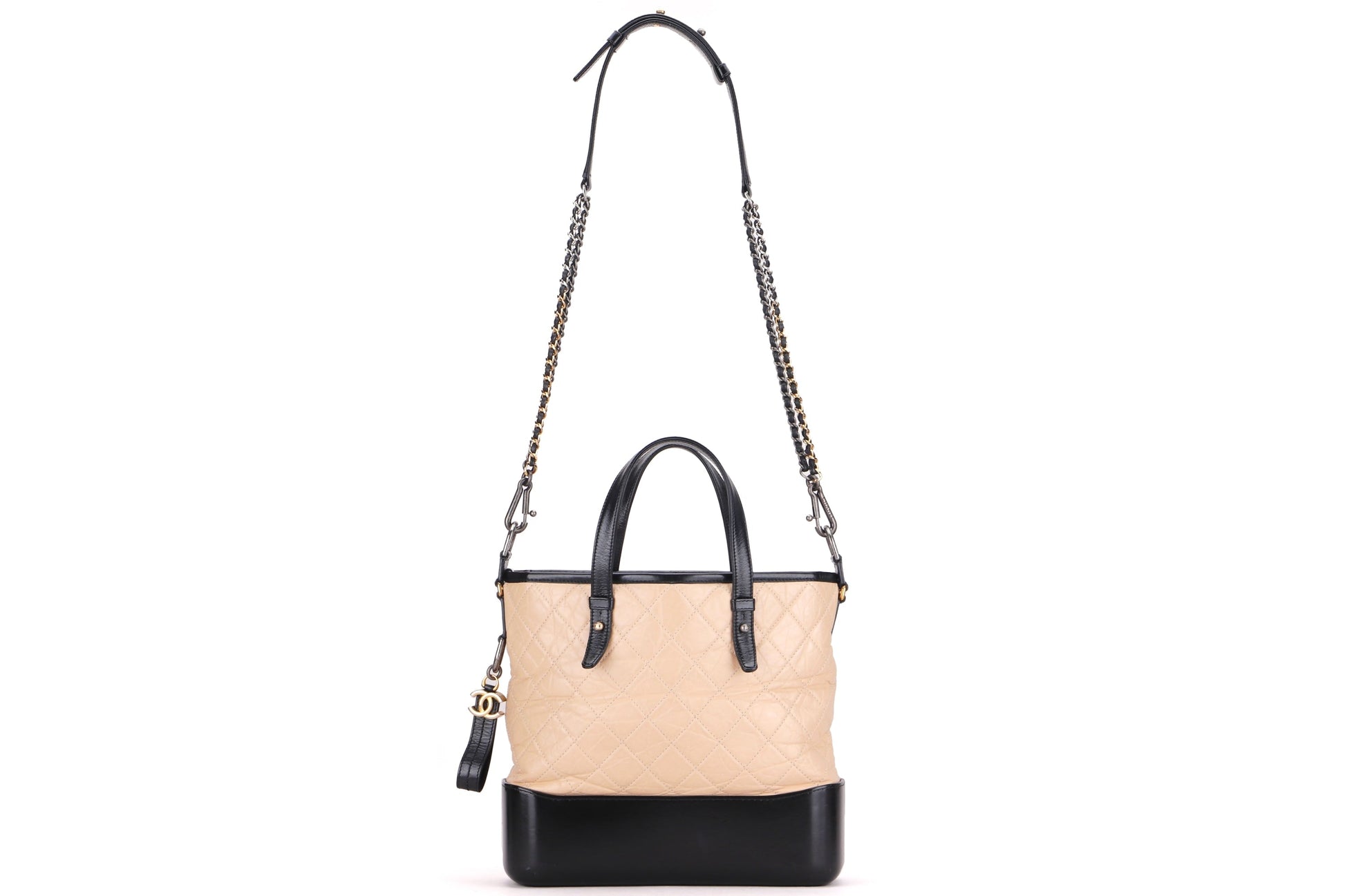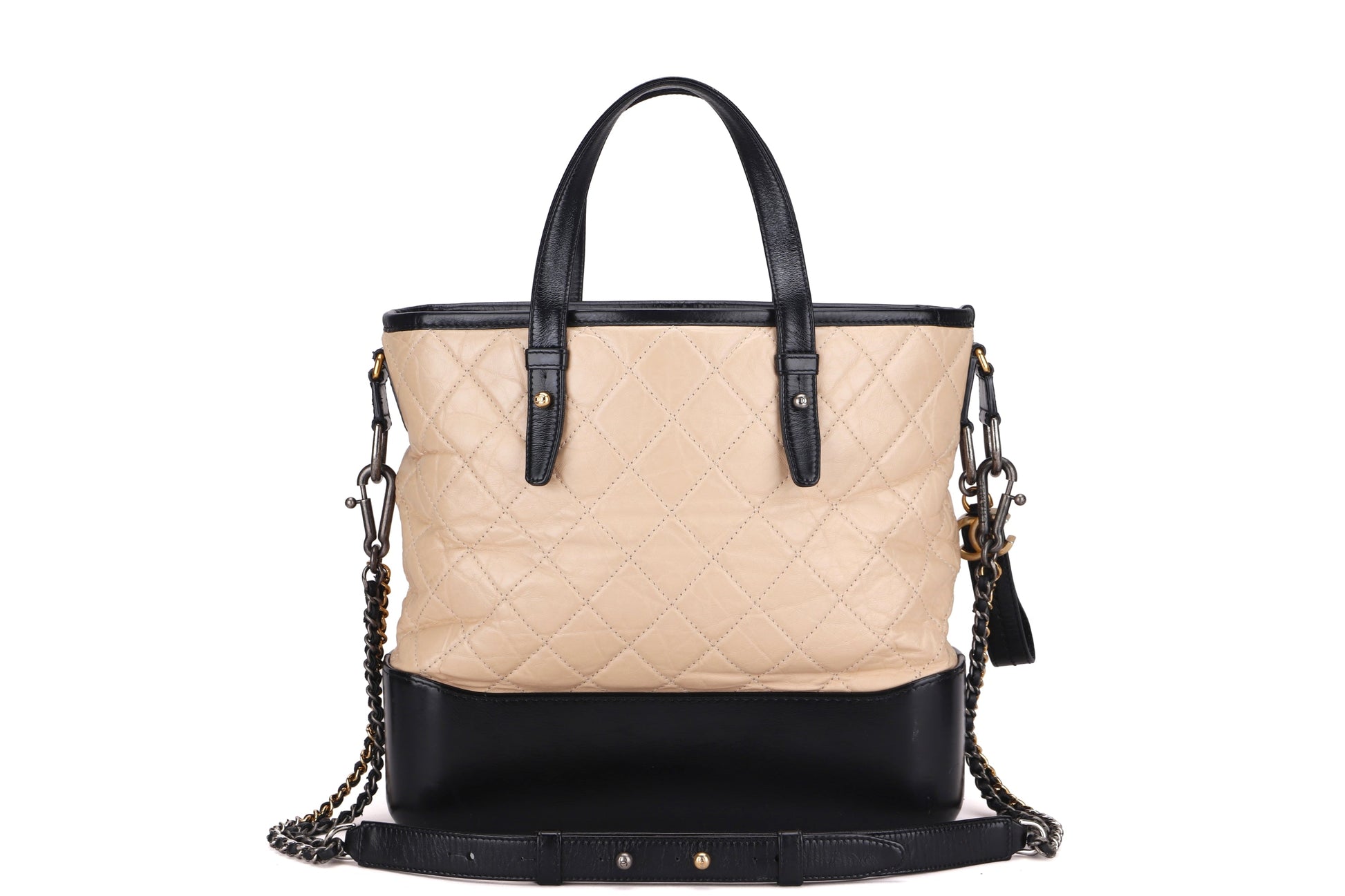 CHANEL GABRIELLE SHOPPING TOTE (2437xxxx) MEDIUM BEIGE BLACK CALFSKIN MIXED HARDWARE, WITH & DUST COVER