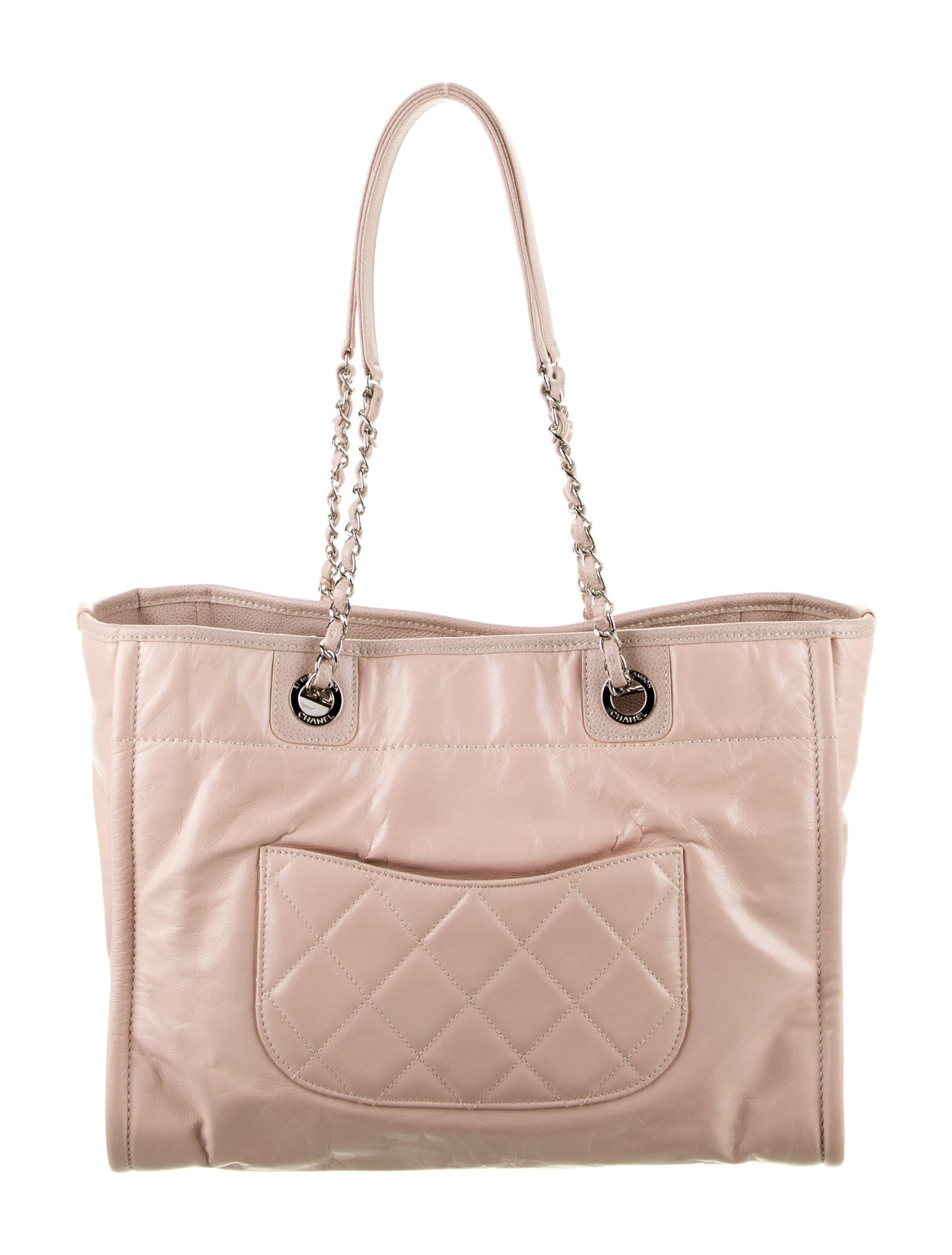 CHANEL Glazed Calfskin Deauville Tote Pink