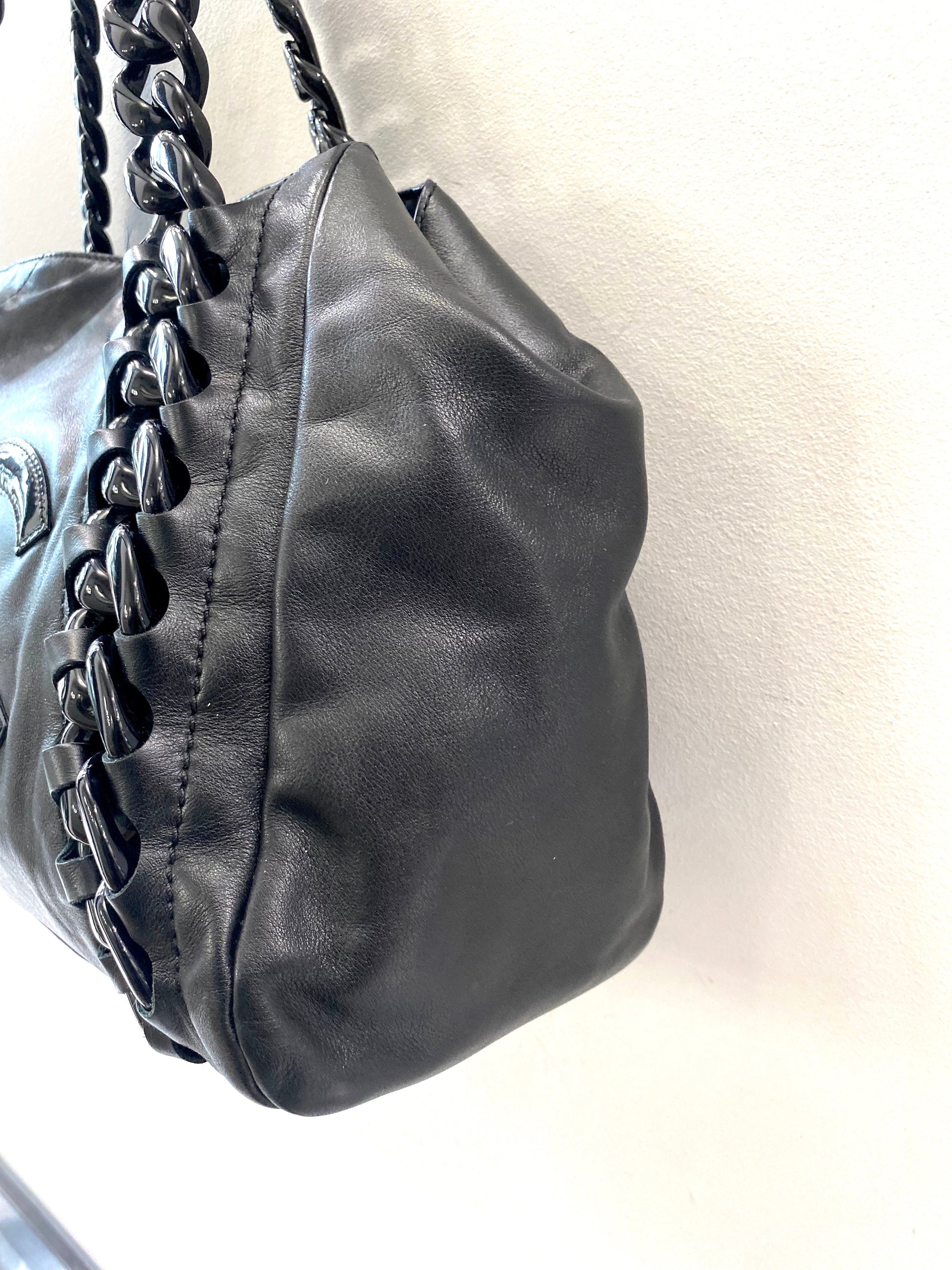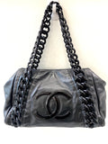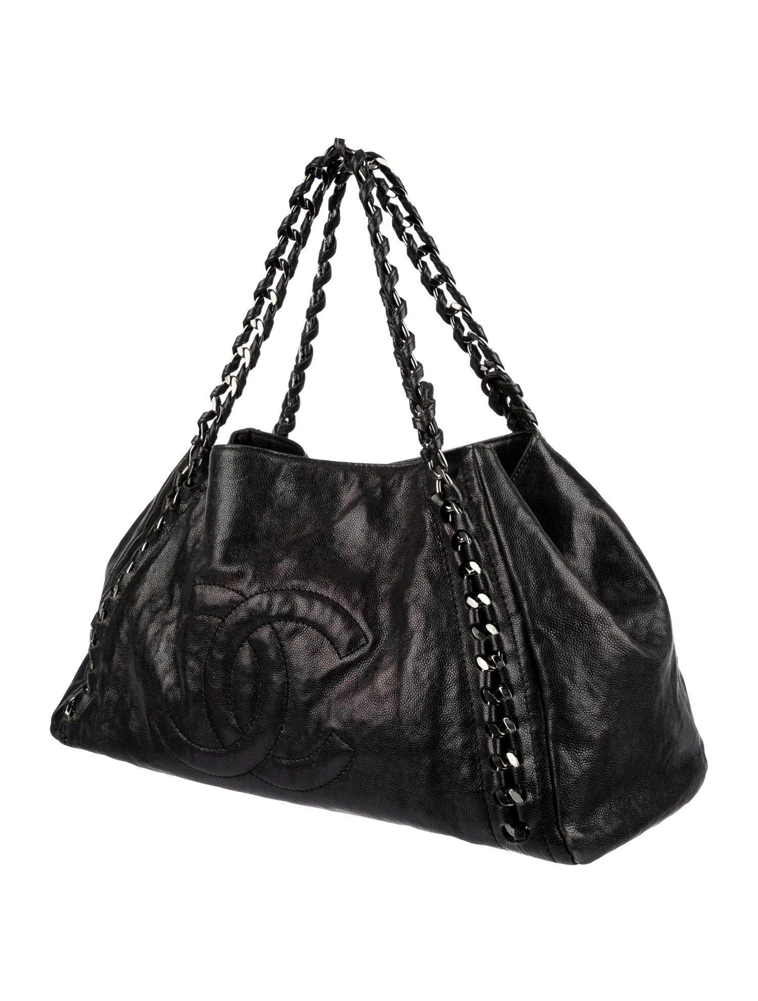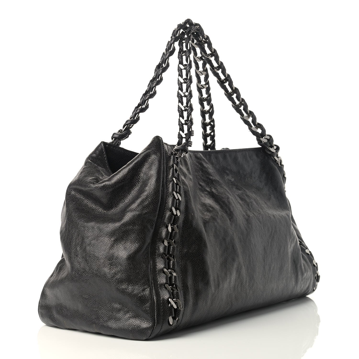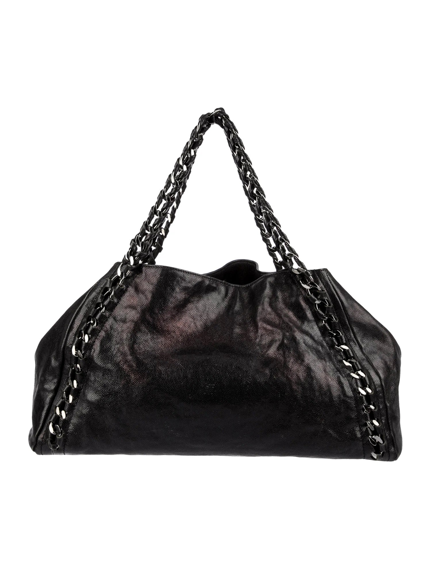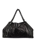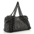 CHANEL GLAZED CALFSKIN LEATHER EAST WEST MODERN CHAIN TOTE