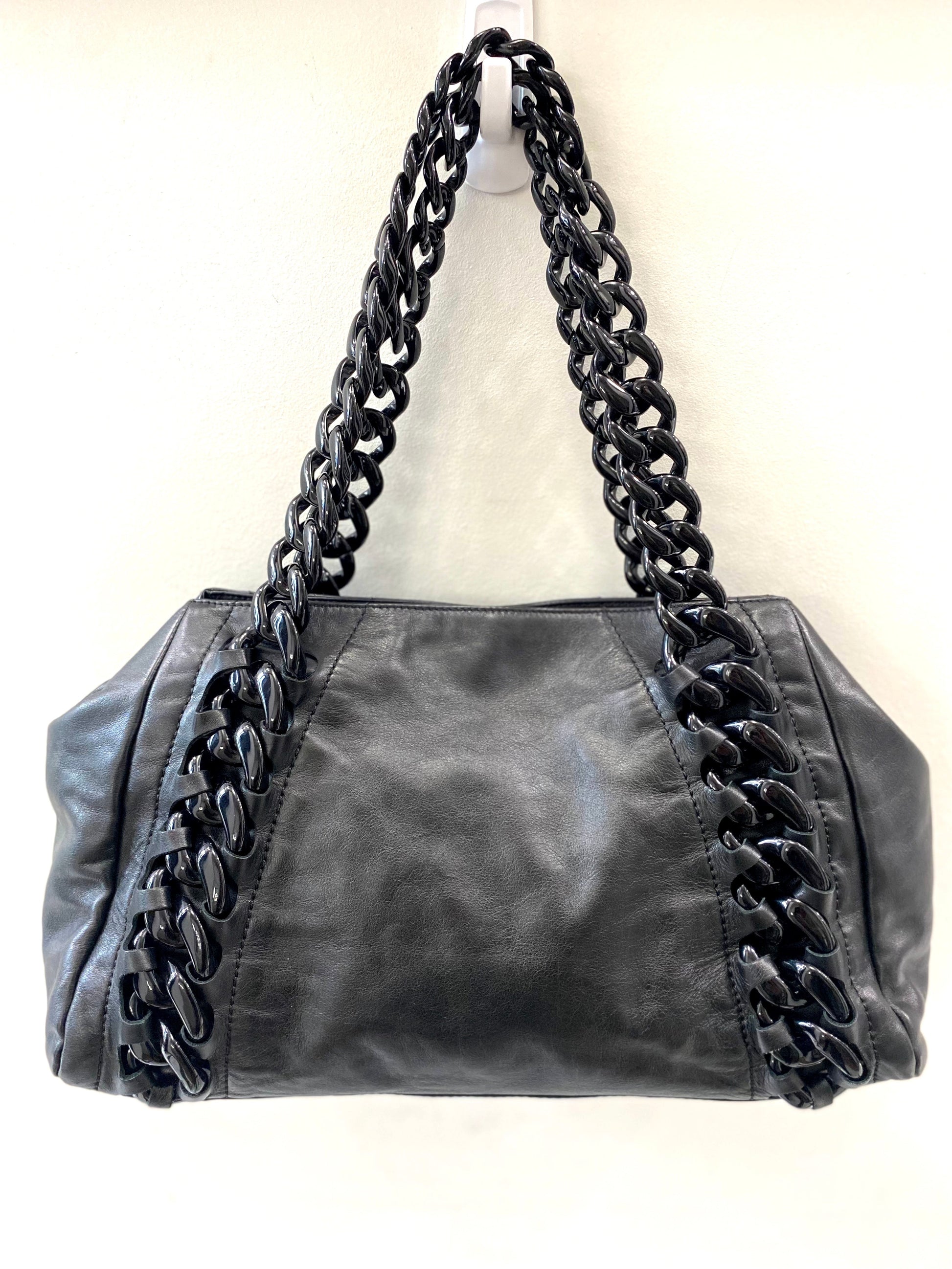 This Stunning shoulder bag is crafted of luxurious black calfskin leather.