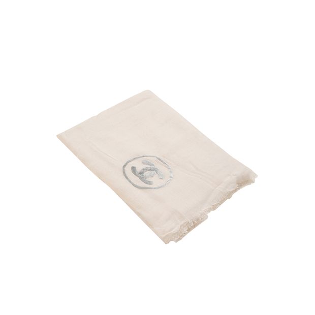 Chanel Large CC Cashmere and Wool Ivory Shawl scarf.