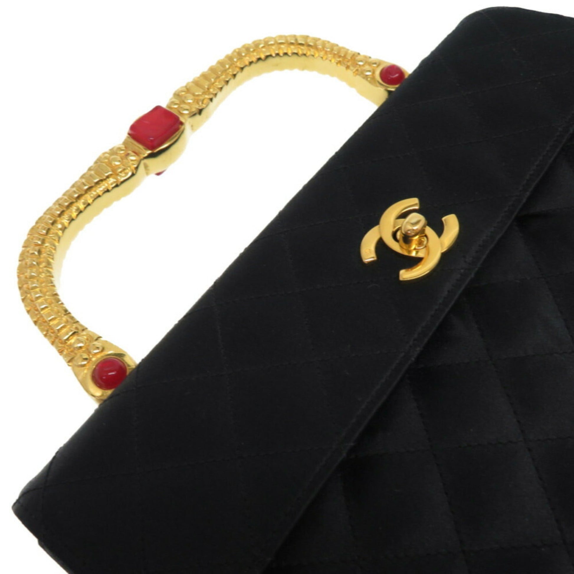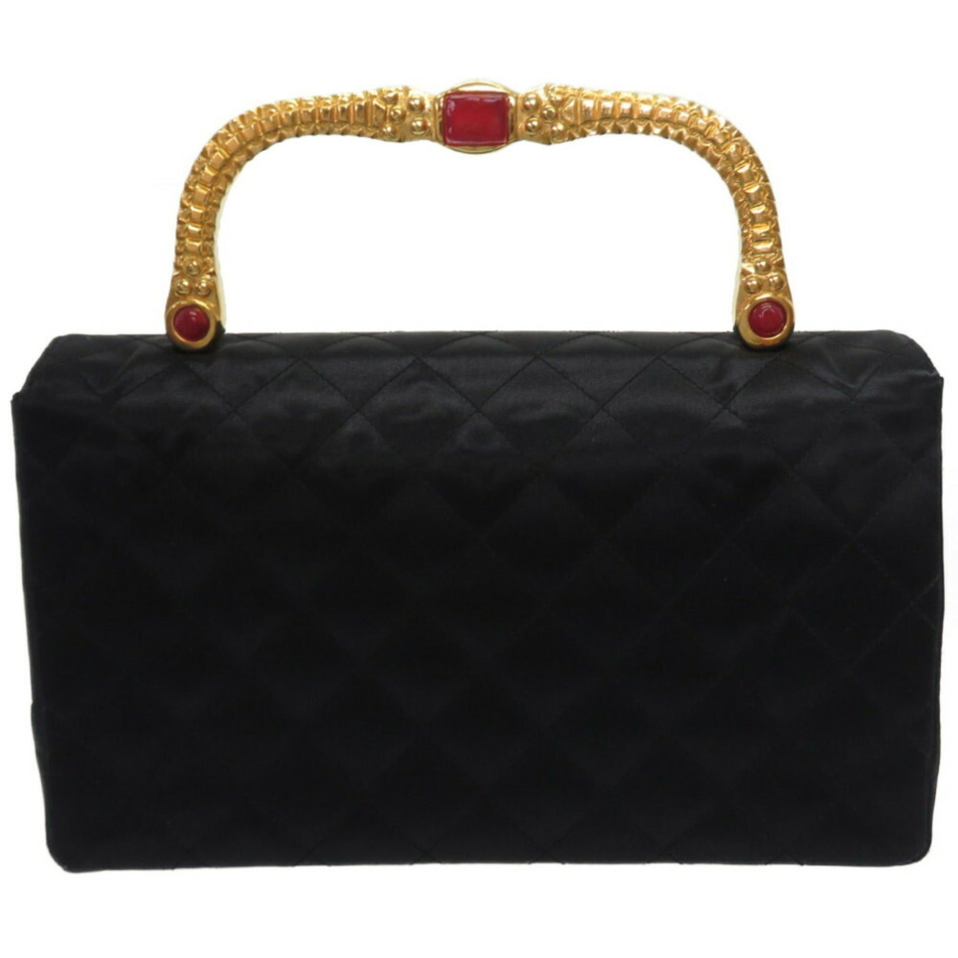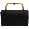 Chanel Gold Handle Stone Silk Satin Black Coco Mark Turn Lock HandBag 0009 Chanel