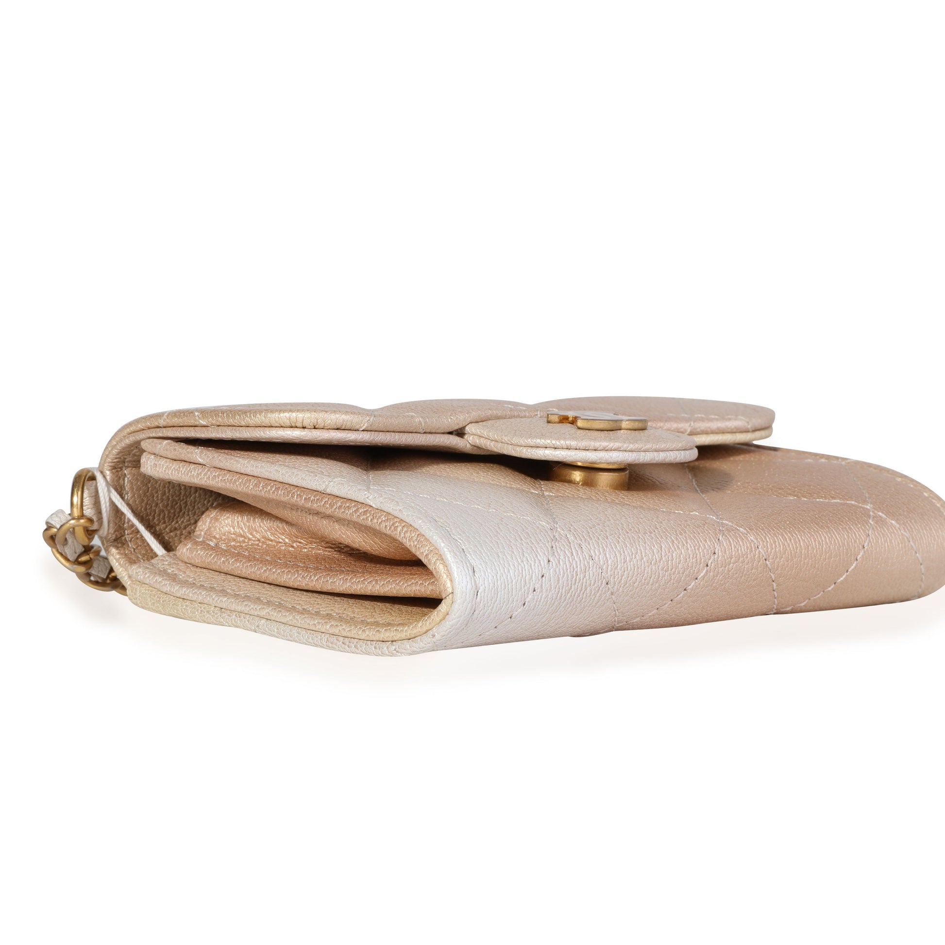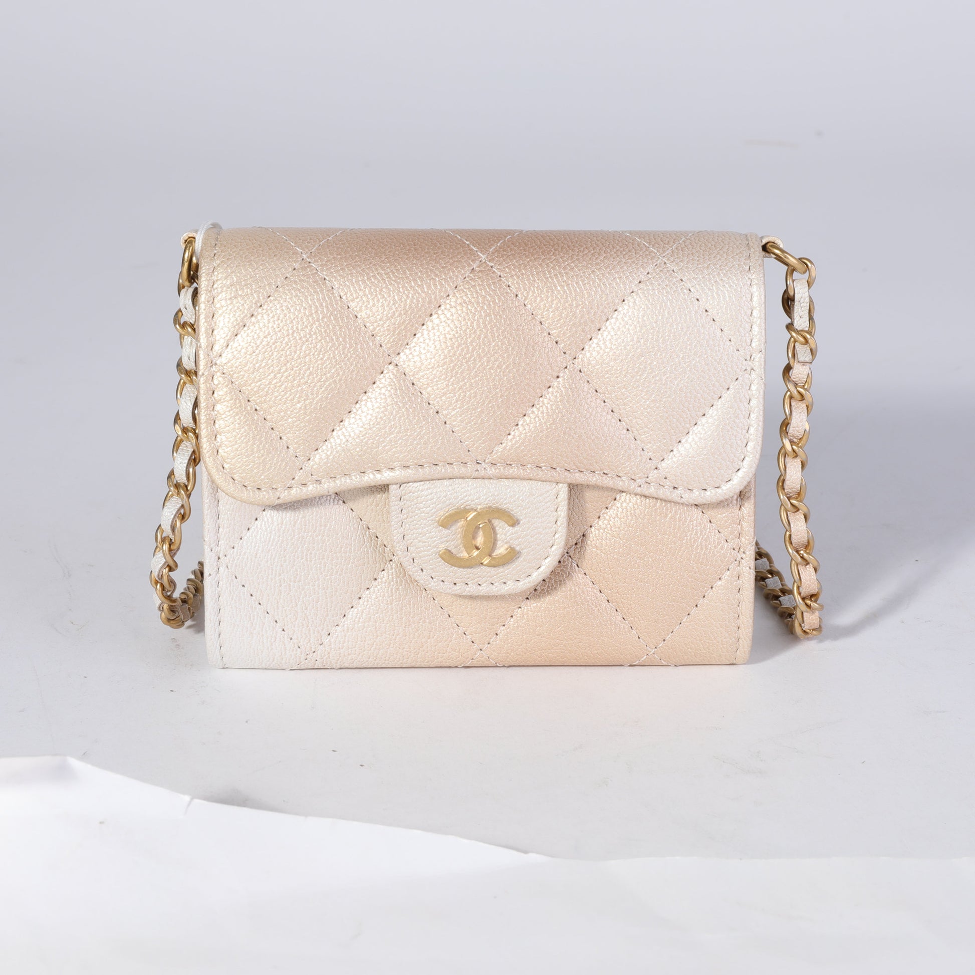 Listing Title: Chanel Gold Metallic Ombre Quilted Goatskin Classic Mini Clutch with Chain