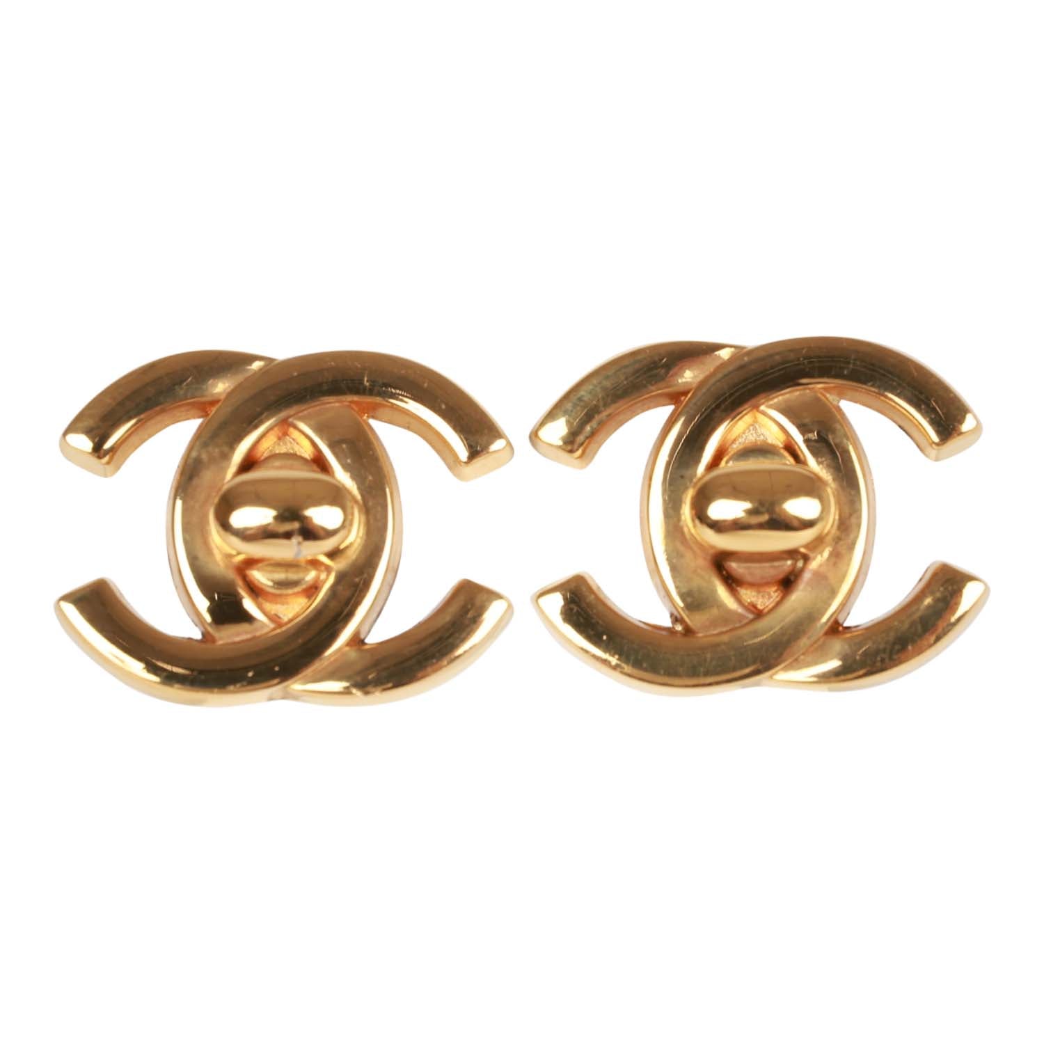Vintage Chanel Gold Plated Classic Turnlock CC Earrings