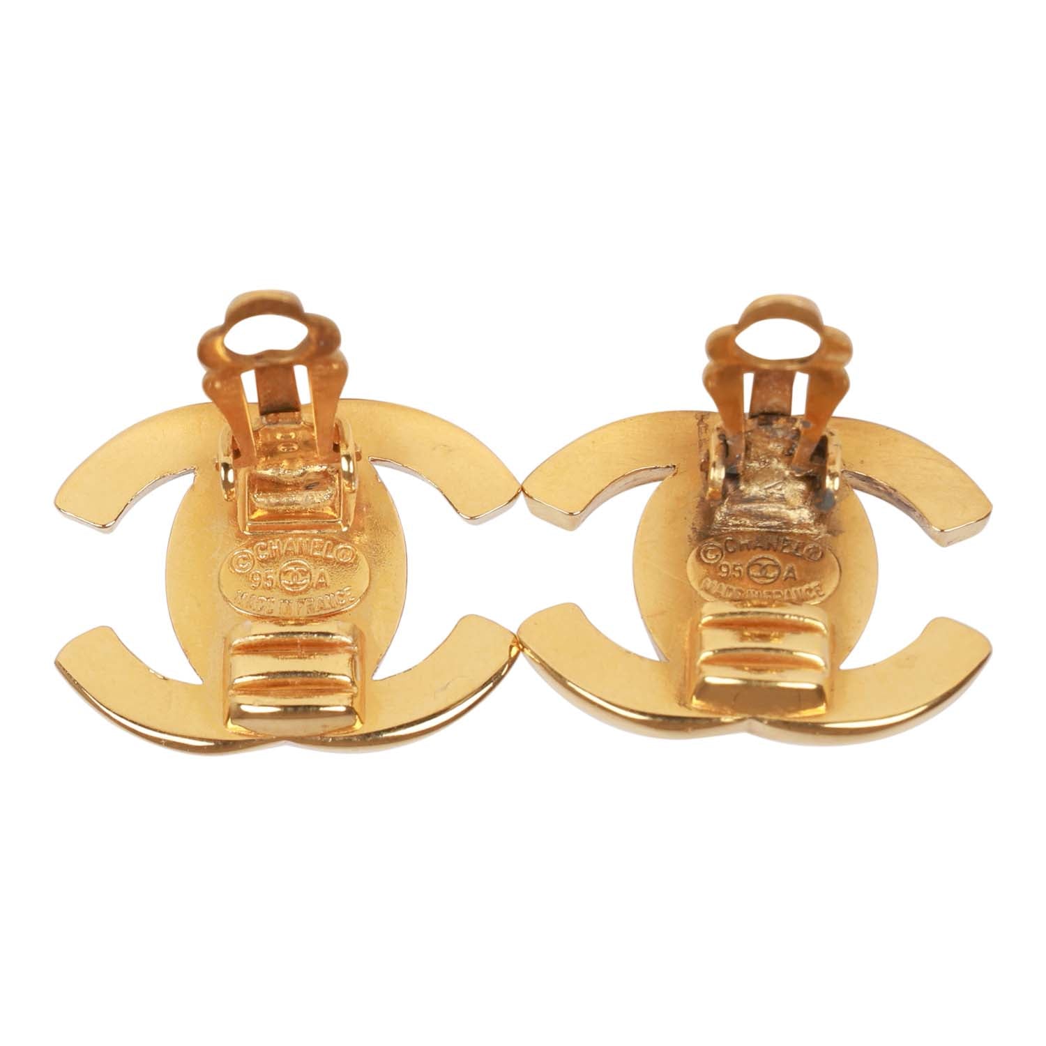 These vintage 95A earrings are in gold tone metal, featuring the classic CC turnlock motif and clip on backings.