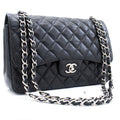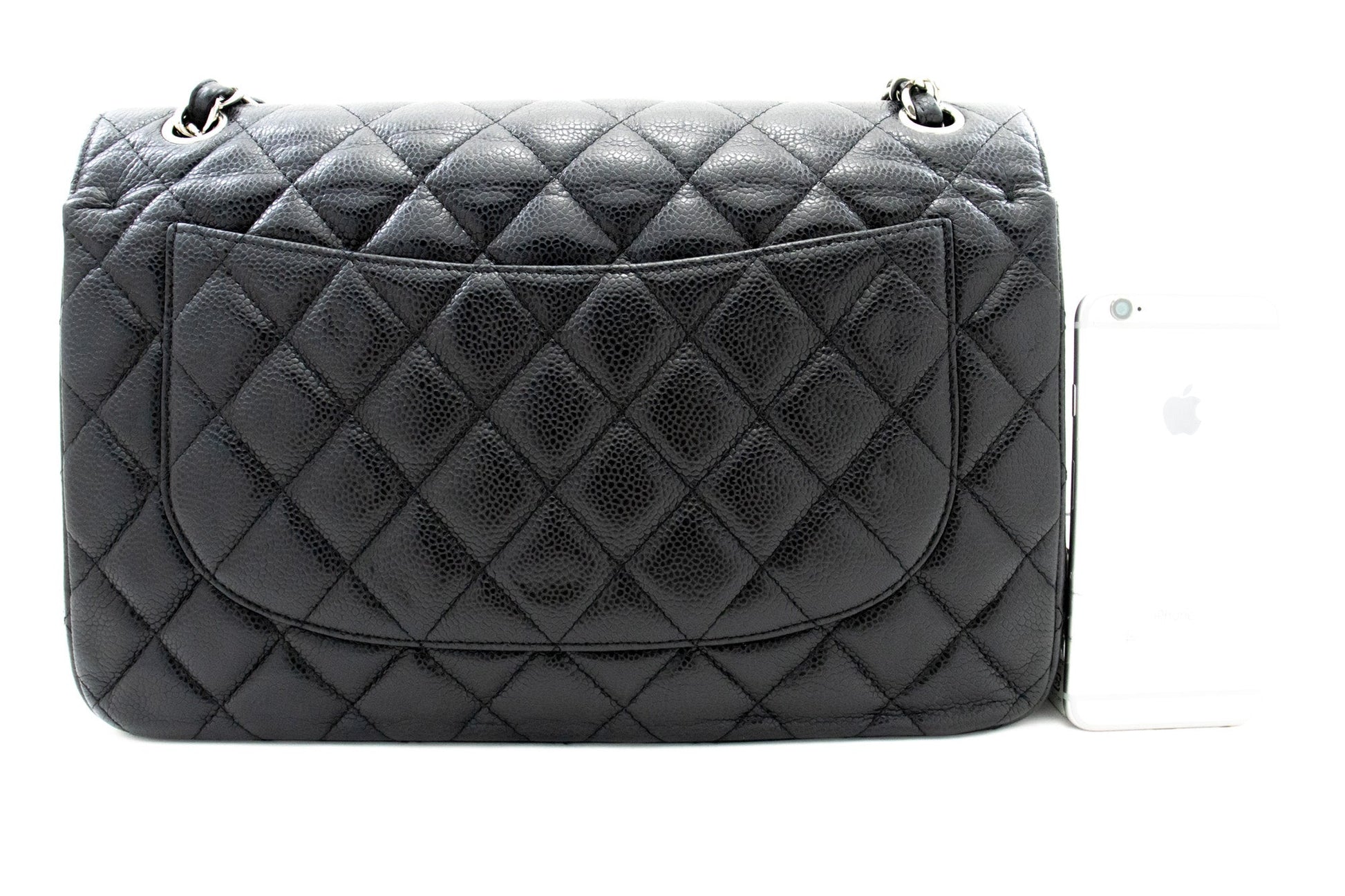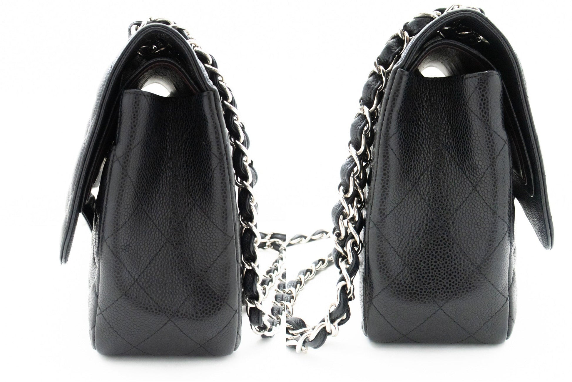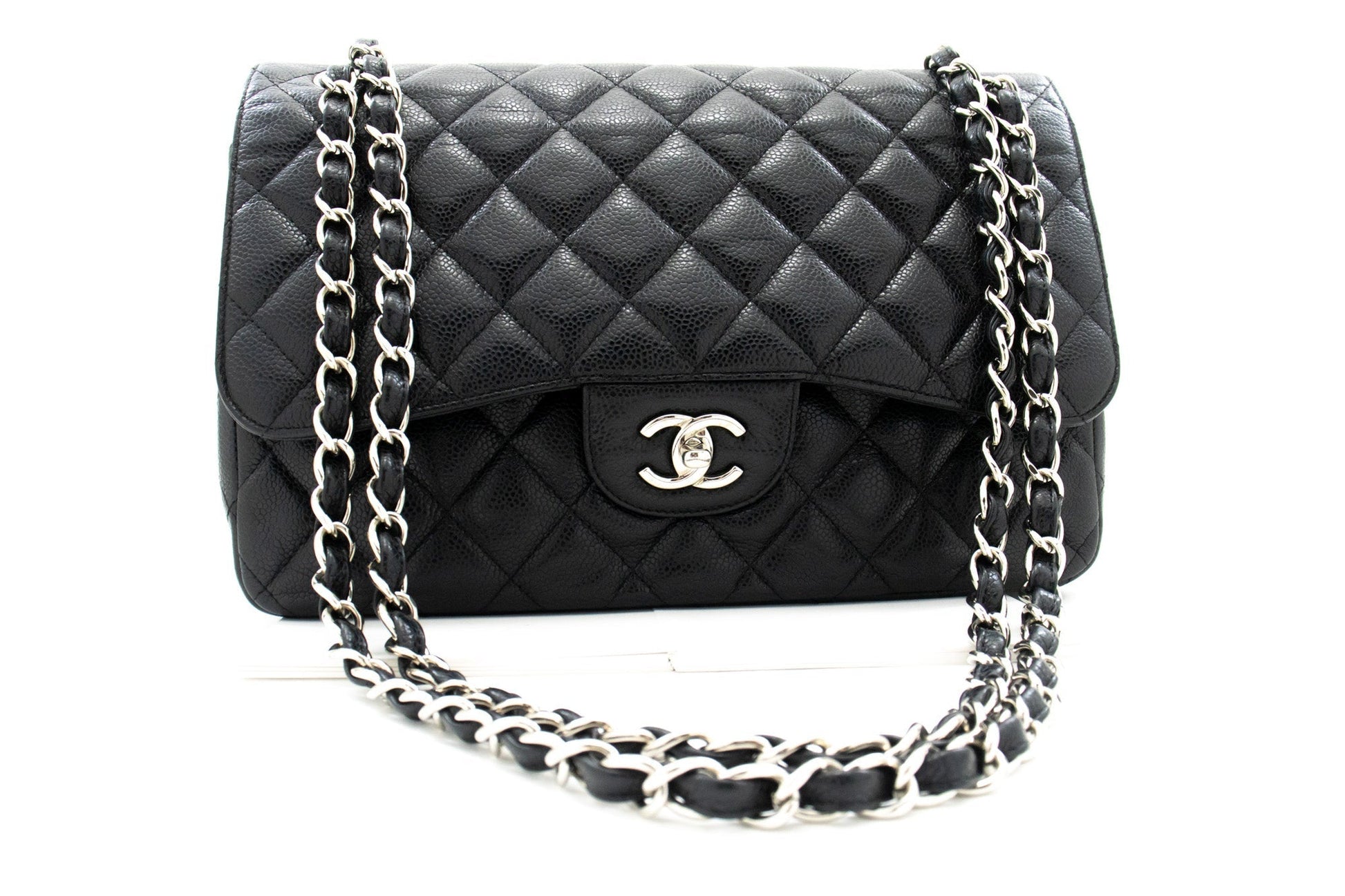 An CHANEL Grained Calfskin Large Chain Shoulder Bag W Flap Silver Classic.