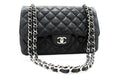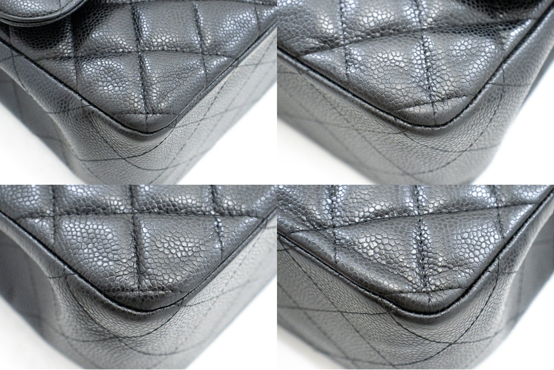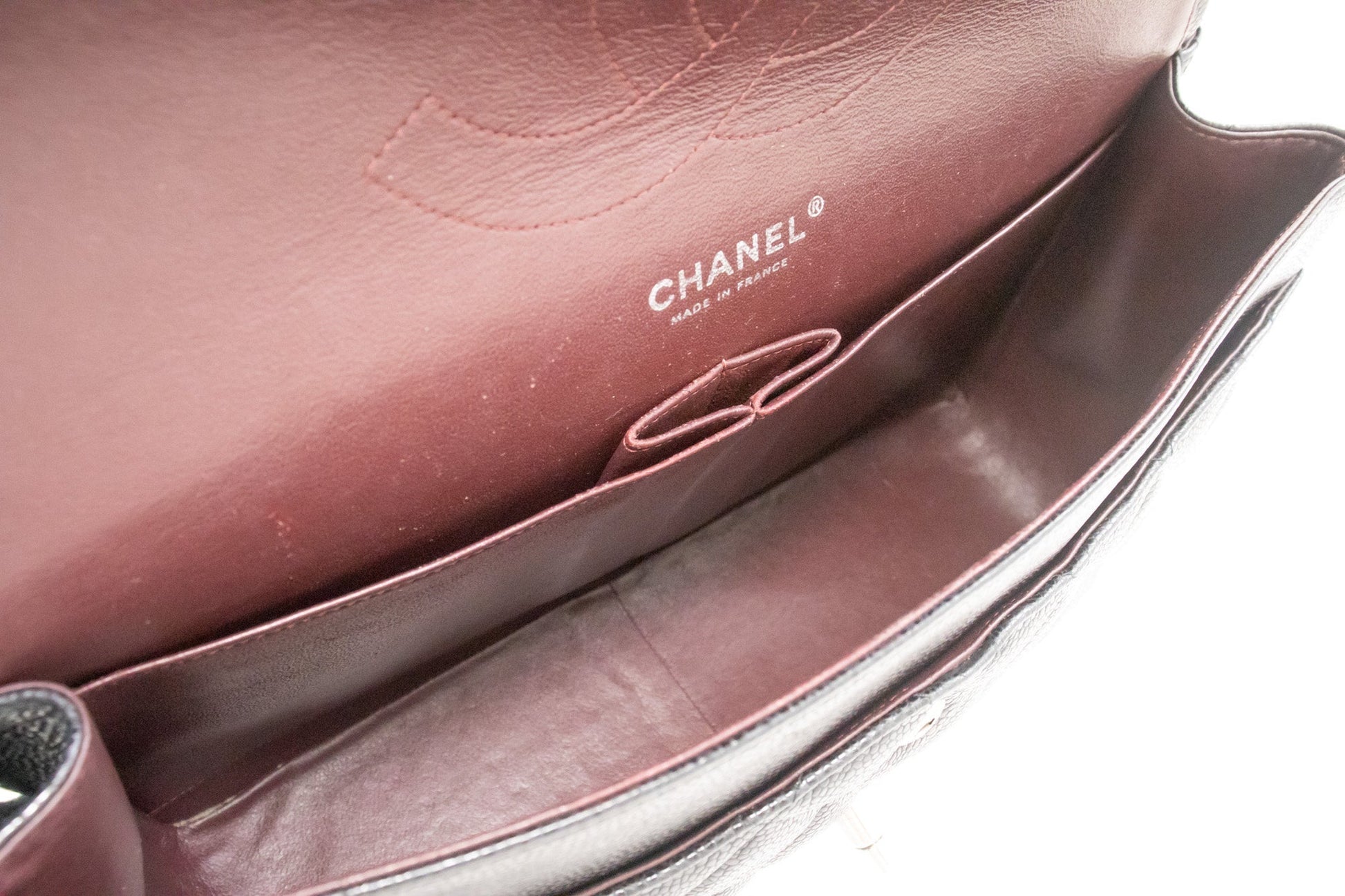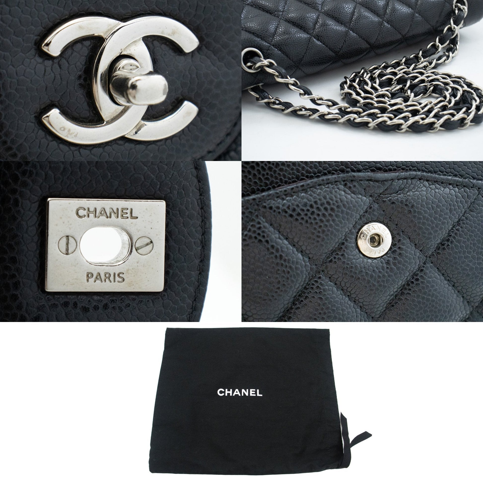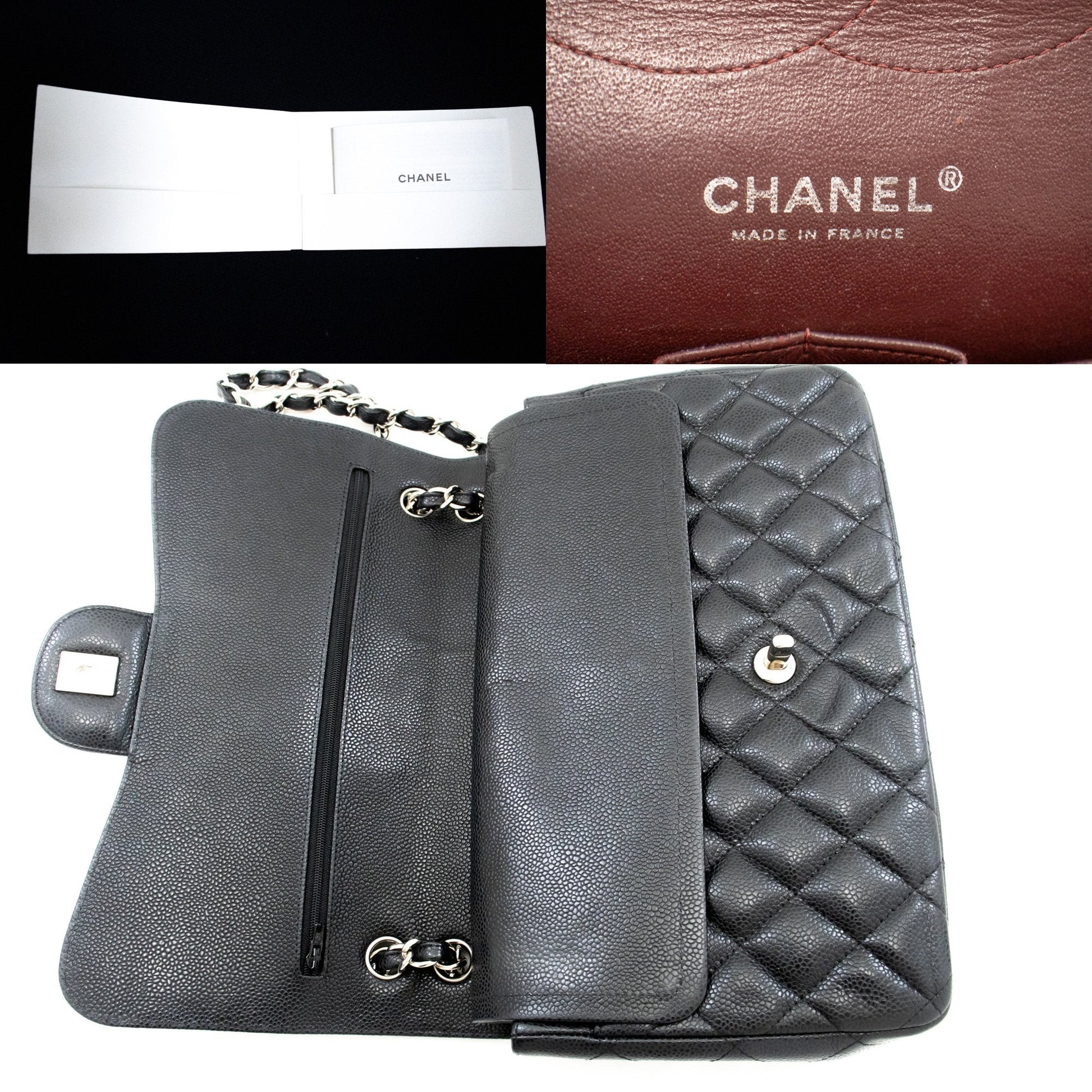 CHANEL Grained Calfskin Large Chain Shoulder Bag W Flap SV Classic