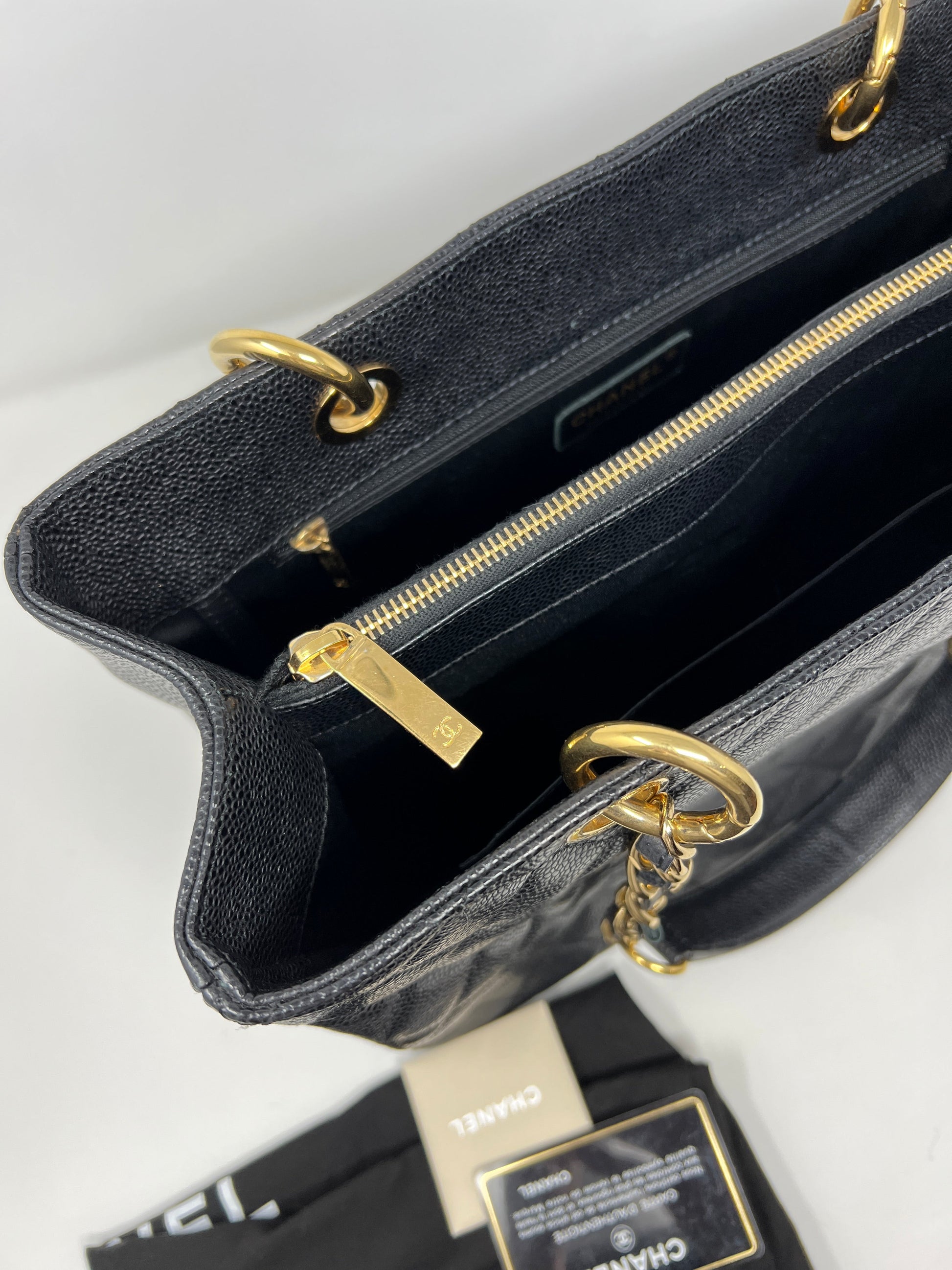 This icone shopping bag from Chanel called GST in black caviar leather and HWG.�
