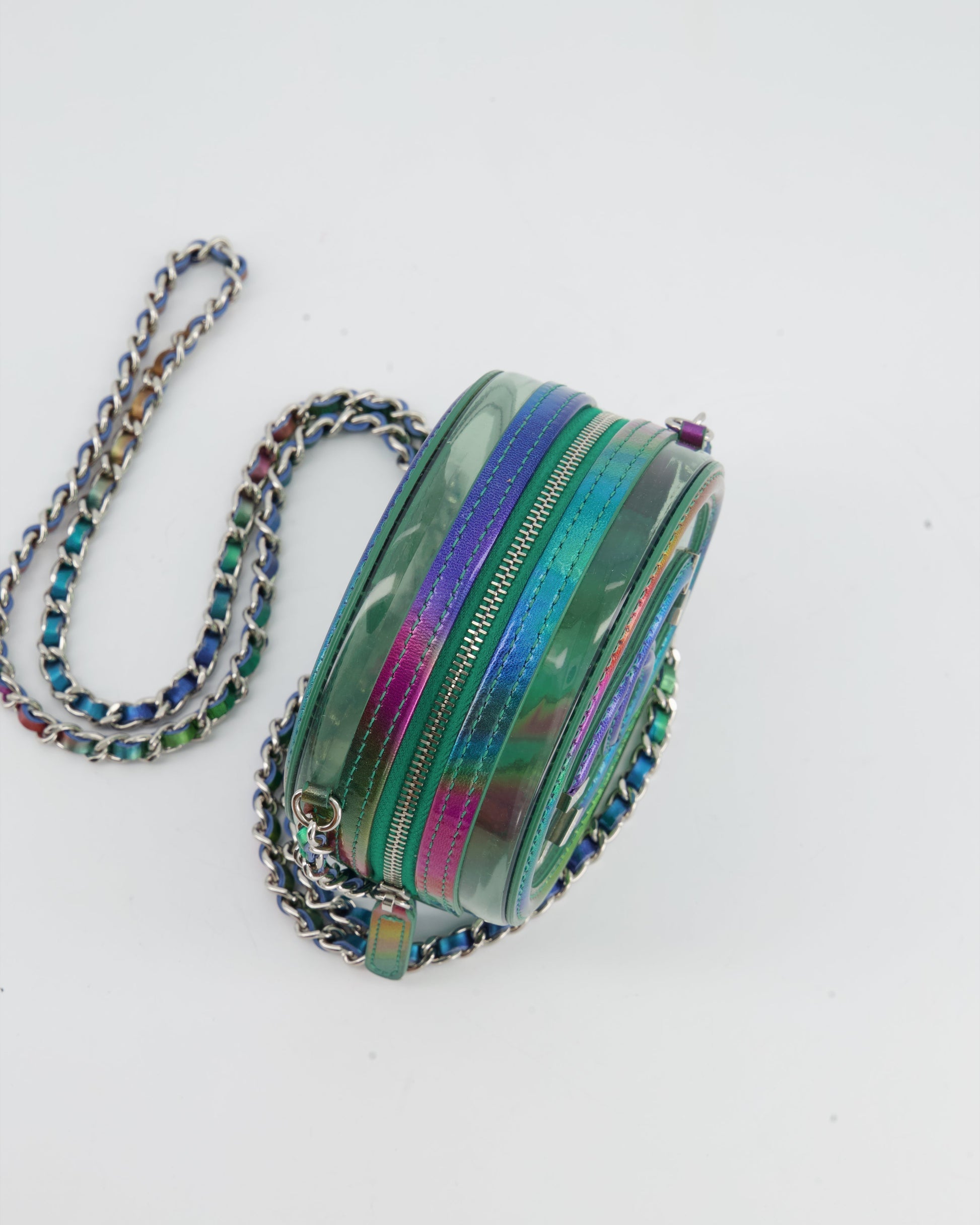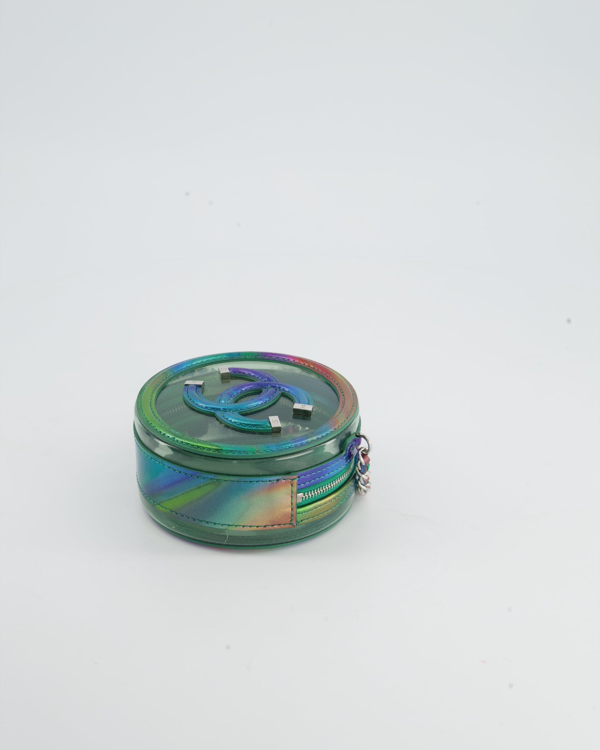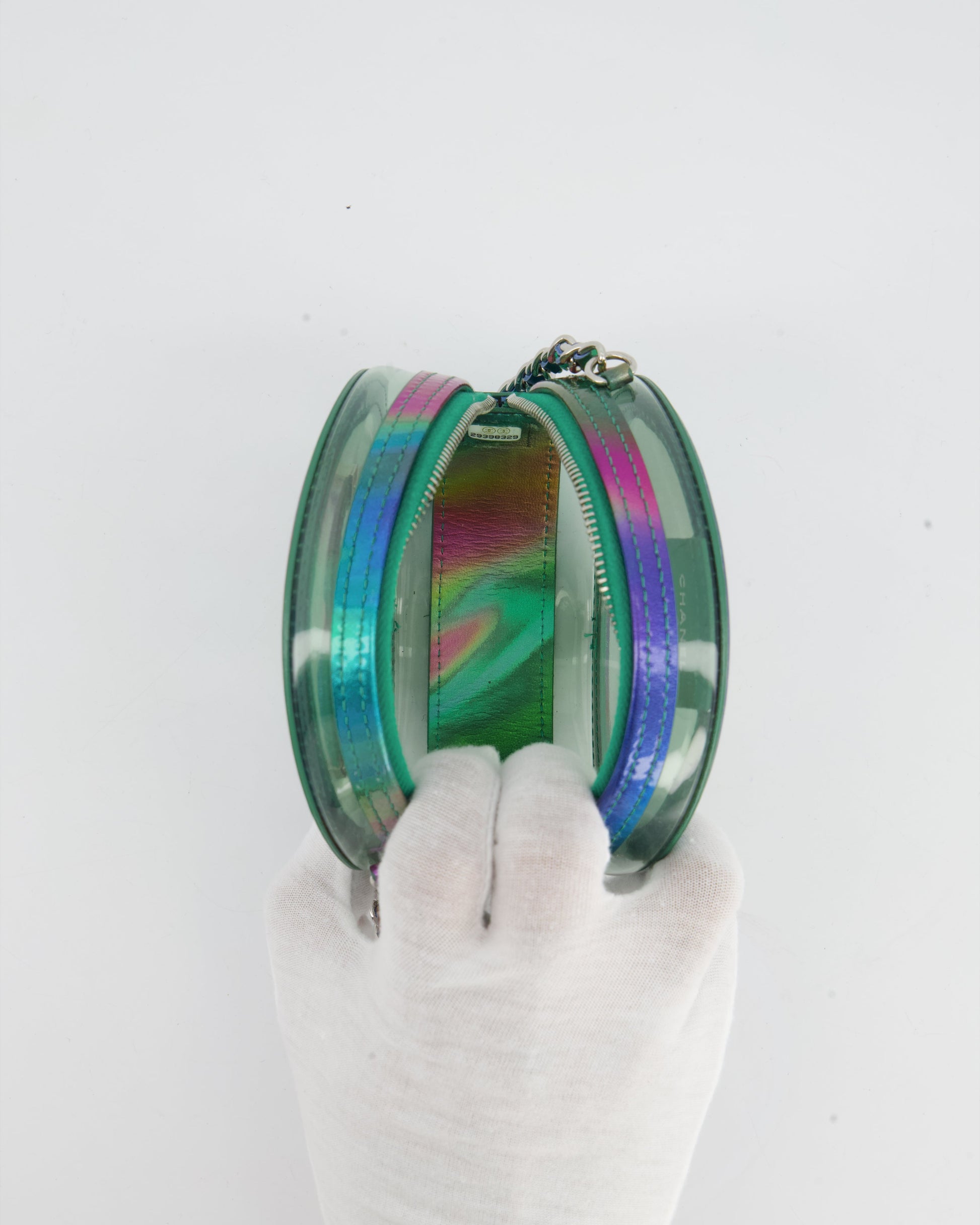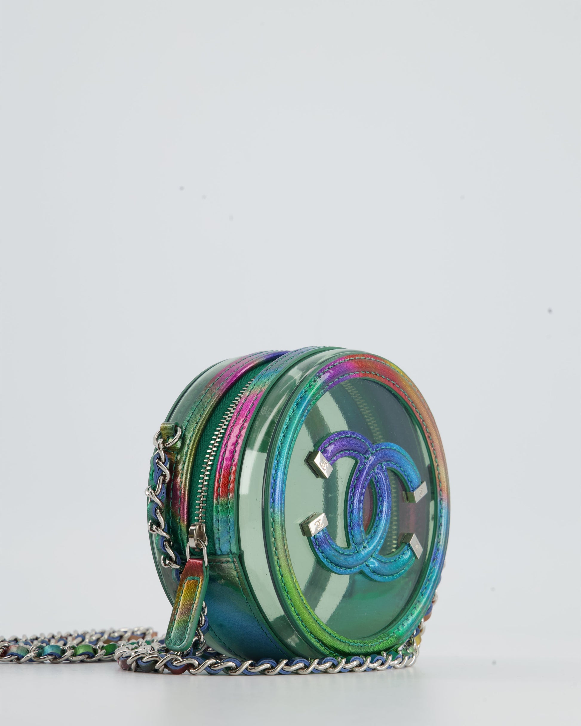Chanel Rainbow Green Filigree PVC CC Mini Round Crossbody Bag with Silver Hardware