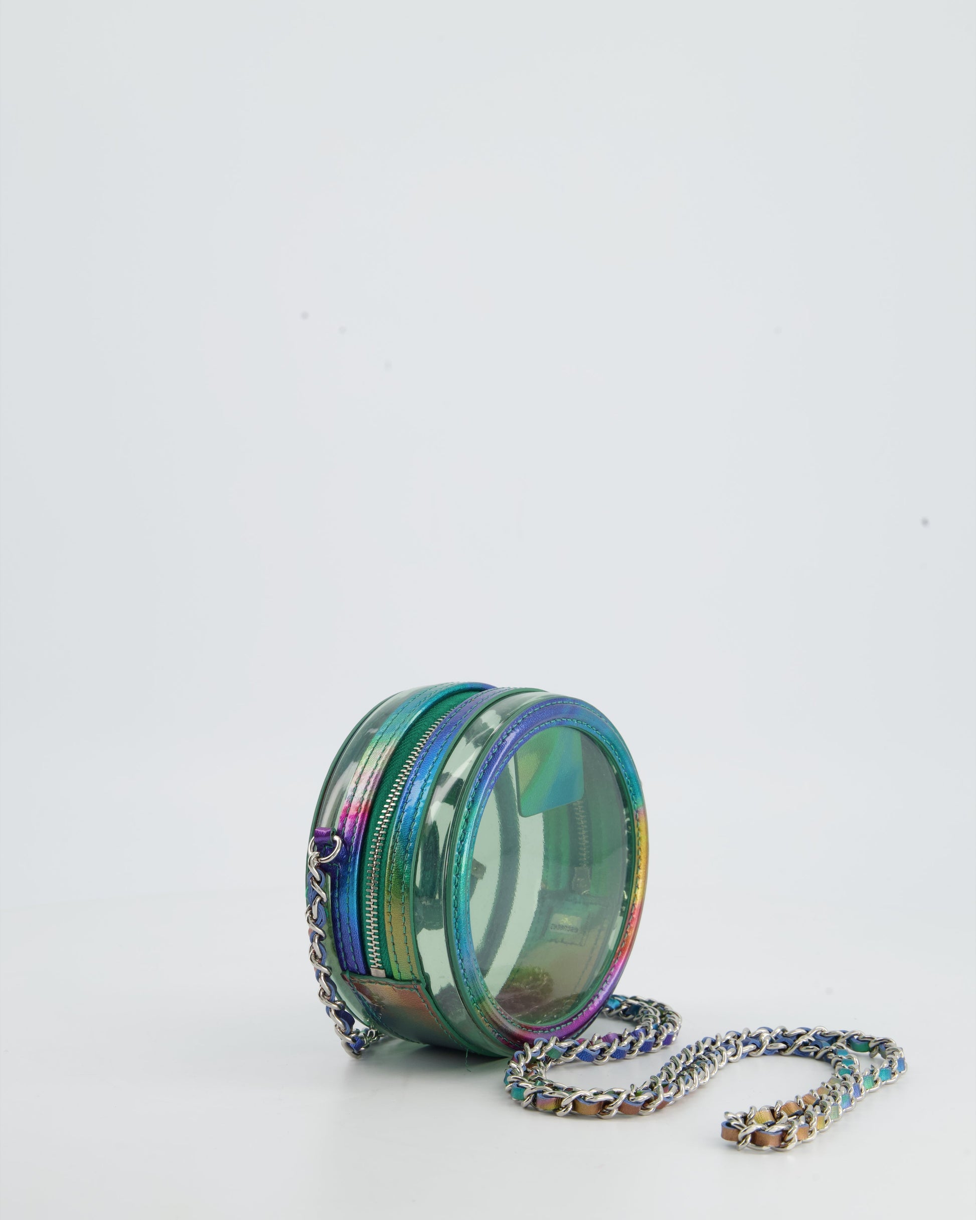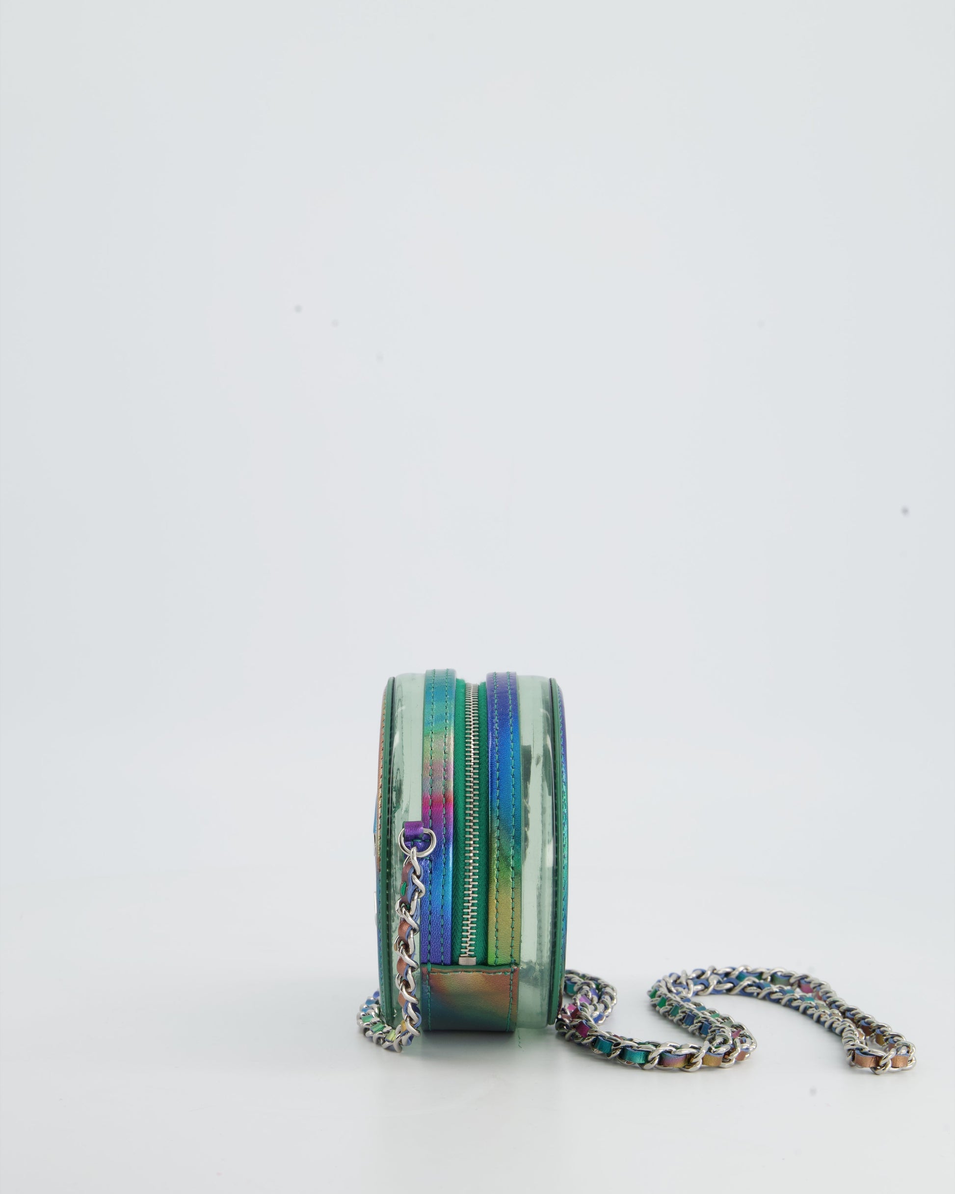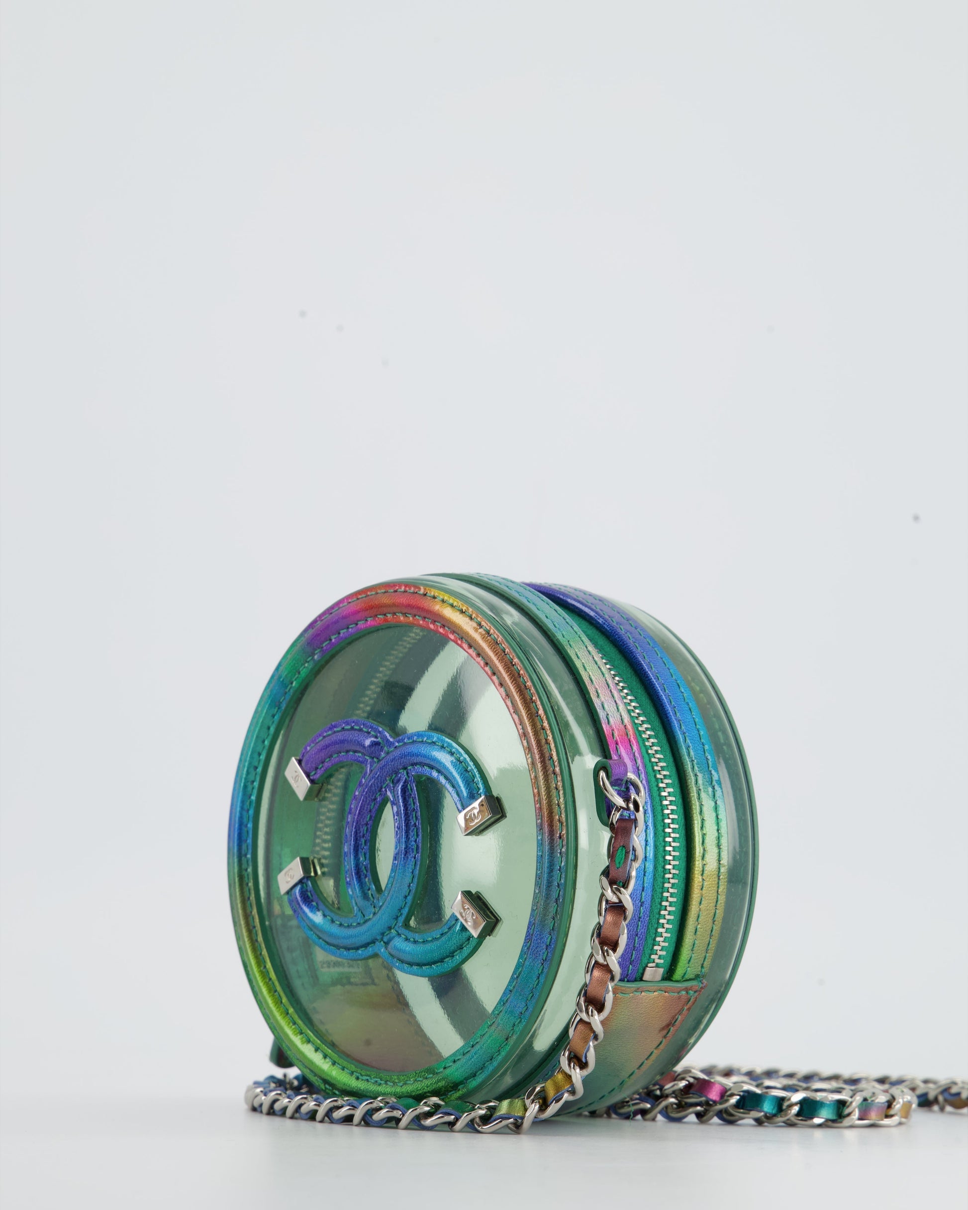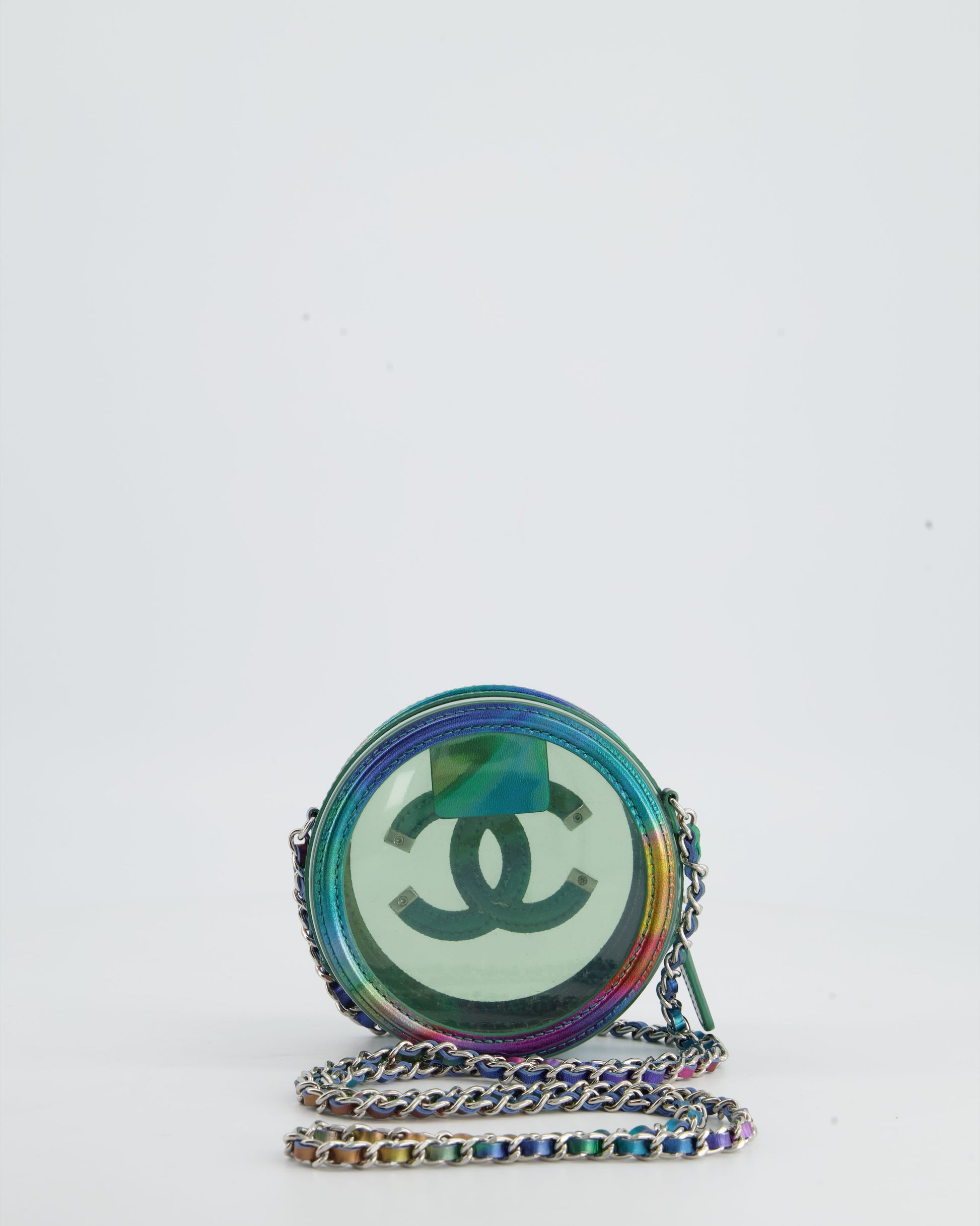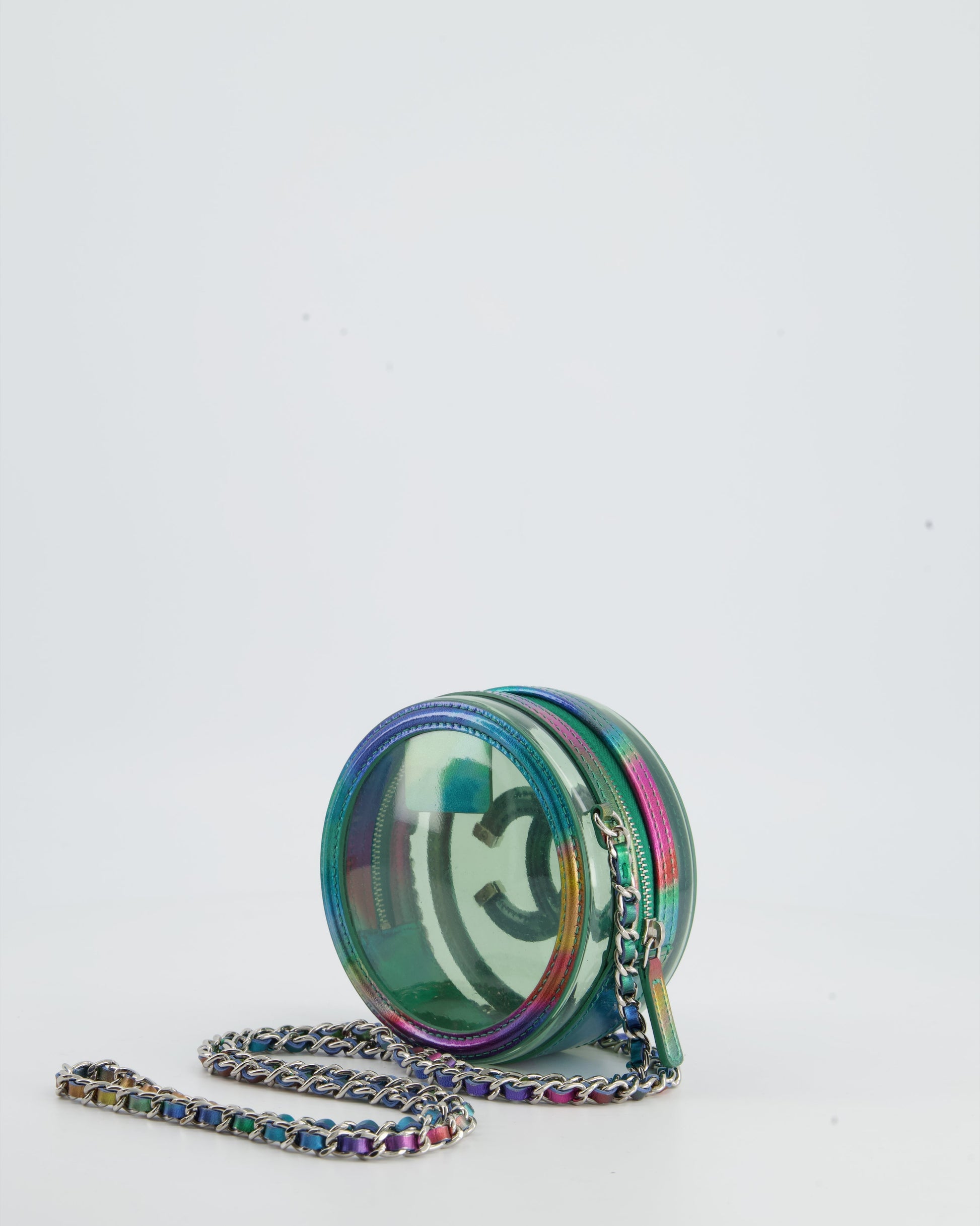 Chanel Rainbow Green Filigree PVC CC Mini Round Crossbody Bag with Silver Hardware