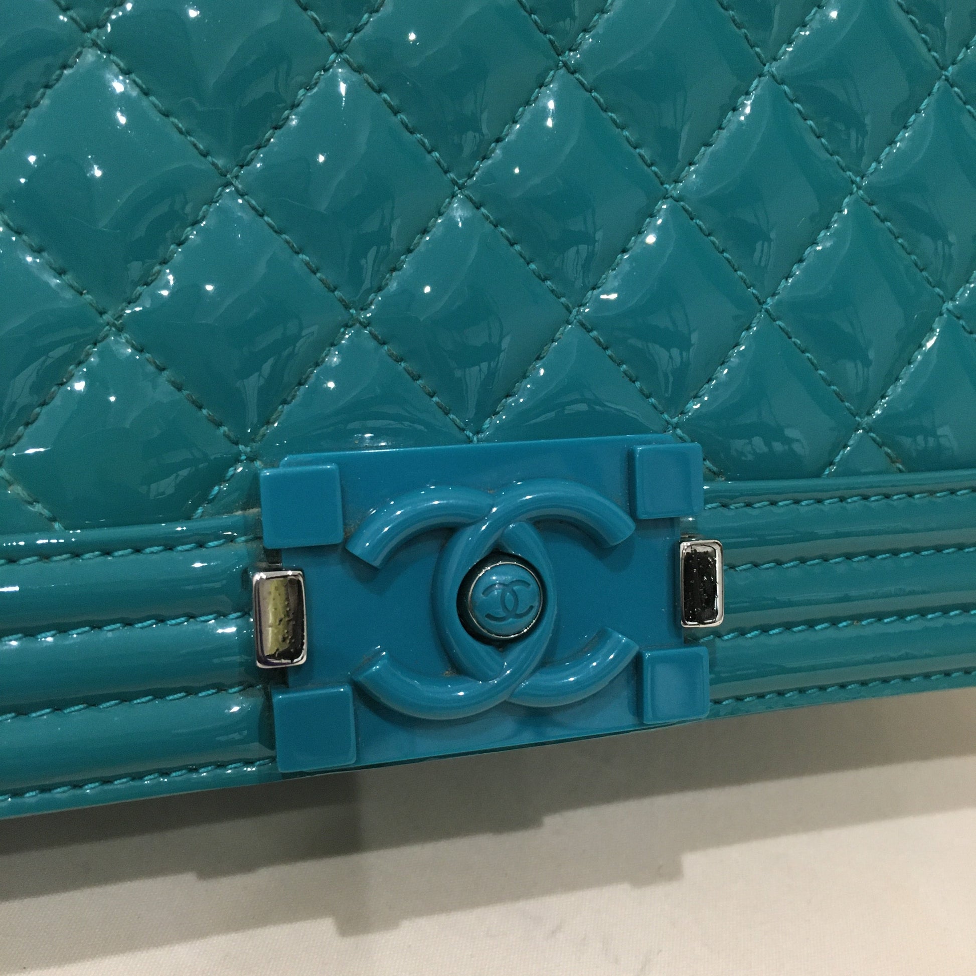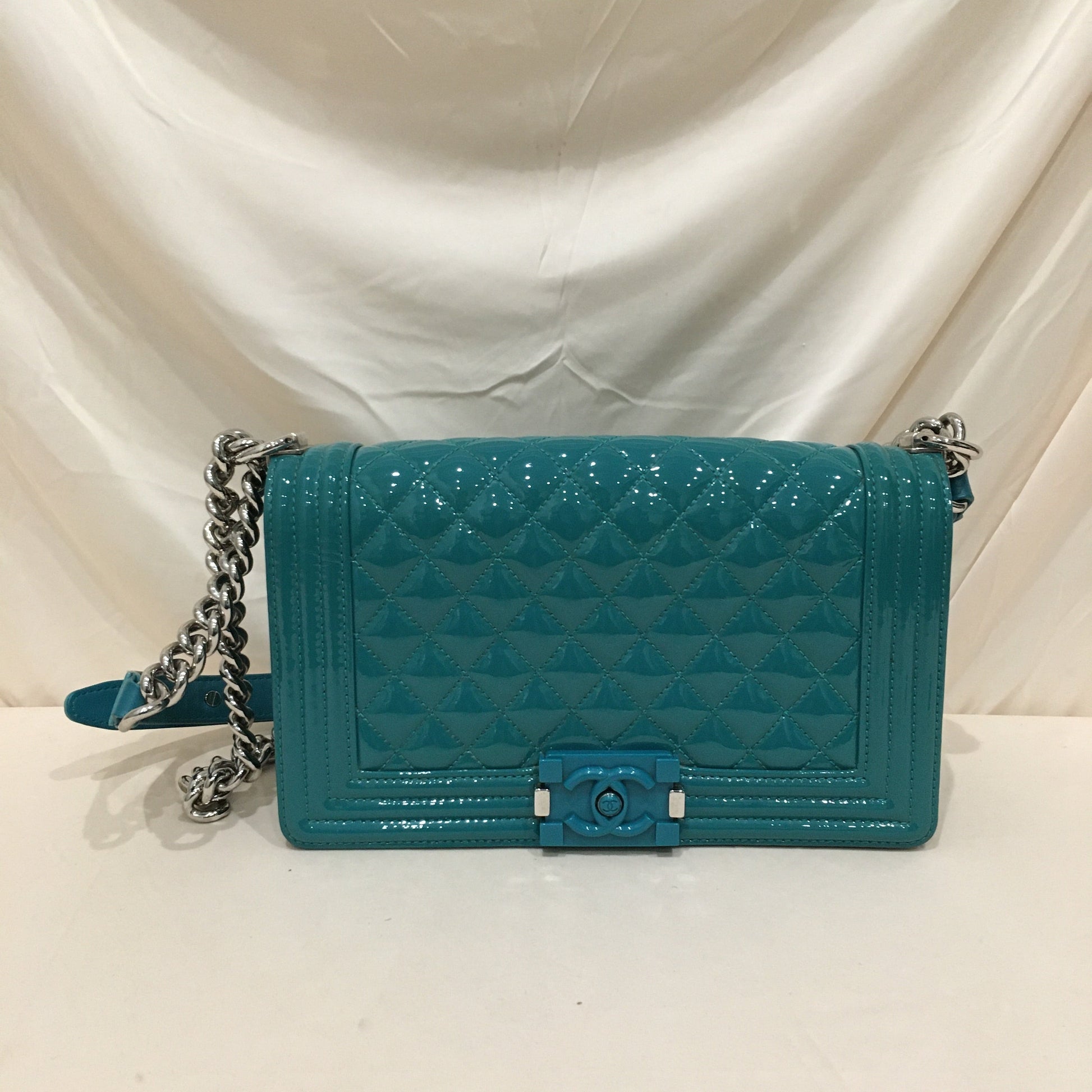 Chanel Green Patent Old Medium Boy Flap Shoulder Bag Sku# 76385