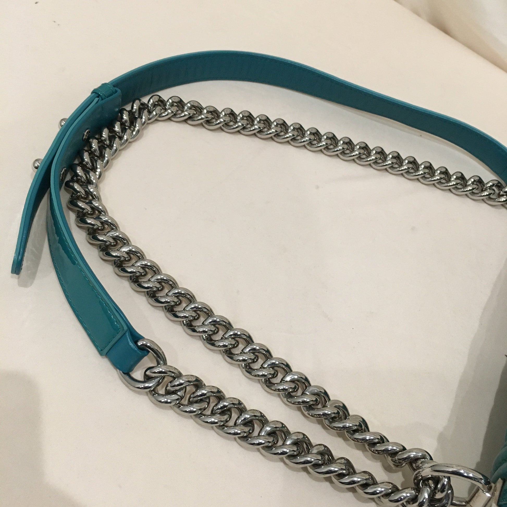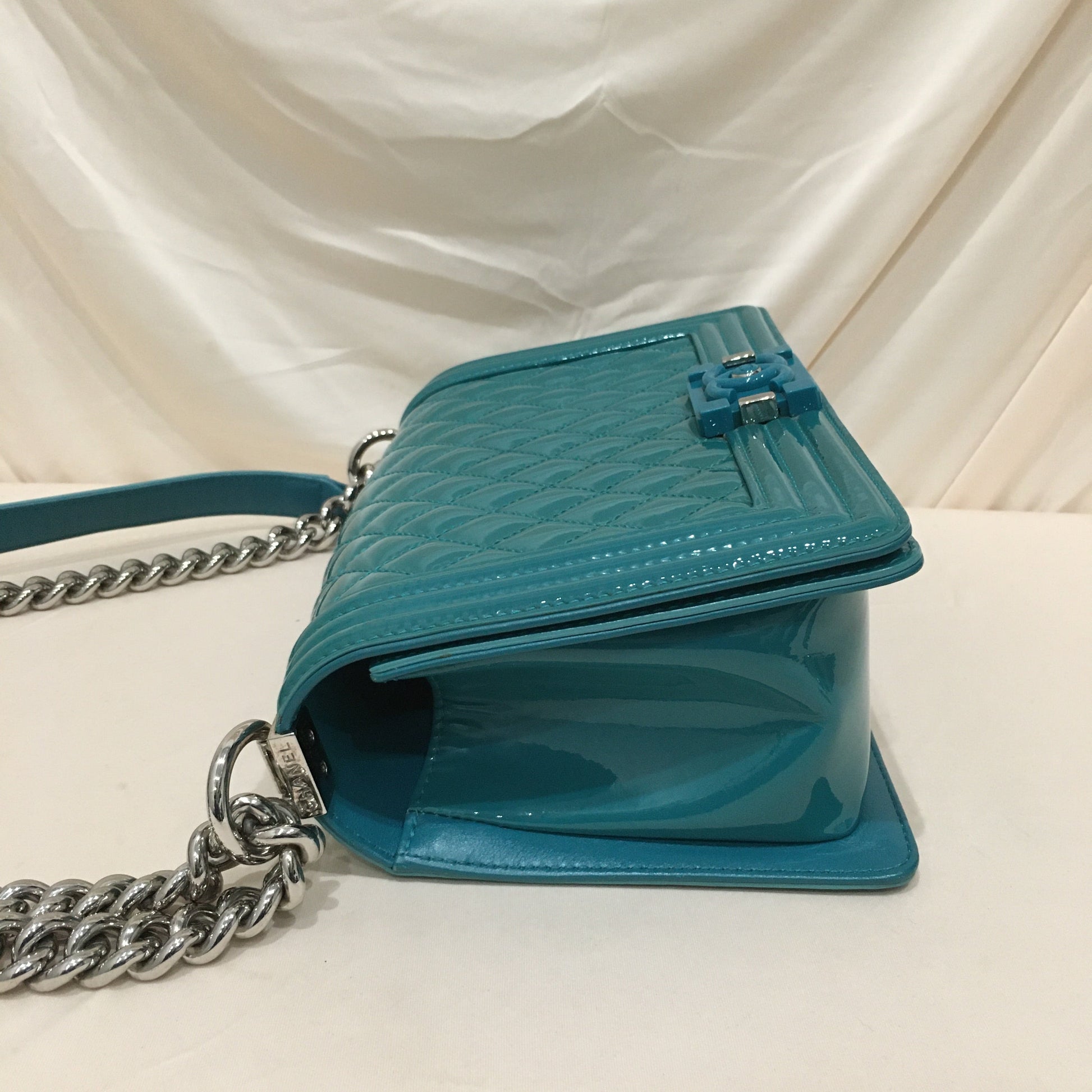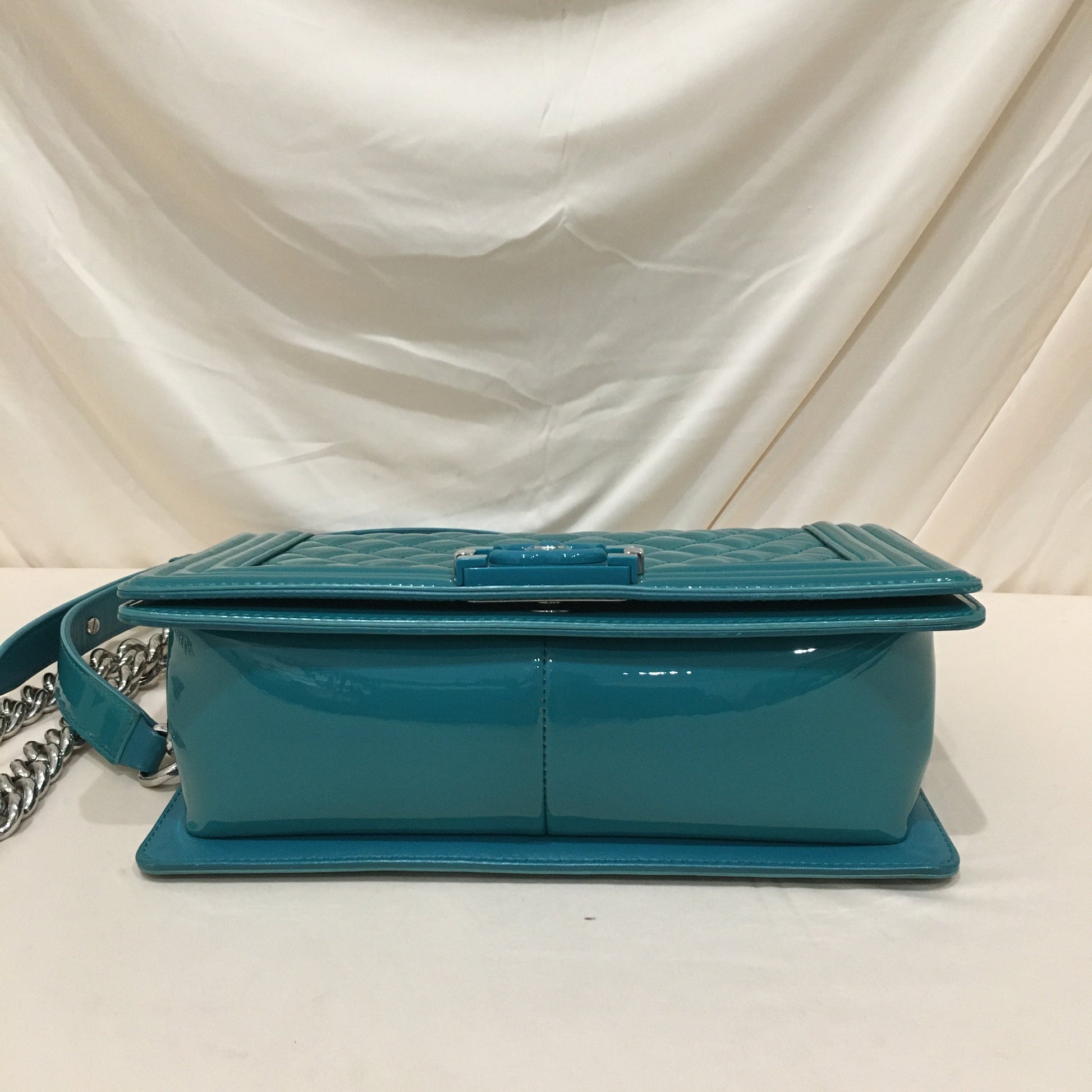 Chanel Green Patent Old Medium Boy Flap Shoulder Bag Size/Measurements:
