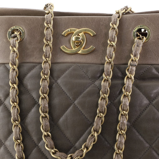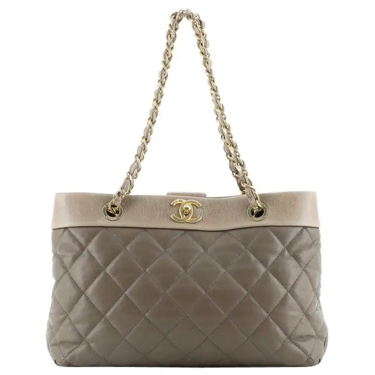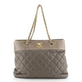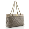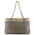 CHANEL GREIGE QUILTED DISTRESSED LEATHER CHAIN TOTE BAG