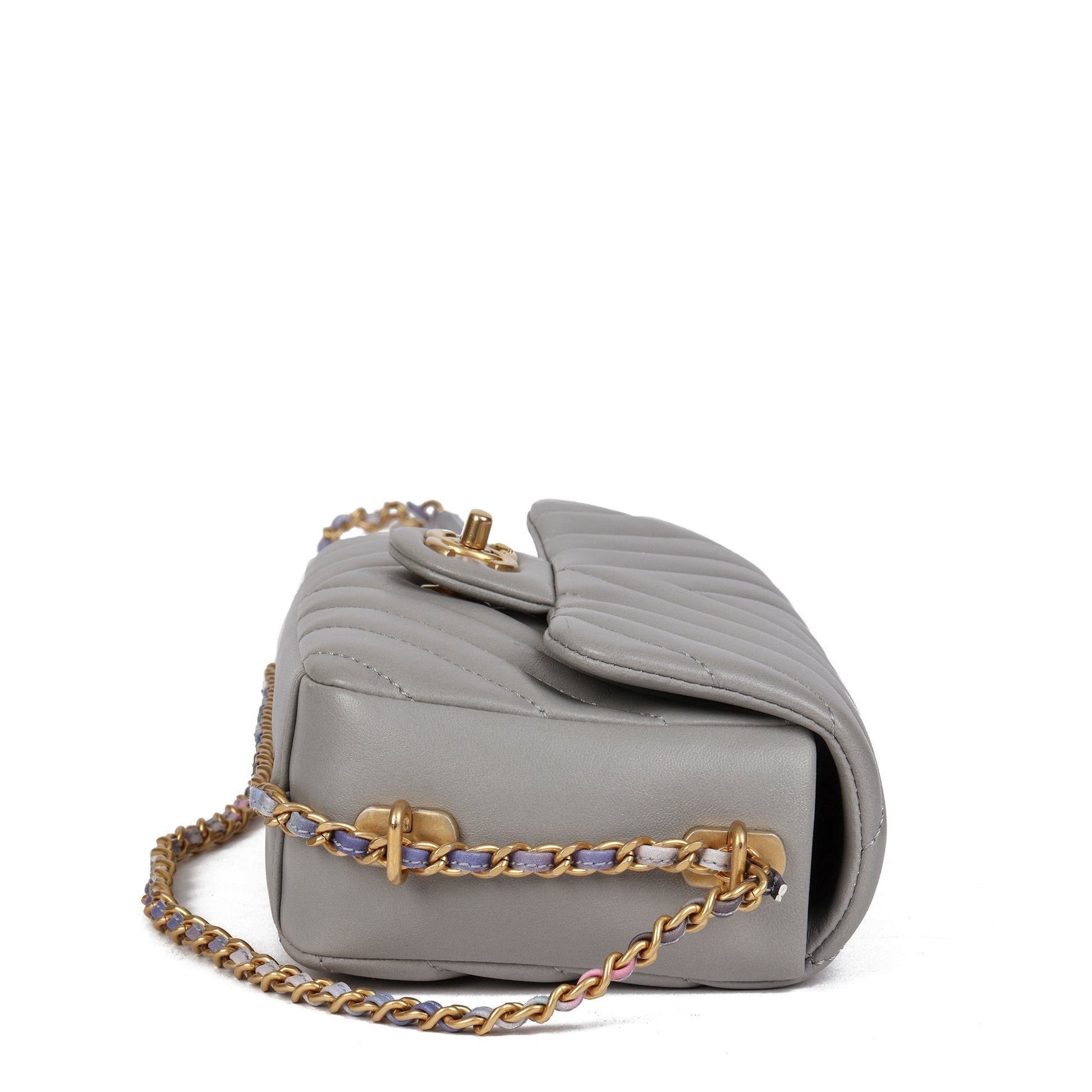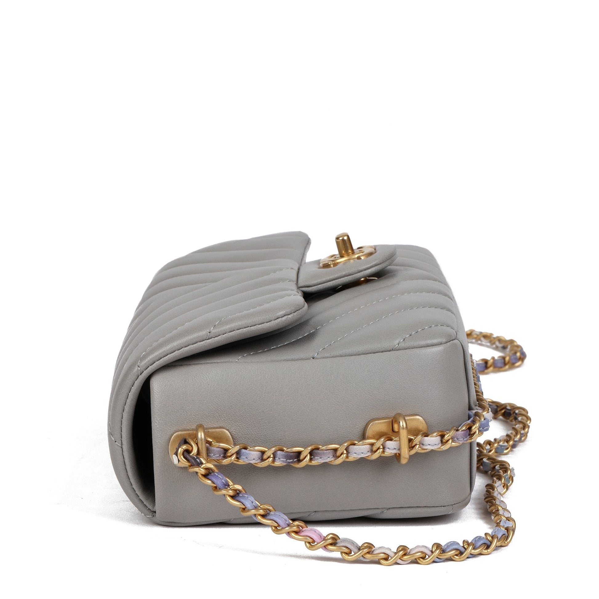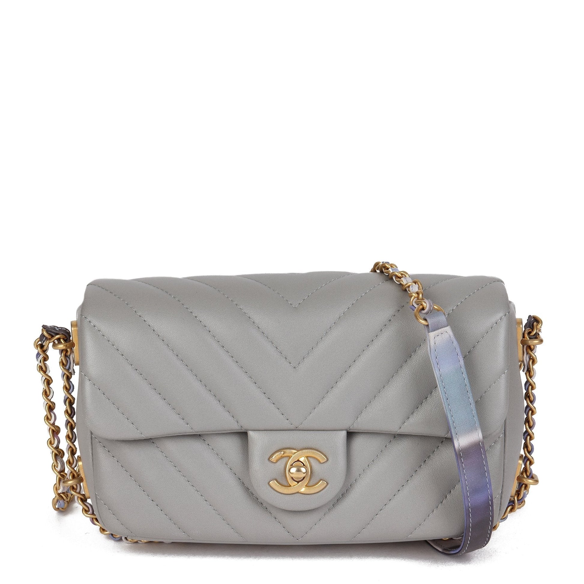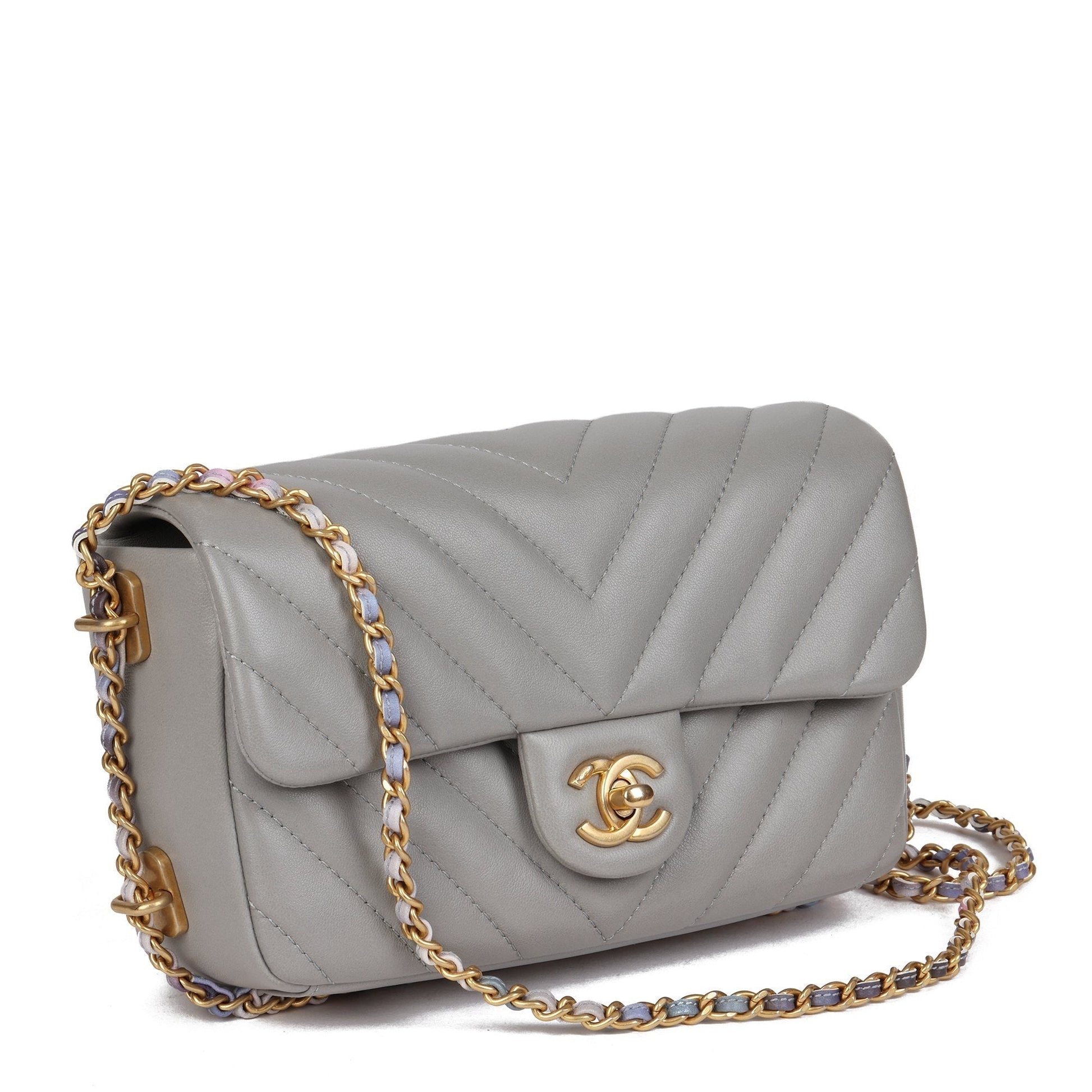 Chanel Grey Chevron Quilted Lambskin Chain Around Mini Rectangular Flap Bag