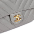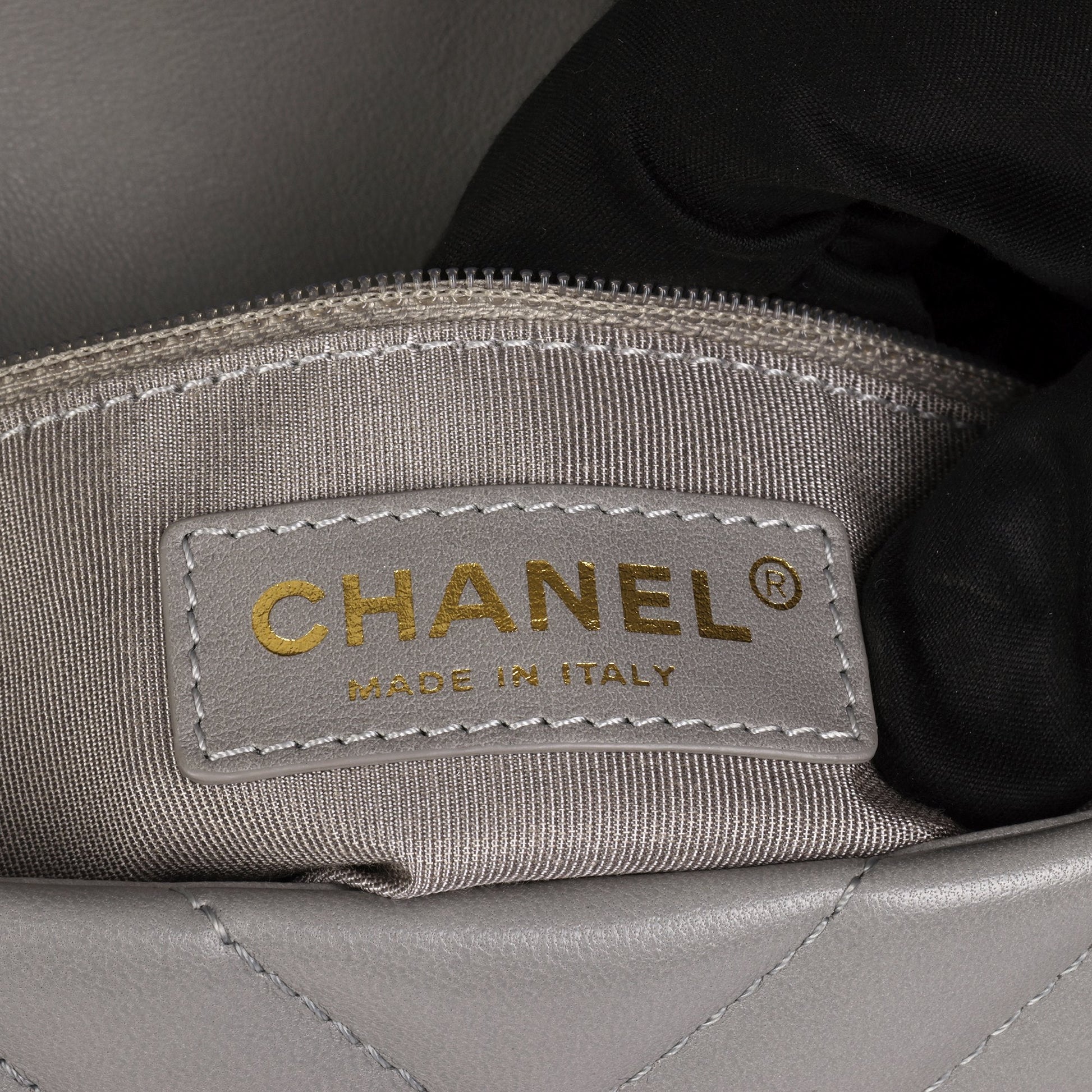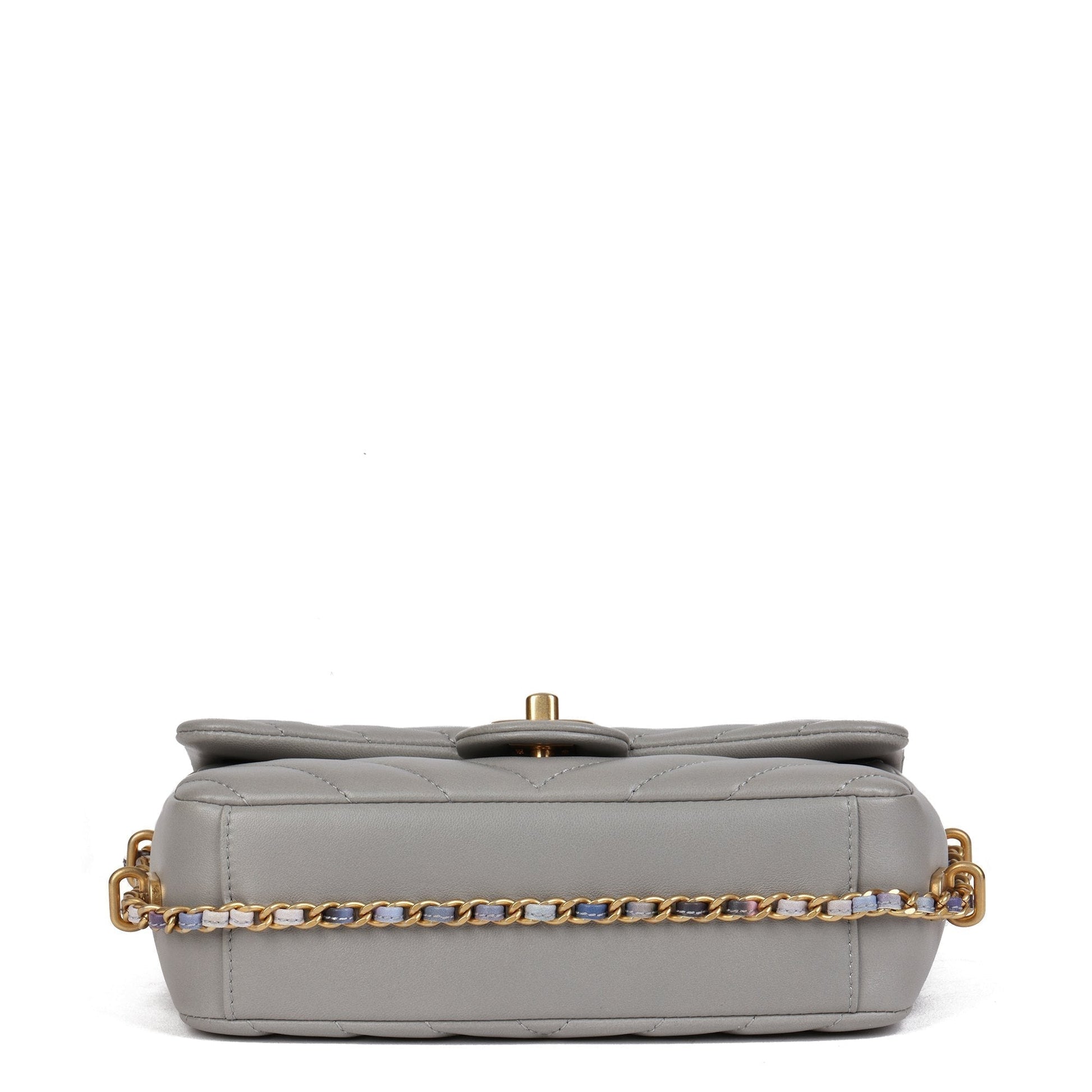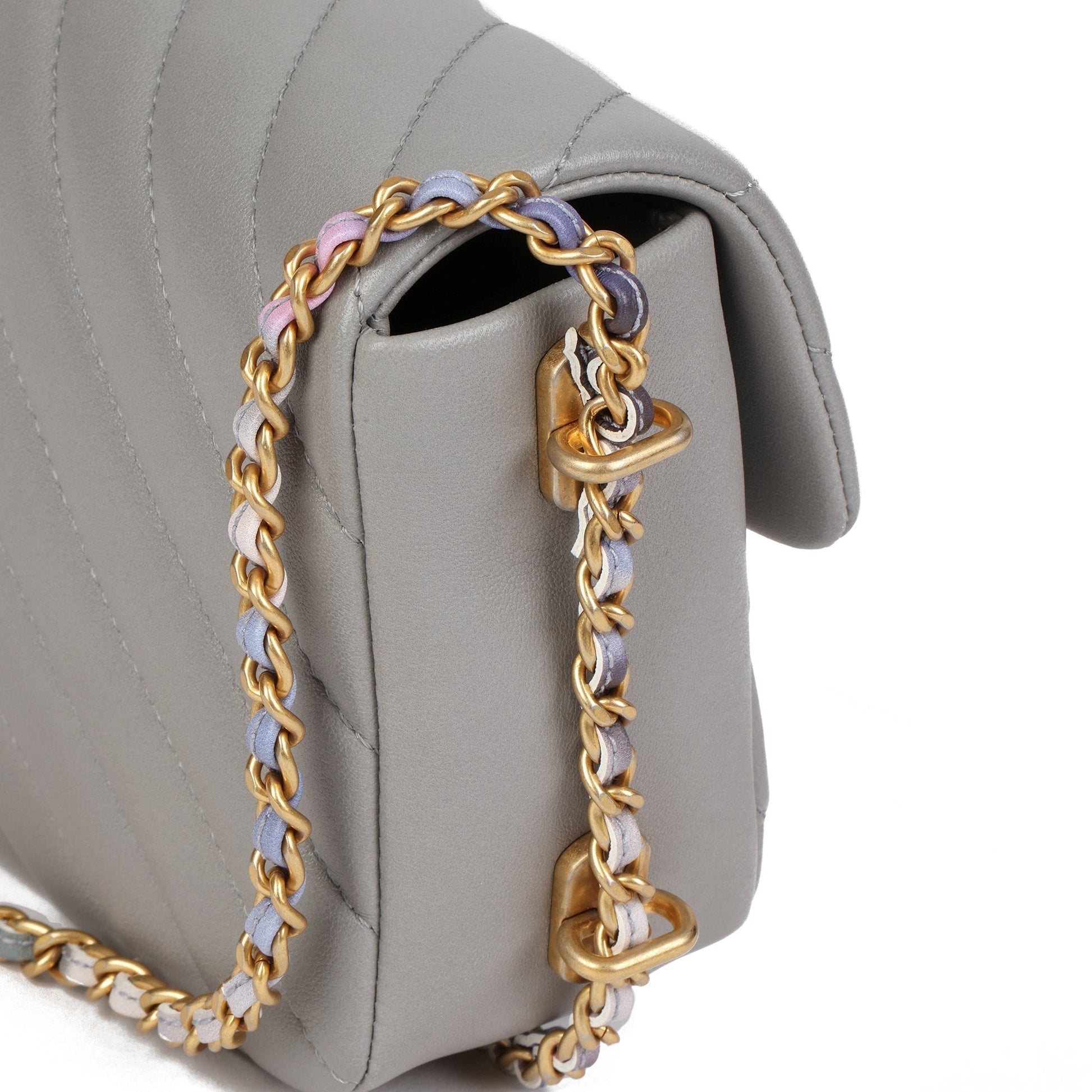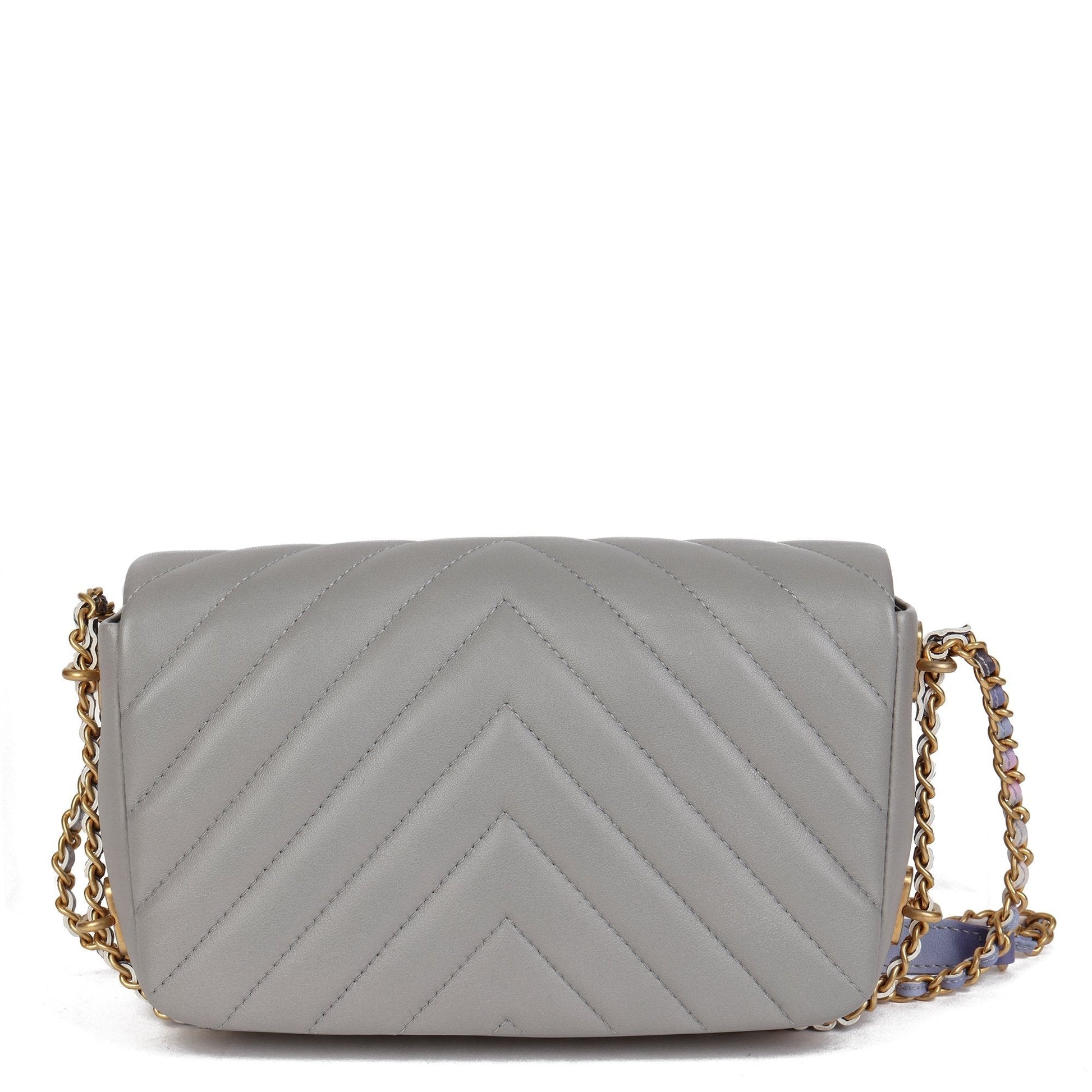 Chanel Grey Chevron Quilted Lambskin Chain Around Mini Rectangular Flap Bag