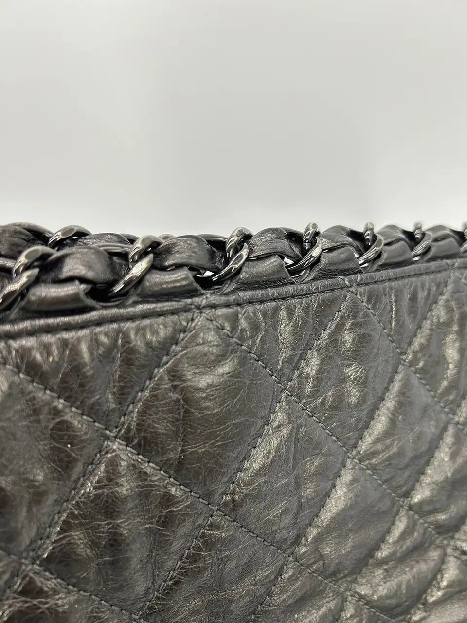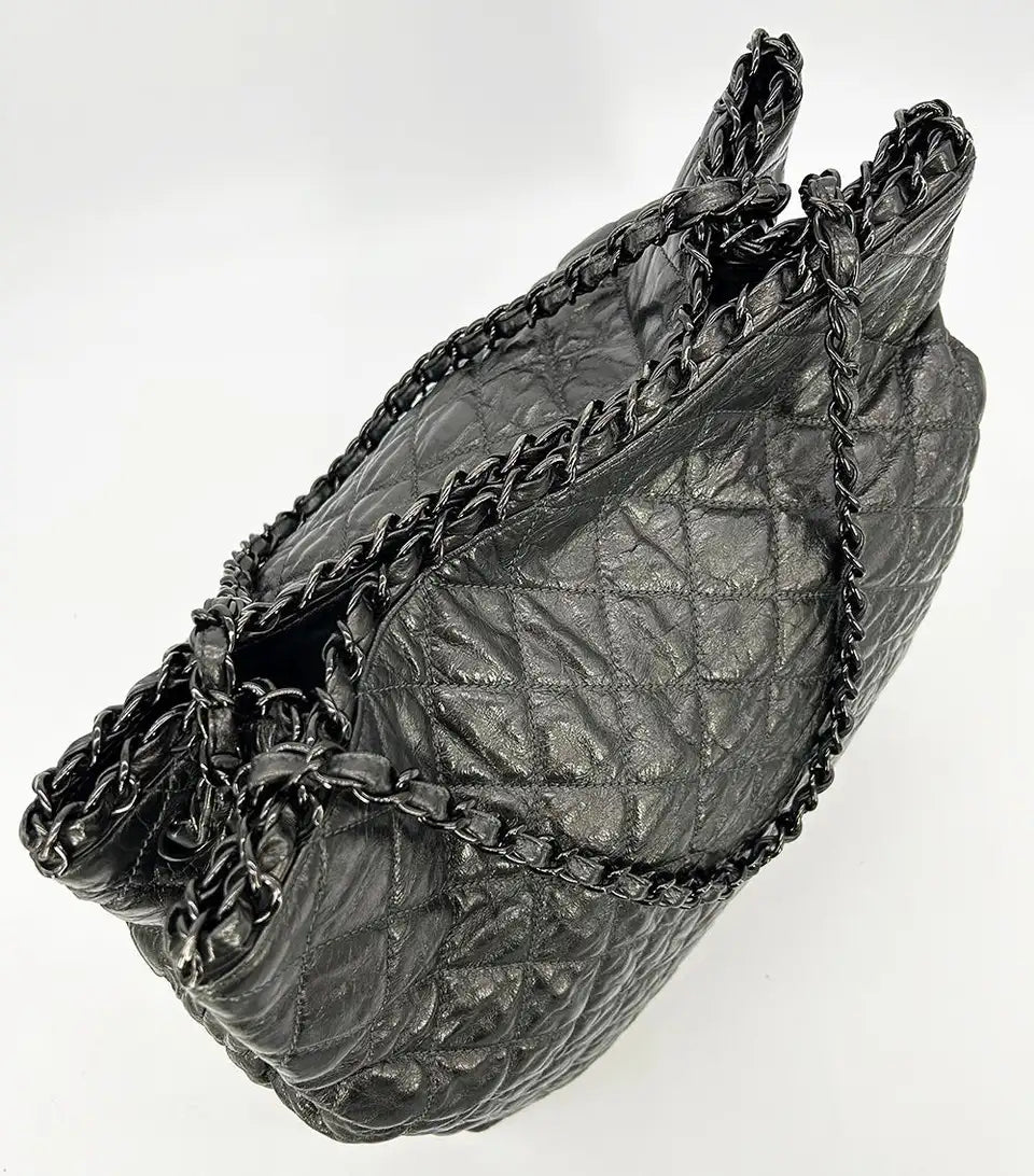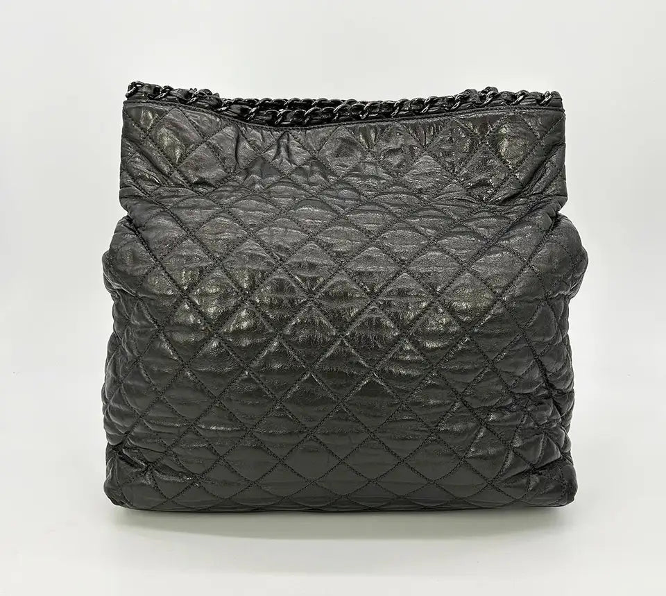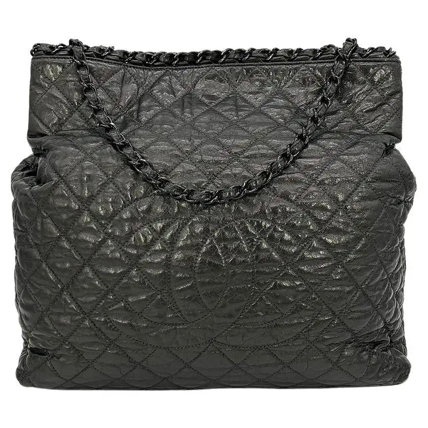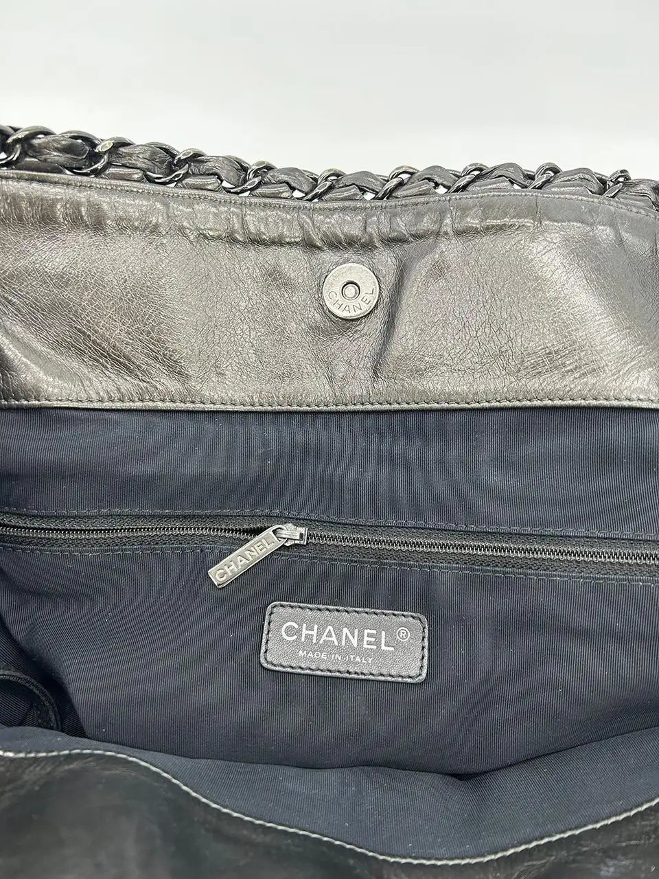 Chanel Grey Metallic Leather Chain Me Shoulder Bag Tote
