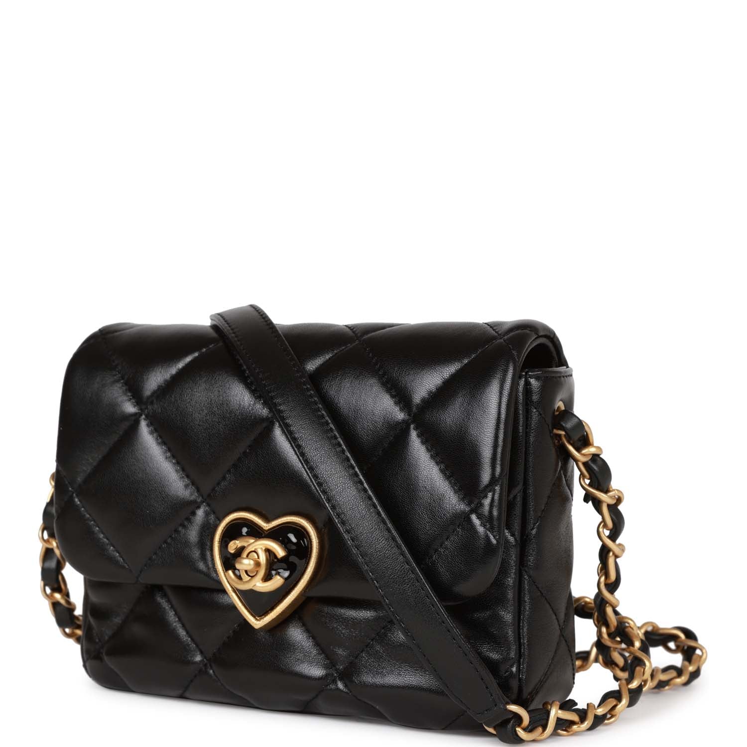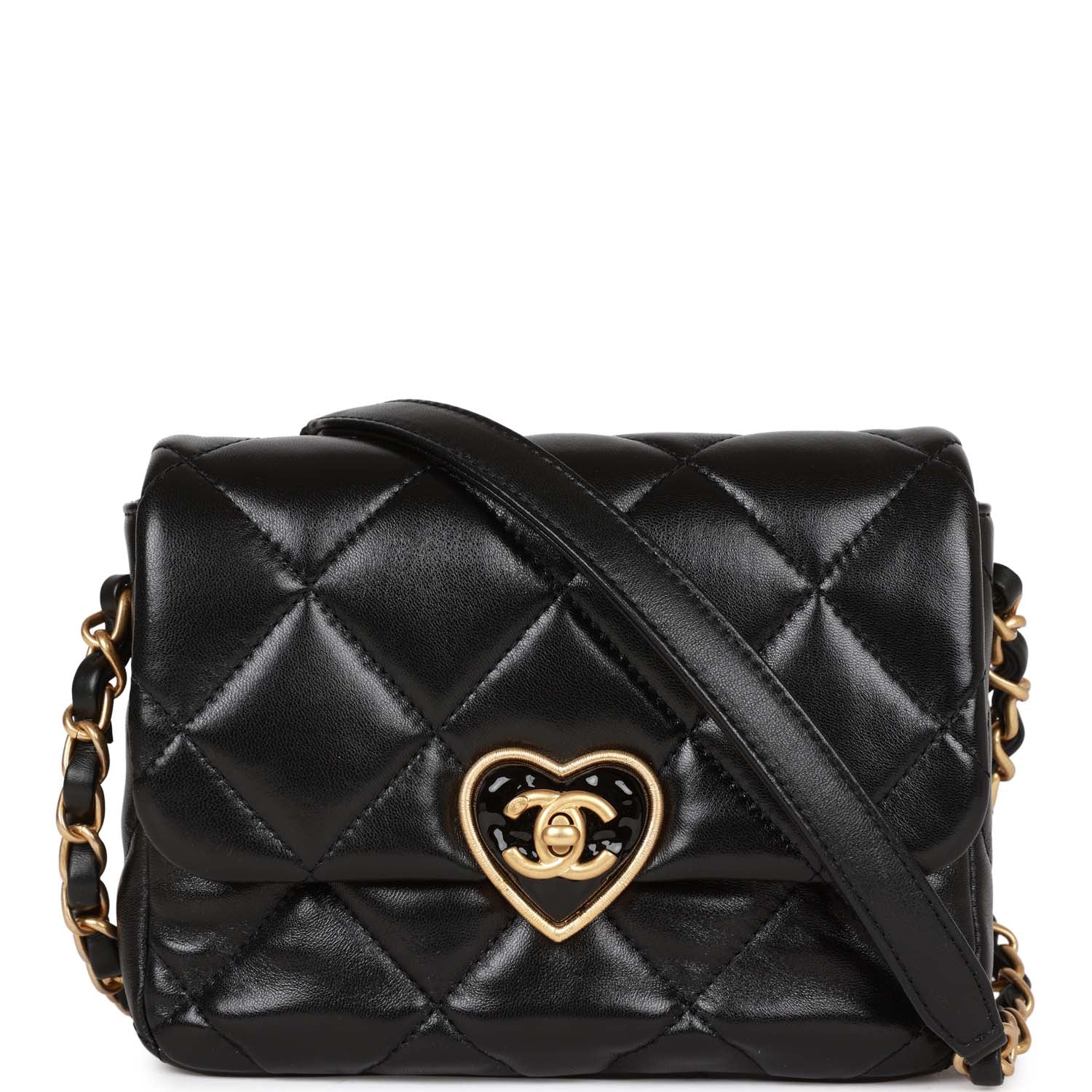 Chanel Heart Mini Flap Bag Black Lambskin Antique Gold Hardware