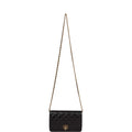 This Wallet on Chain is in Black quilted lambskin with antique gold hardware, signature CC logo turnlock enclosed in a heart motif, half moon exterior back pocket, and an interwoven gold chain link and leather crossbody/shoulder strap