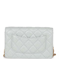 Chanel Heart Wallet on Chain WOC Light Blue Lambskin Aged Gold Hardware