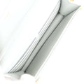 The interior is lined in light blue grossgrain fabric with a zipper pocket under flap top, a slip pocket for cash, a zipper compartment with leather pull, and six credit card slots.