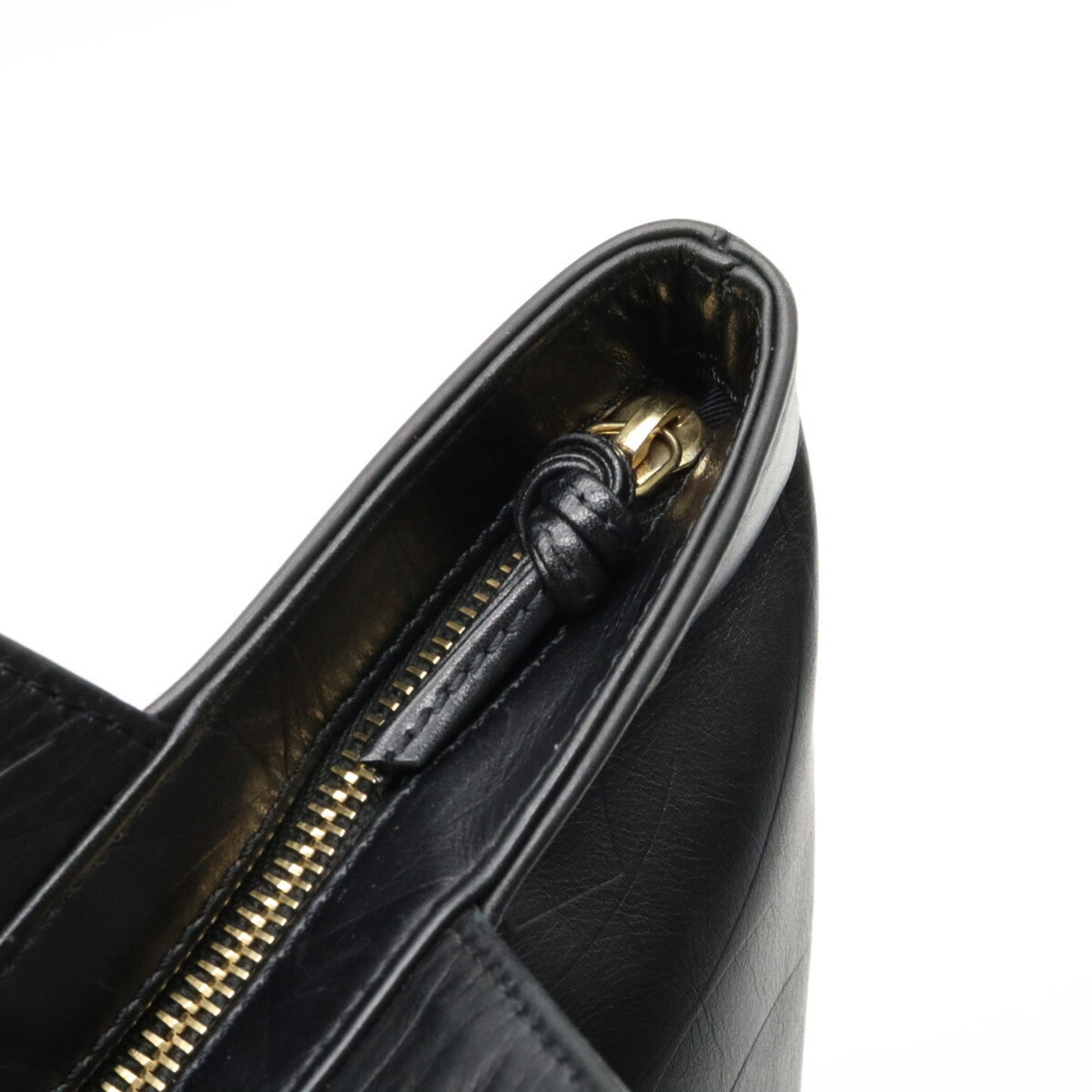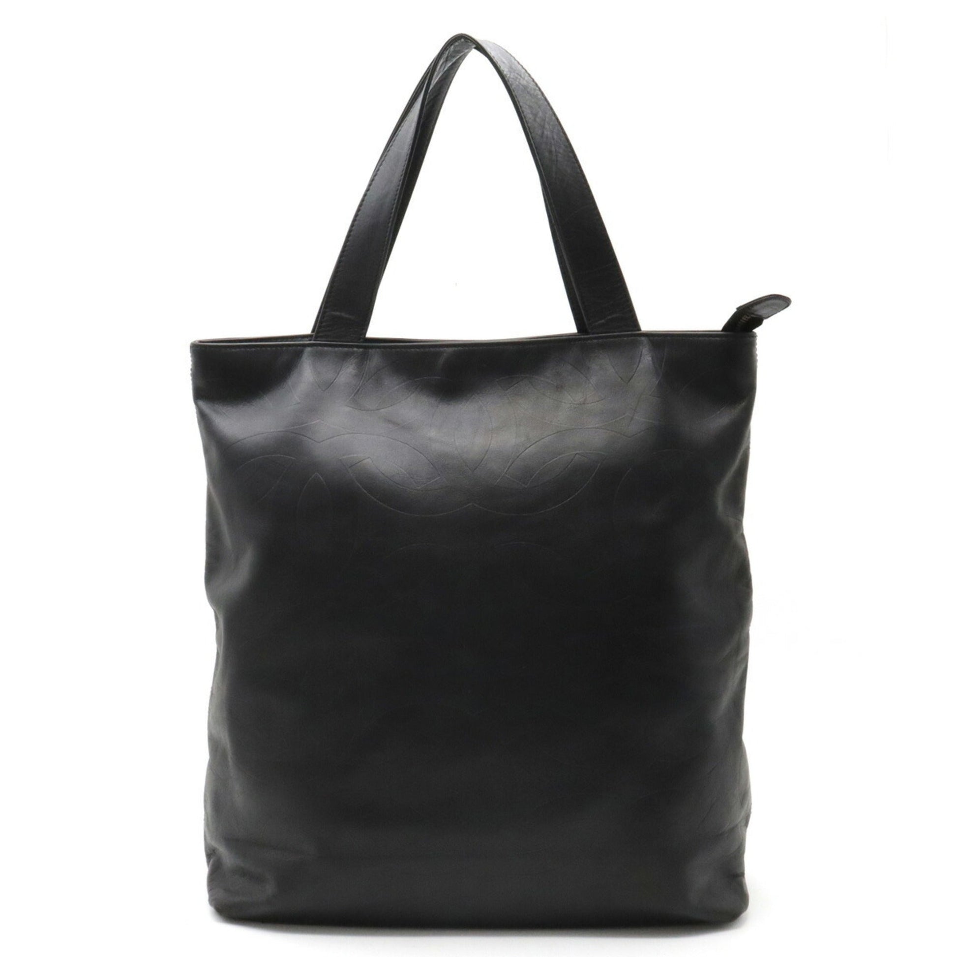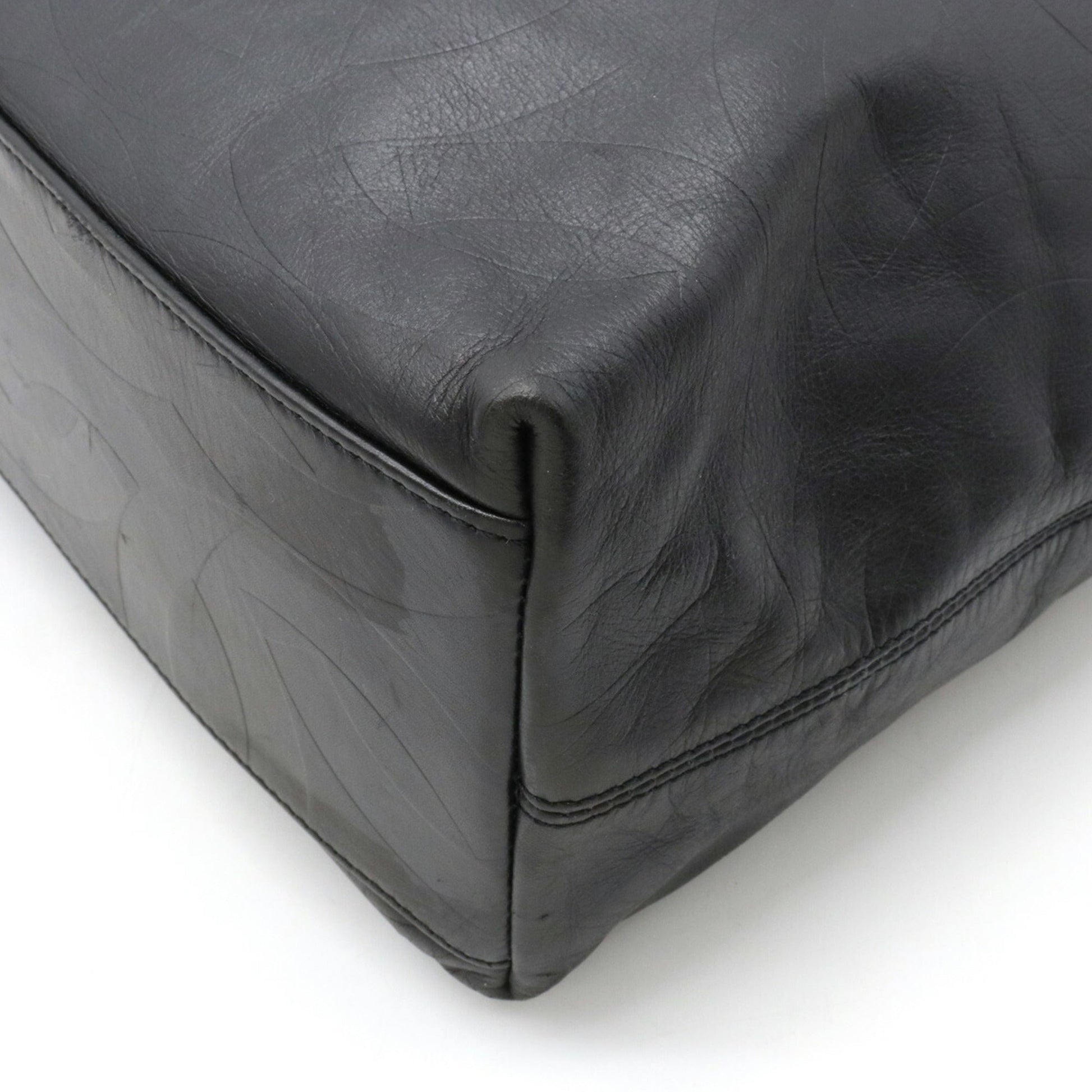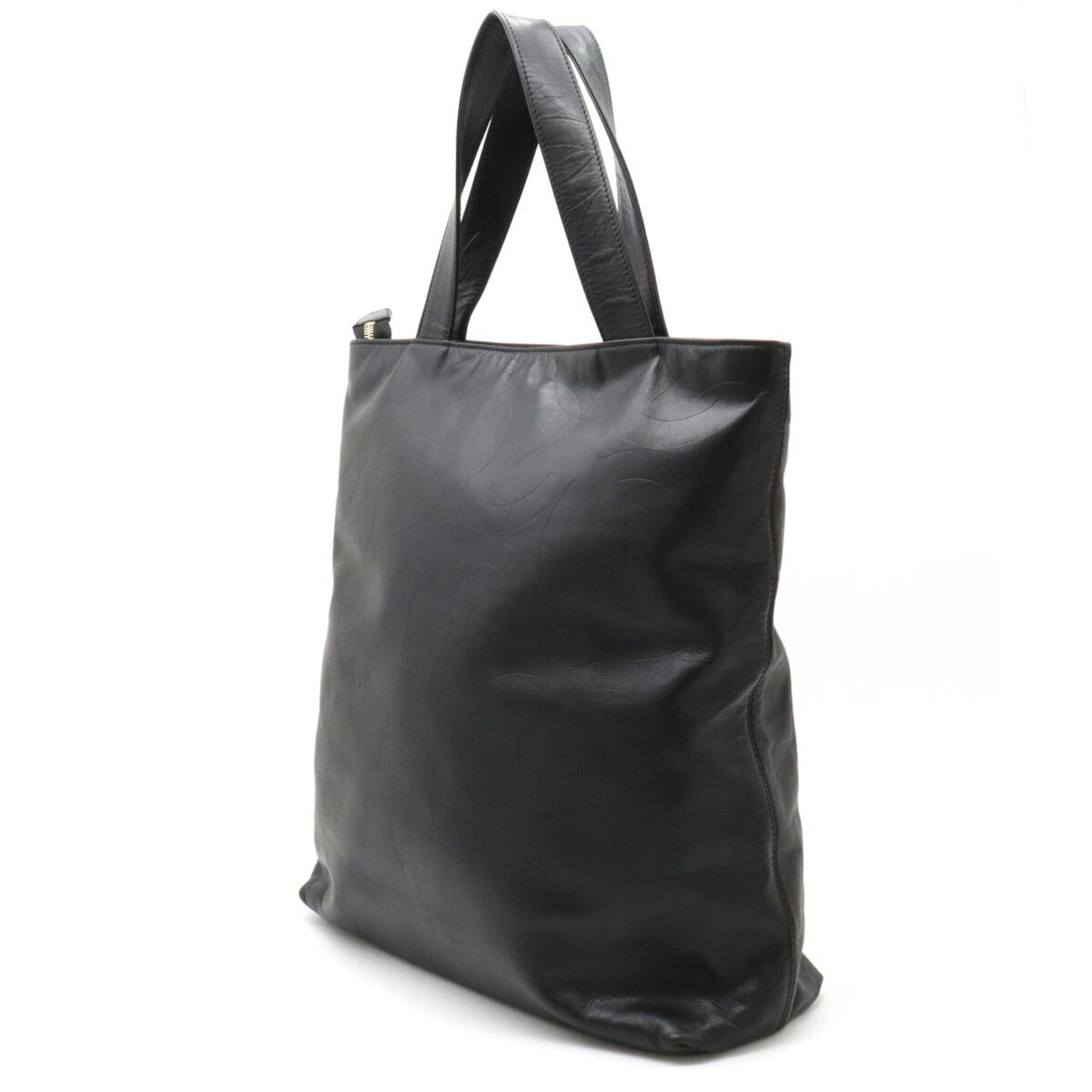 Chanel here mark type push Tote Bag large shoulder leather black