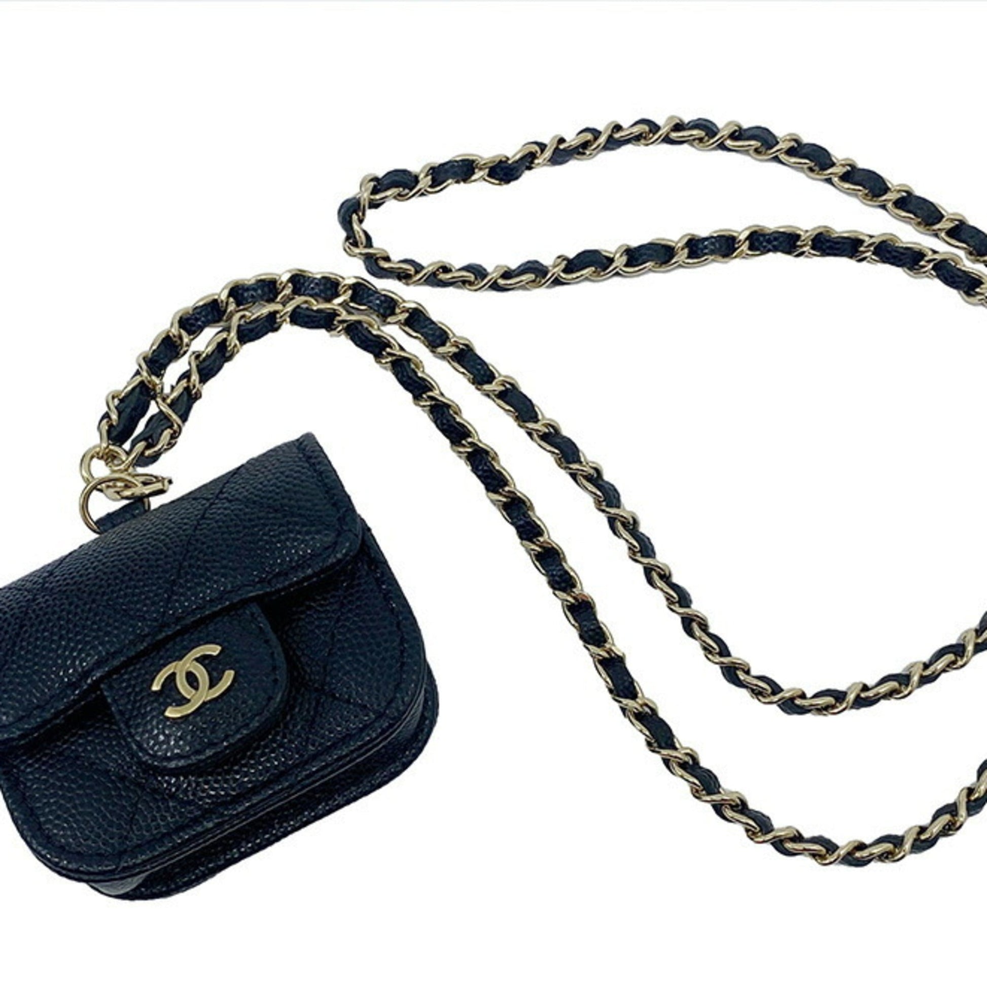Chanel ipods case chain shoulder caviar skin here mark black AP1739 31******