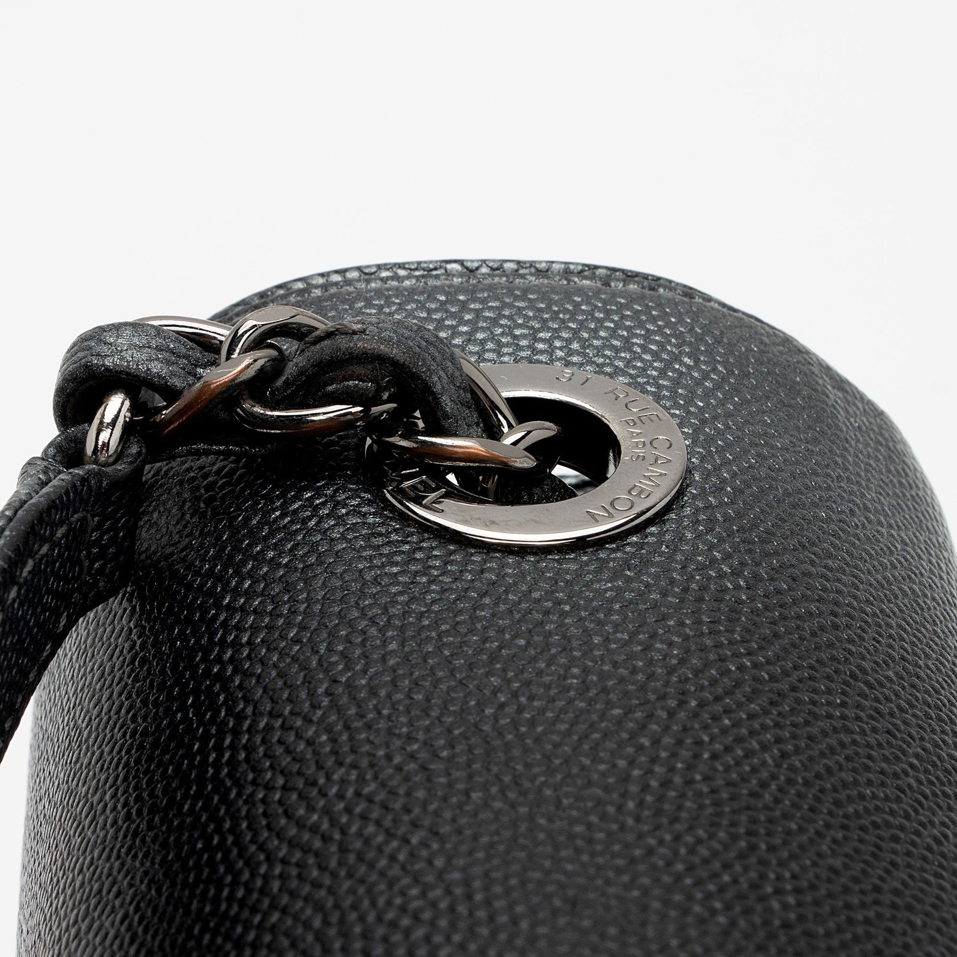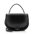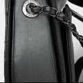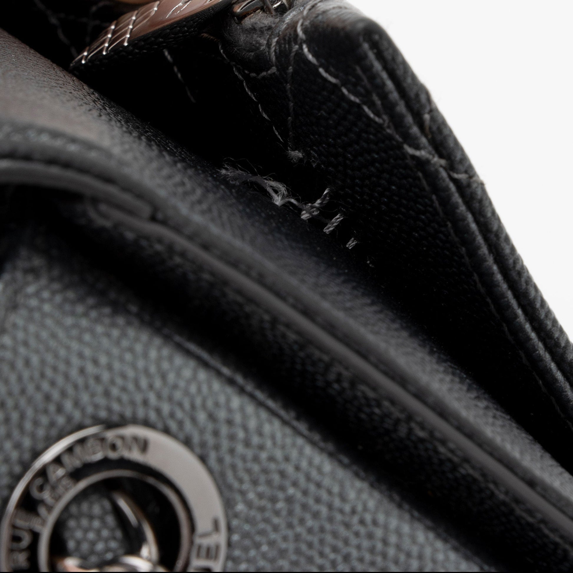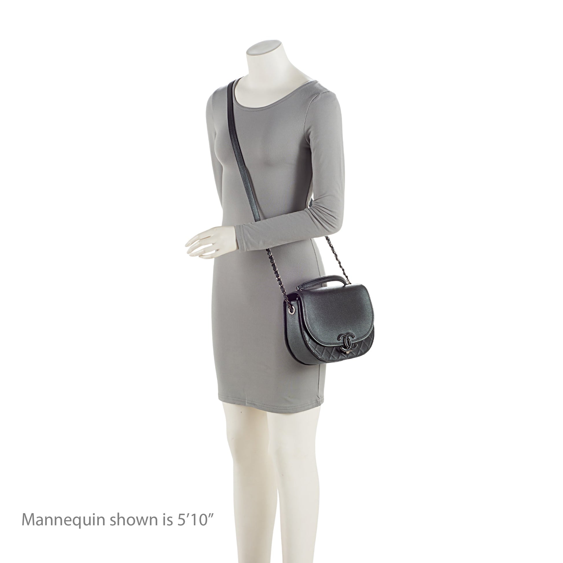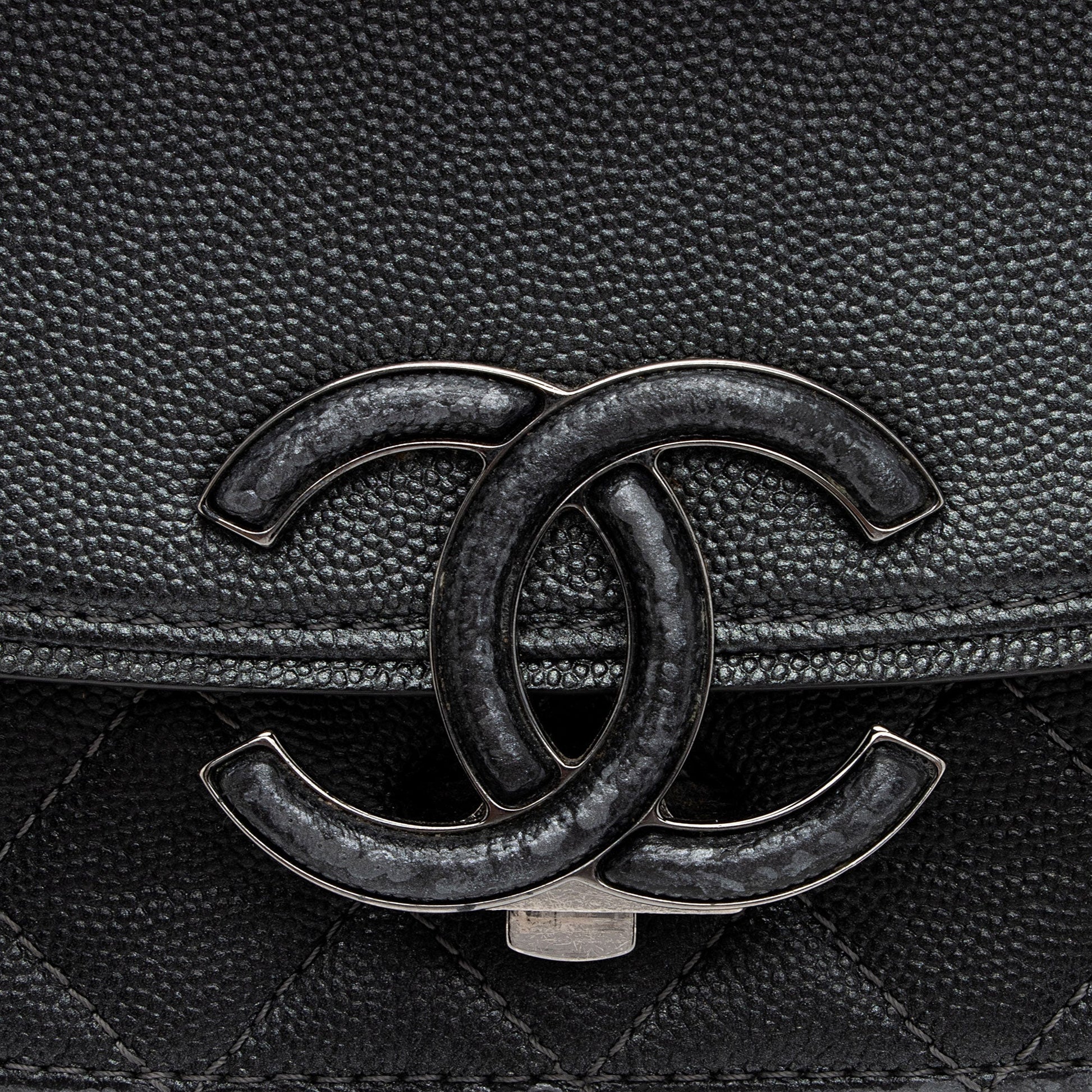 Condition Notes: Moderate discoloration to front CC logo. Scuffs and light discoloration throughout exterior edges and corners. Darkening and wear throughout leather woven into shoulder strap and leather on shoulder strap. Visible popped seam to exterior front pocket. Surface scratches to hardware. Light marks and wear throughout interior. Peeling to interior hologram.