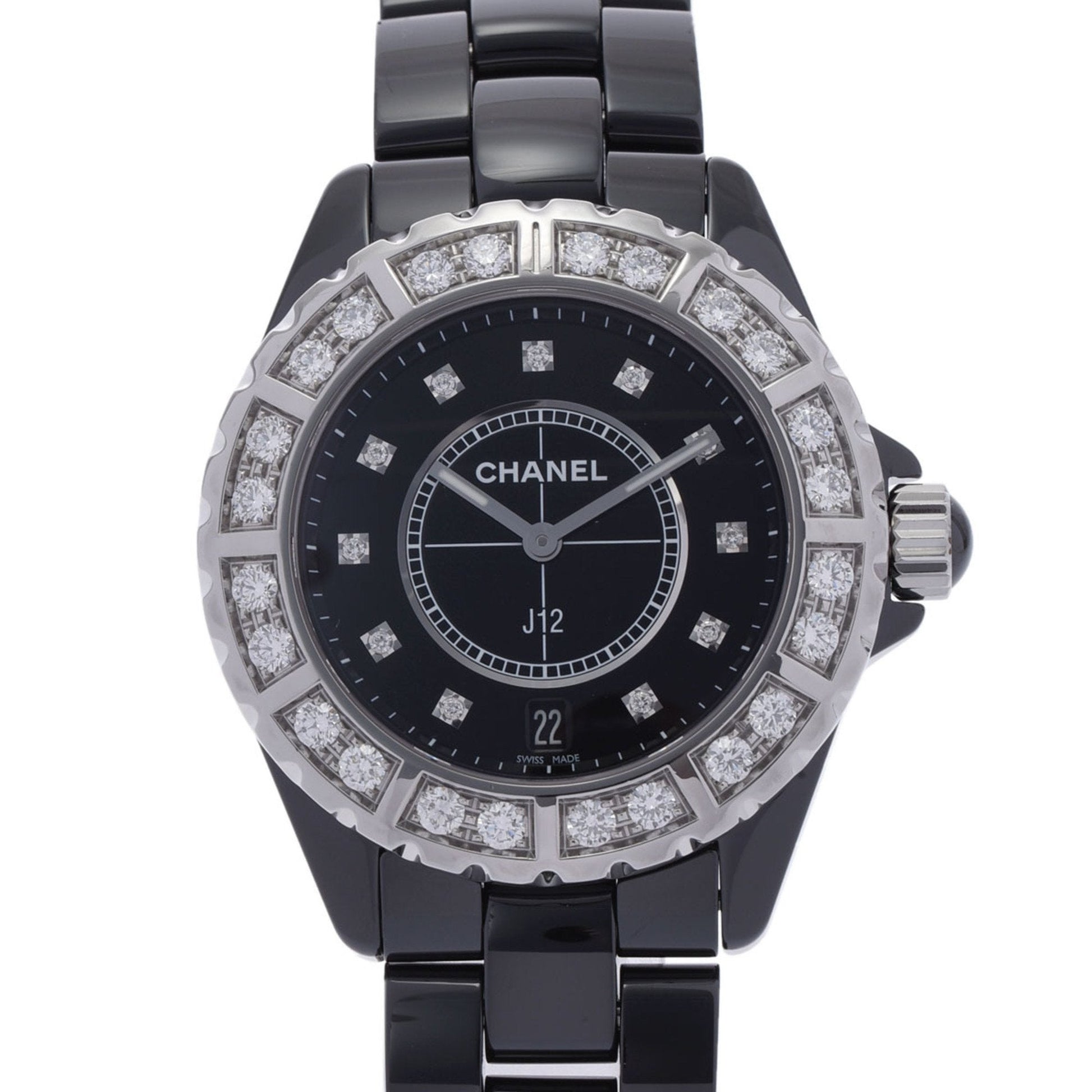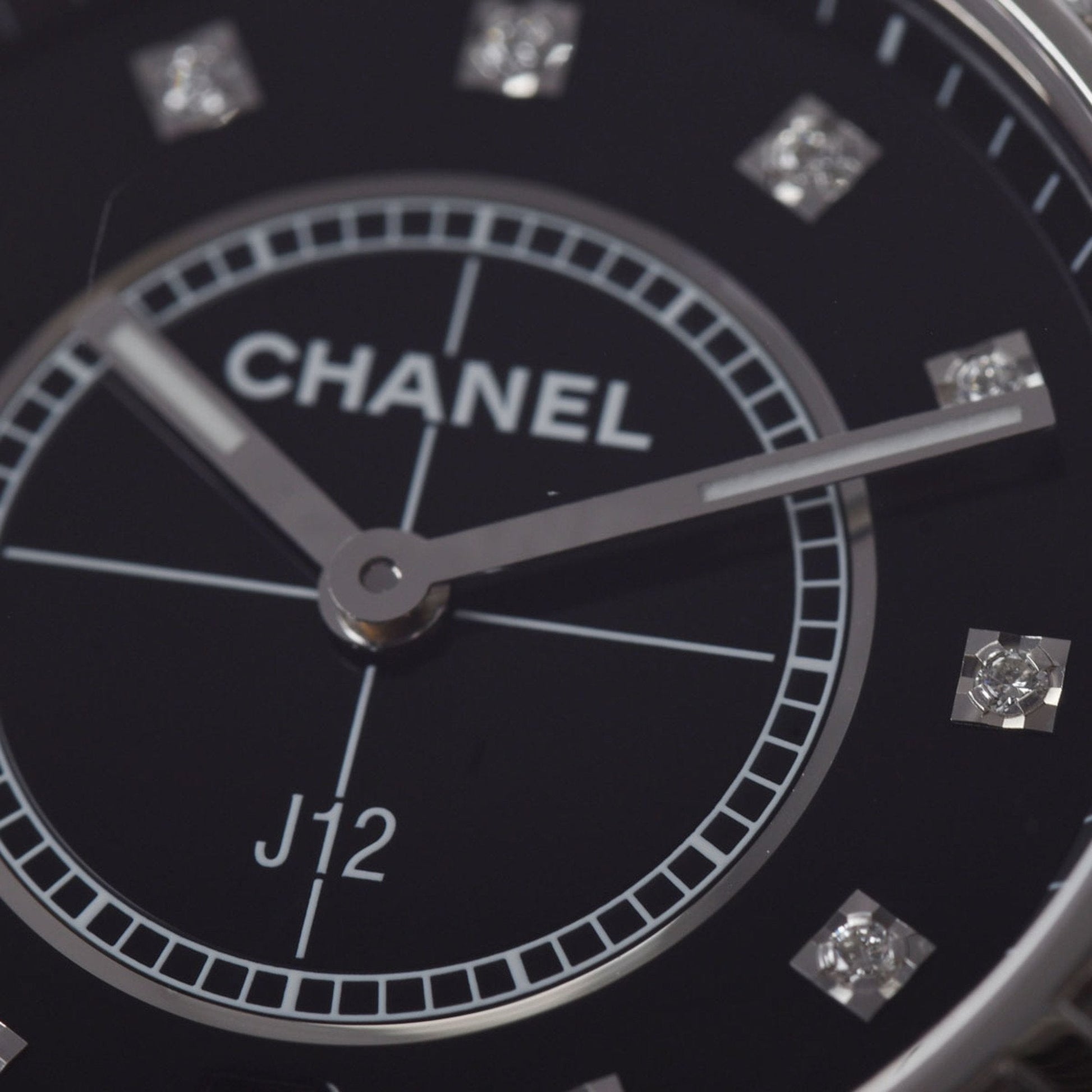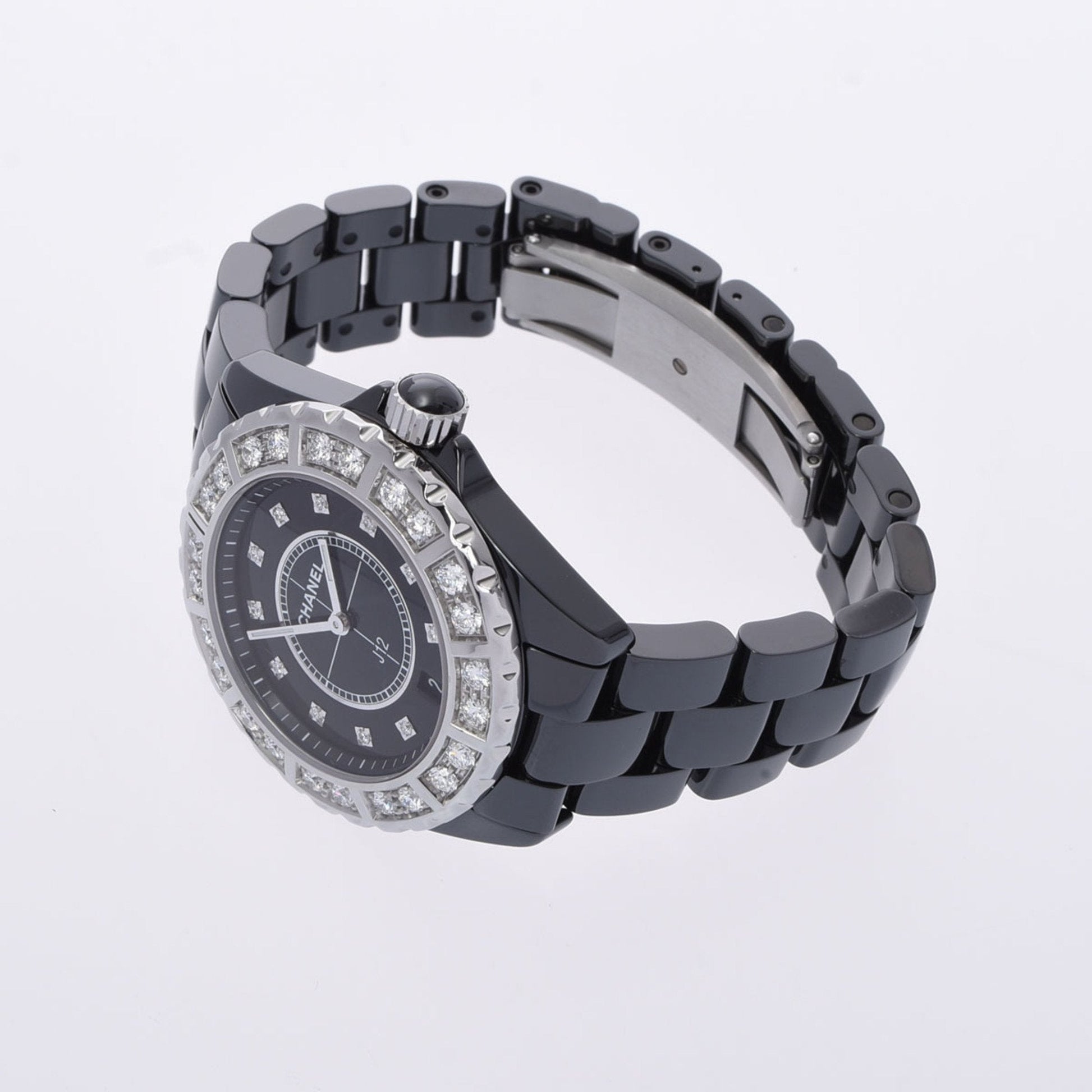 Chanel J12 38mm 11P Diamond Bezel H2428 Men's Black Ceramic SS Watch Quartz Dial