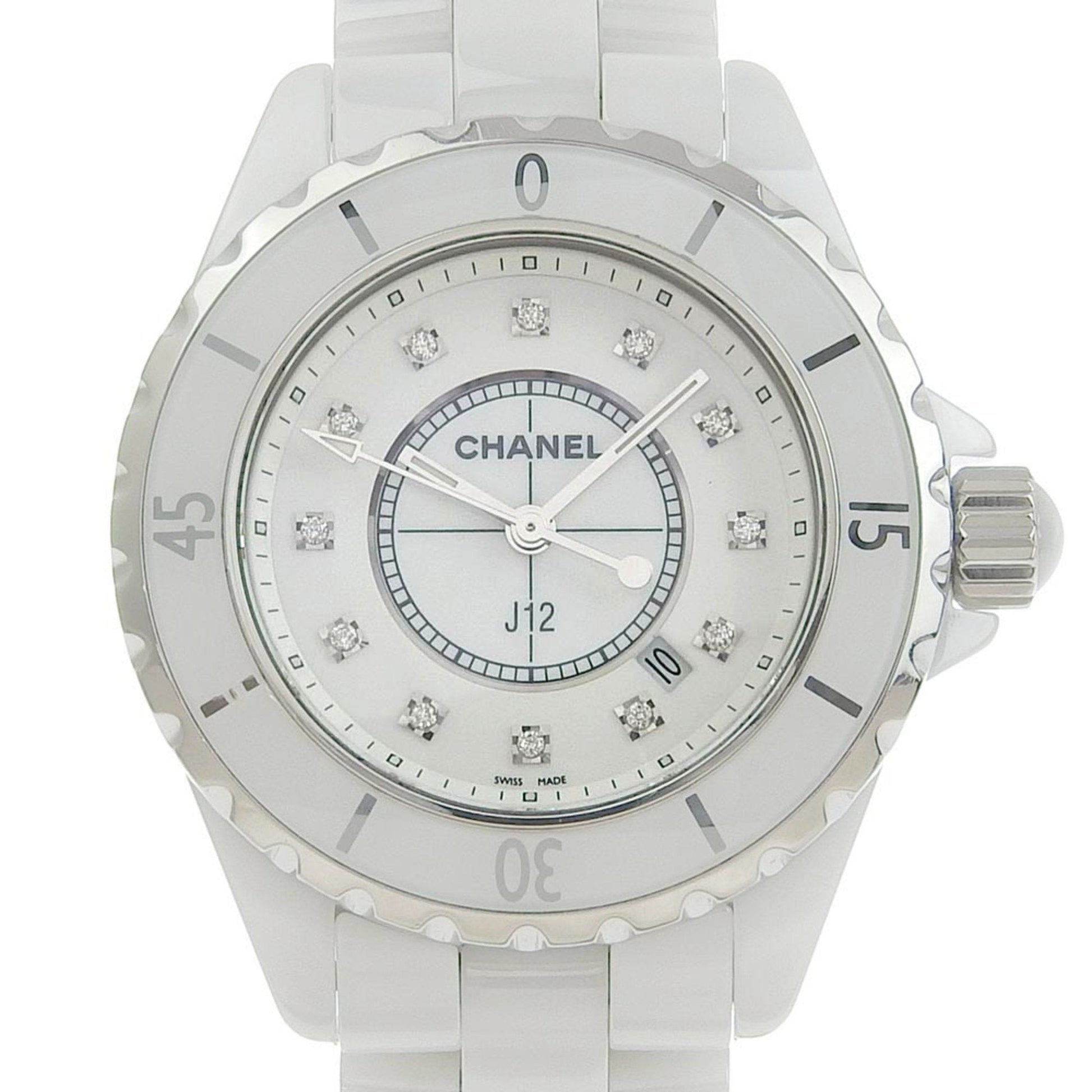 Chanel J12 watch 12P diamond H1628 white ceramic quartz analog display ladies dial