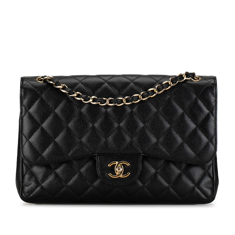 Chanel Jumbo Classic Caviar Double Flap Bag Leather Shoulder Bag in Good condition